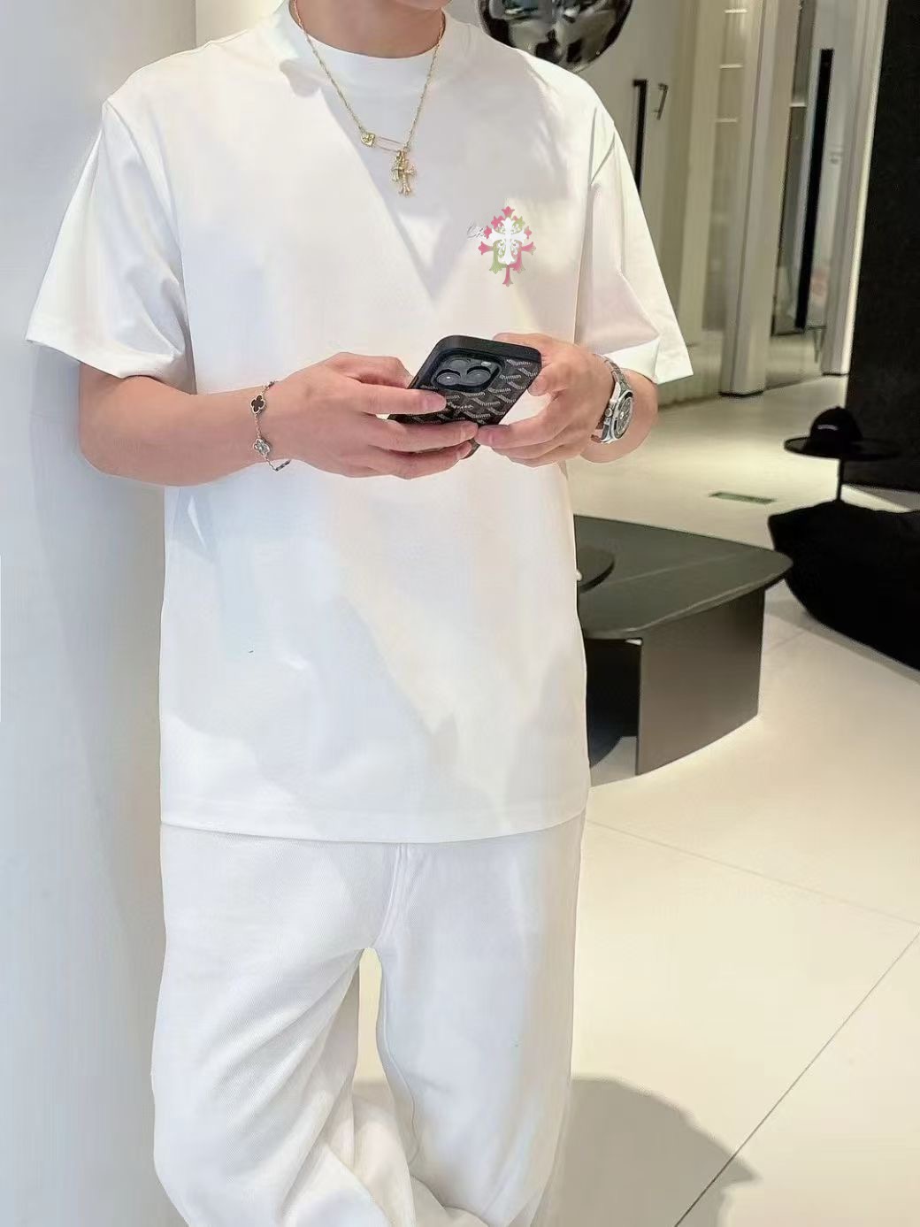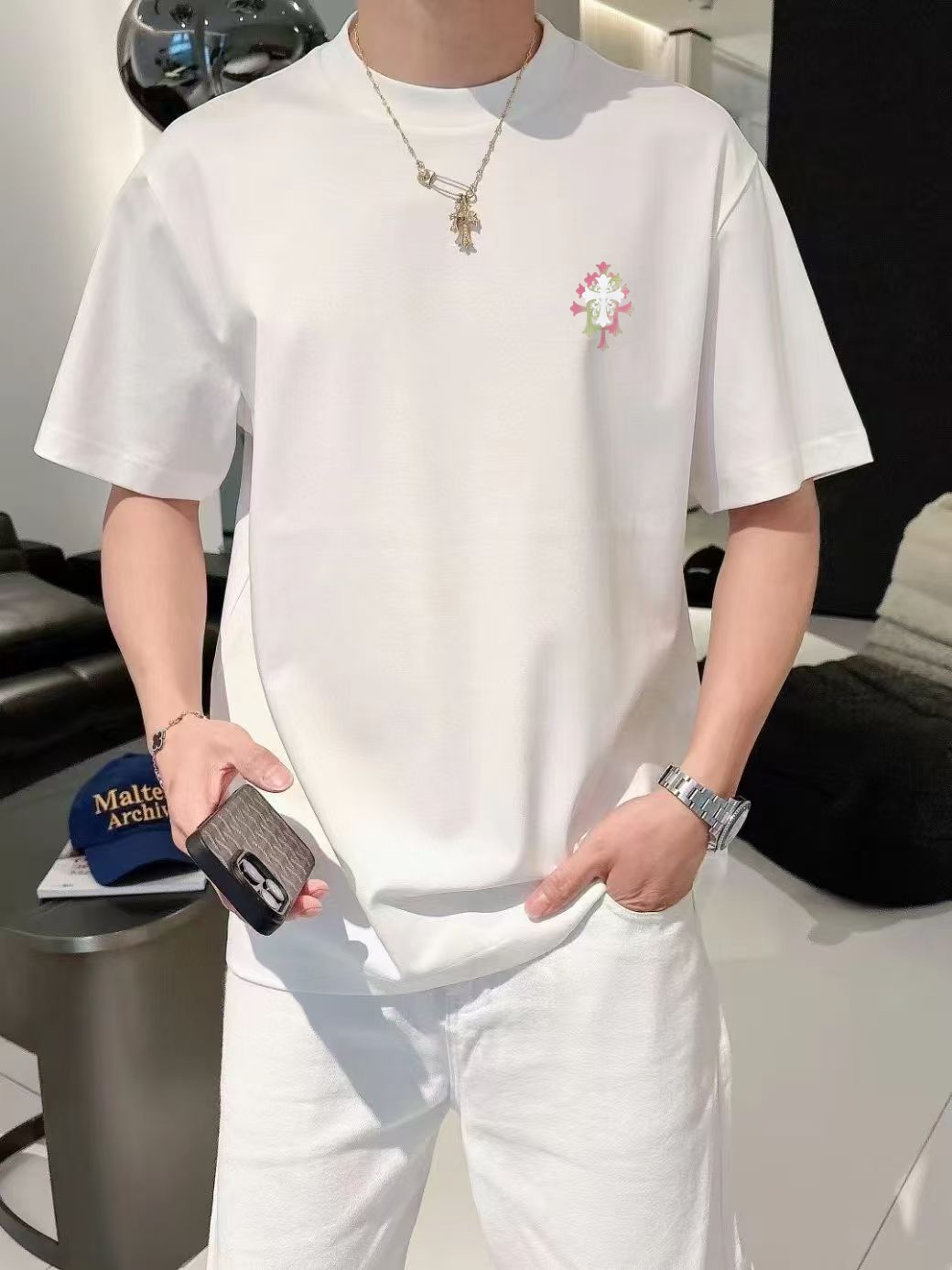 I absolutely love this Chrome Hearts tee! The fabric is so soft and comfortable, perfect for everyday wear. The design is classic and stylish, and I've already received so many compliments. I highly recommend it!