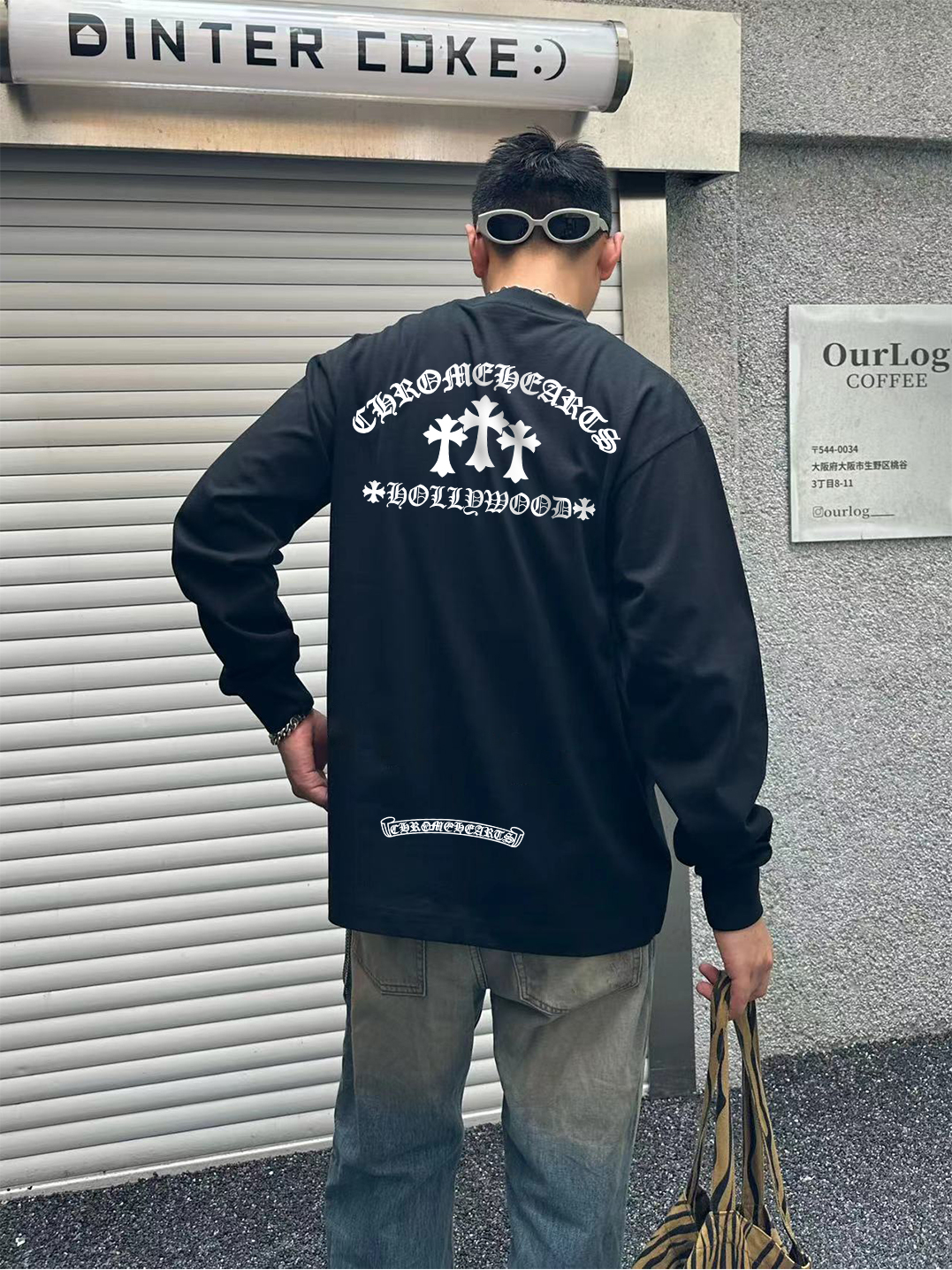 This Chrome Hearts long sleeve T-shirt is a stylish and versatile addition to any wardrobe. With its iconic logo print and comfortable fit, it's perfect for casual wear.