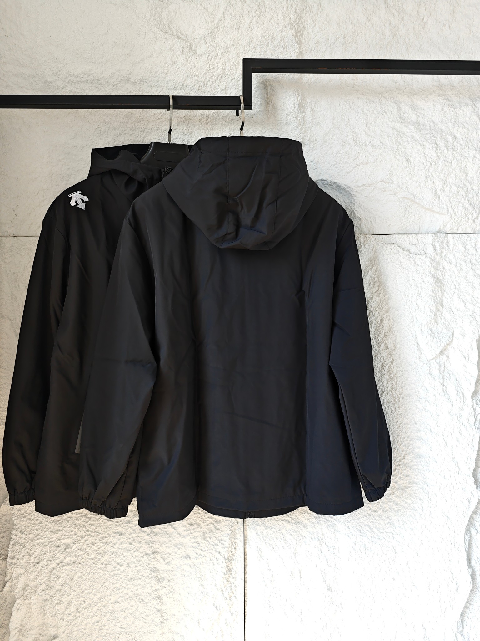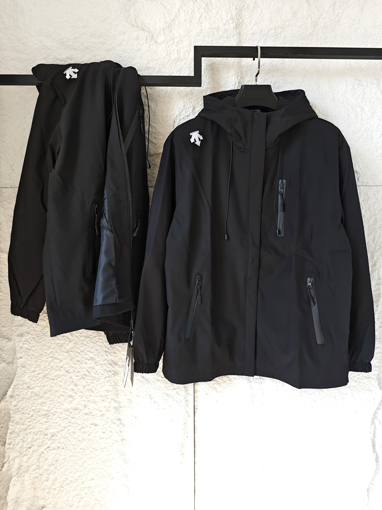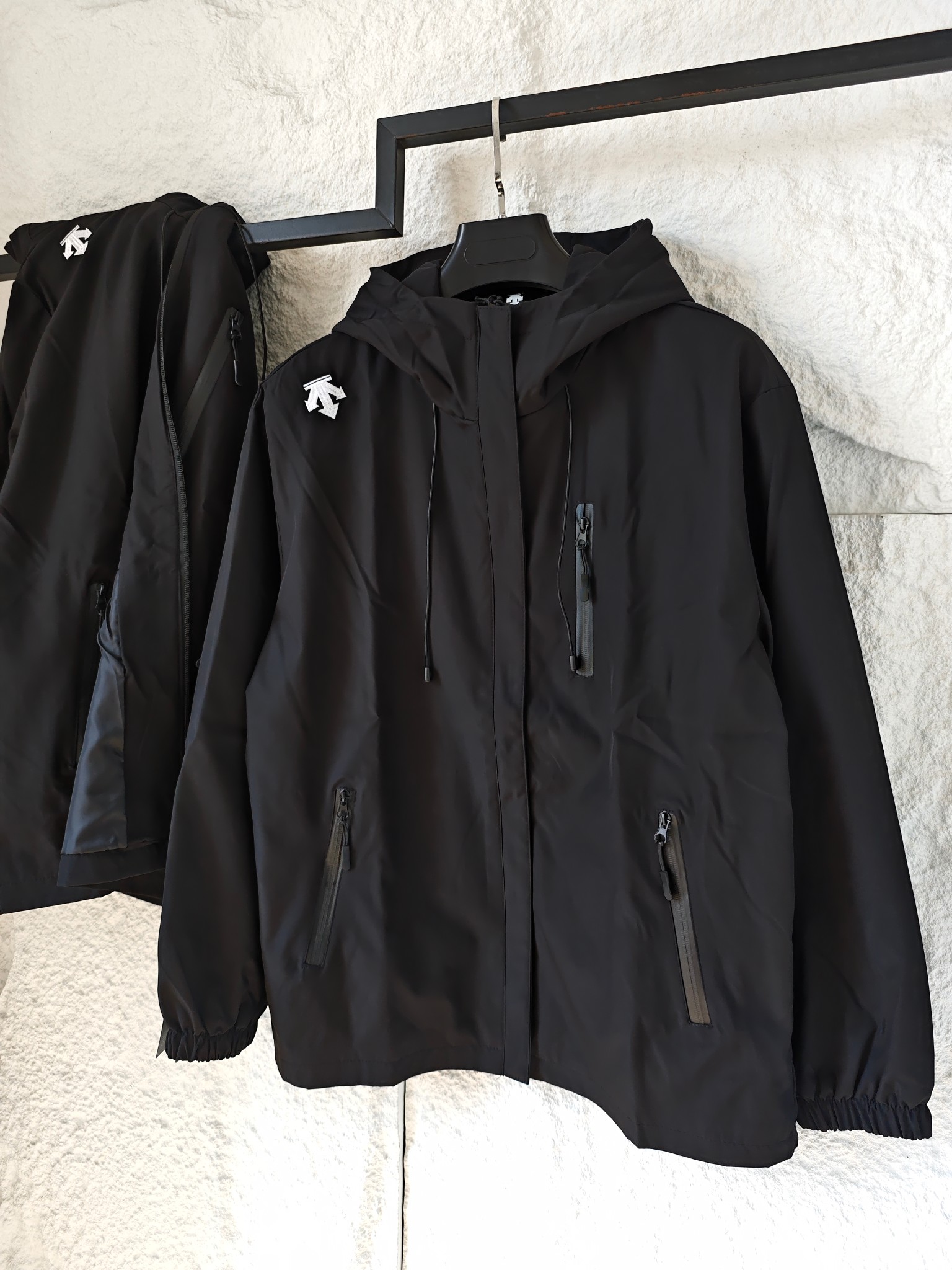 Descente Black Hooded Jacket Versatile Multiple Zipper Pockets Outerwear