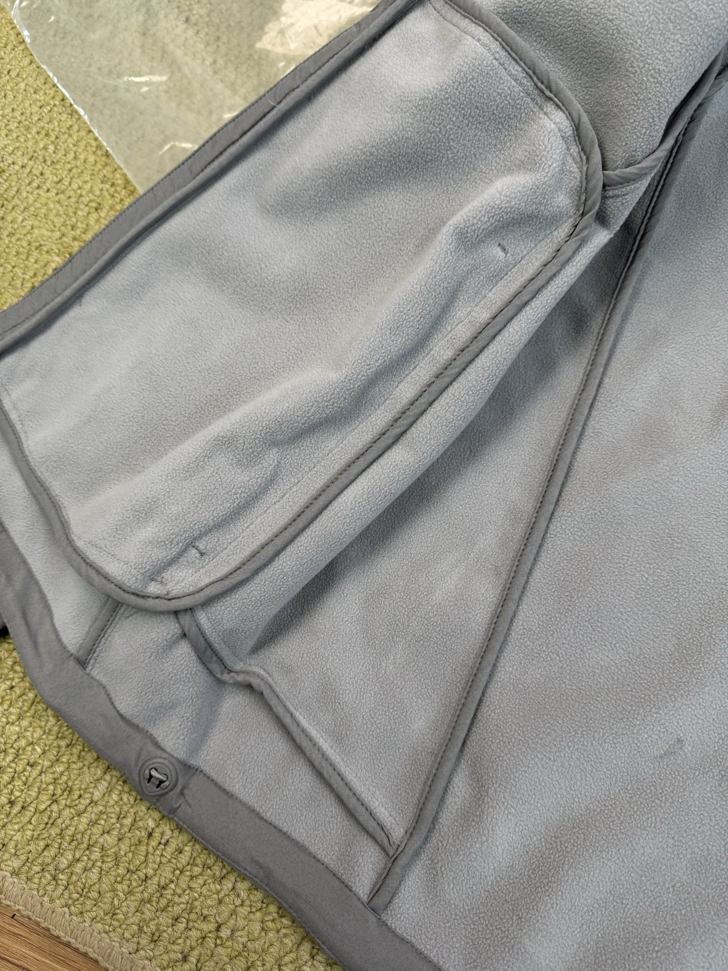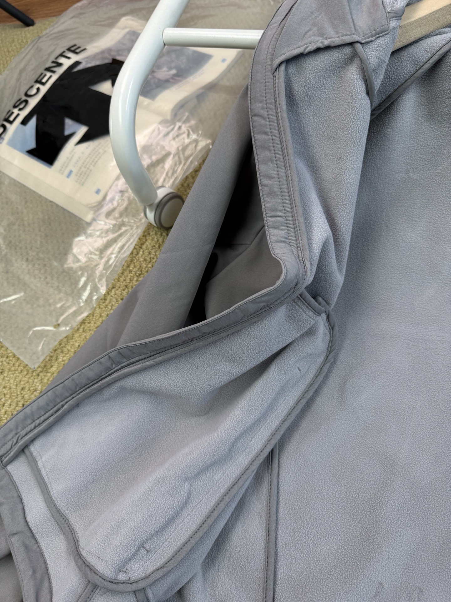 I love this jacket! It's perfect for my morning runs. The fleece lining keeps me warm, and the water-resistant fabric is great for light rain. The fit is also very comfortable.