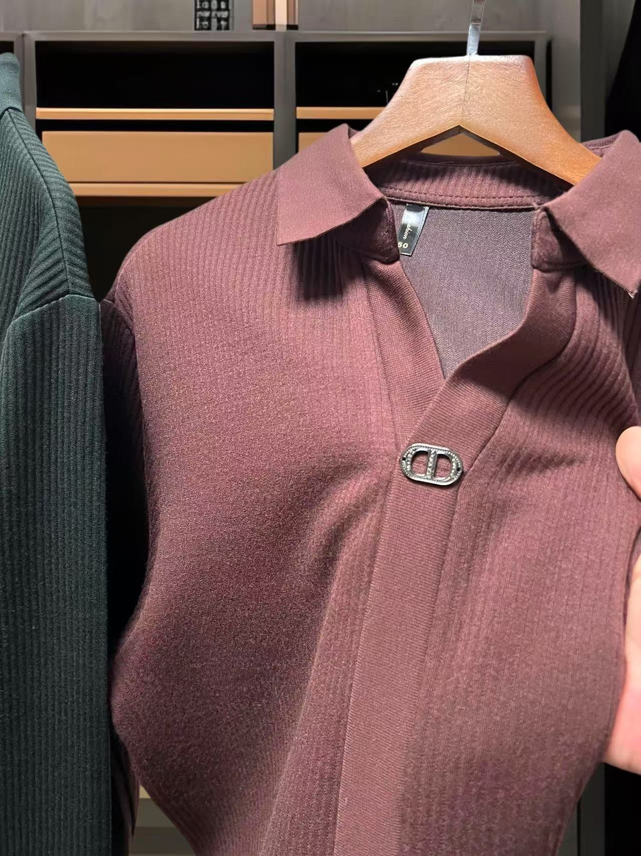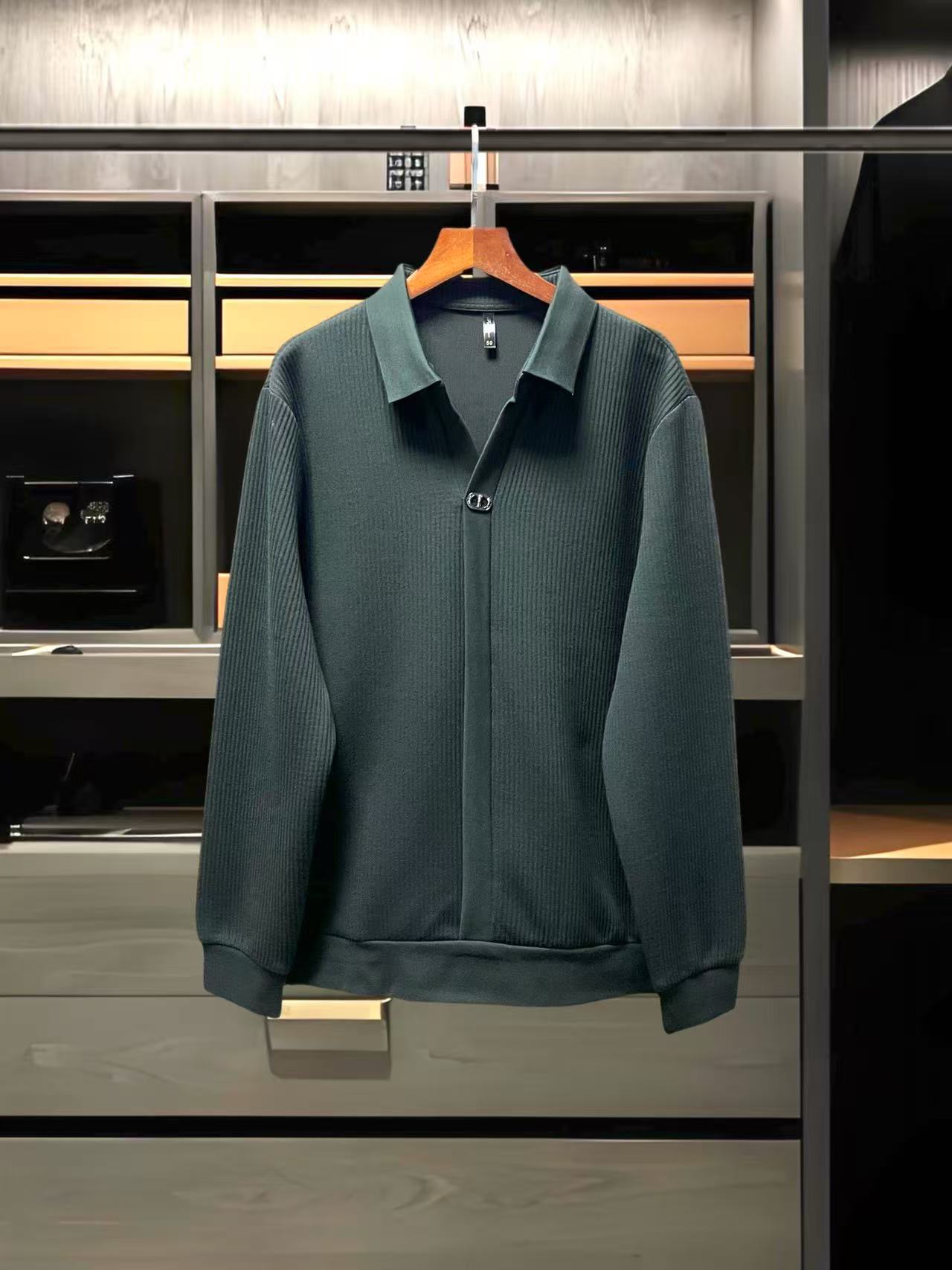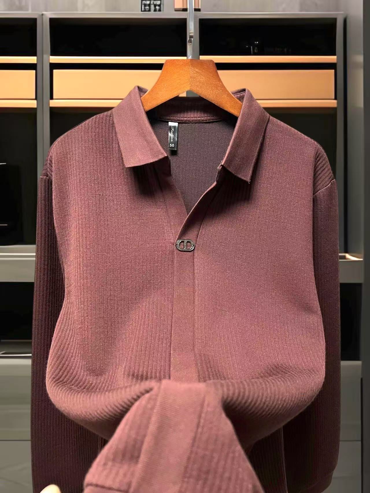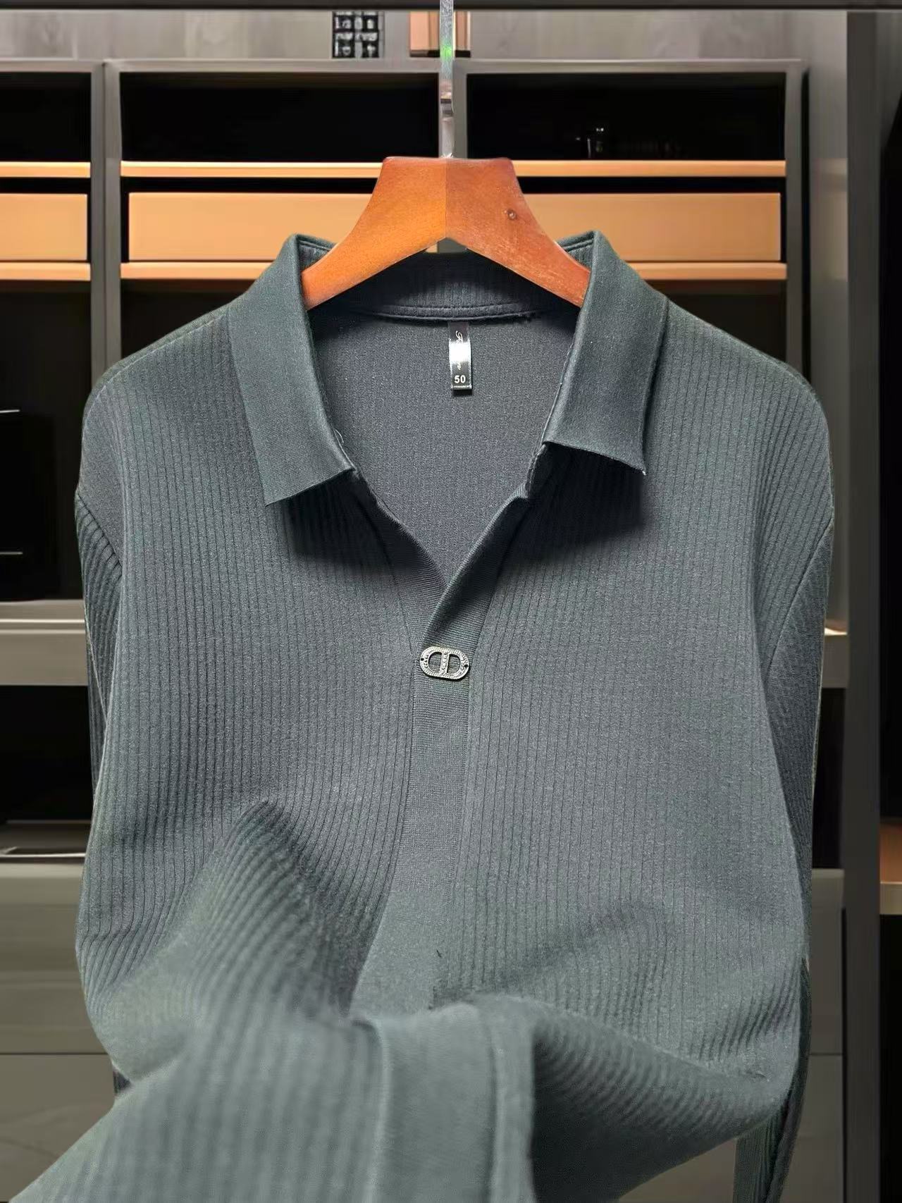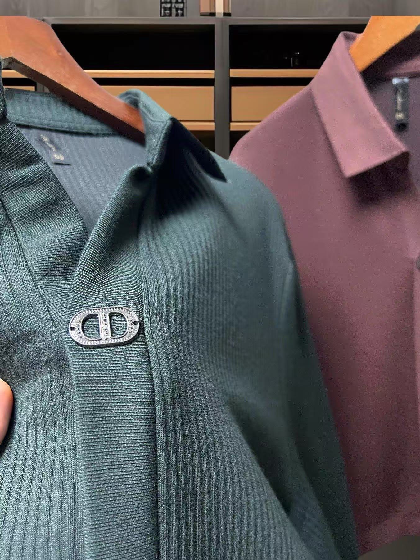 Dior CD Two-Tone Polo Collar Long Sleeve Shirt | High-End Cotton Blend