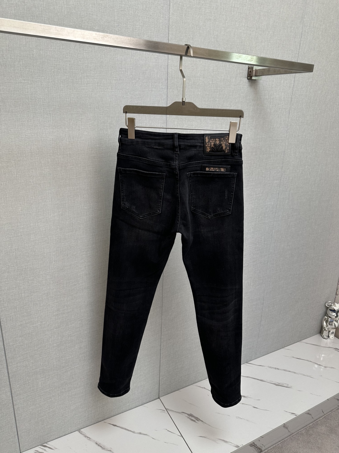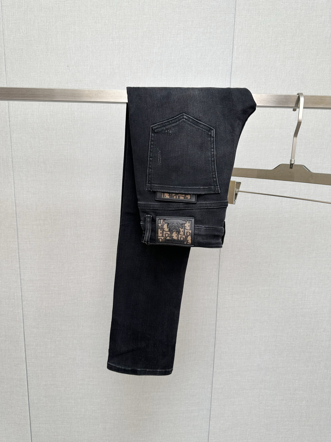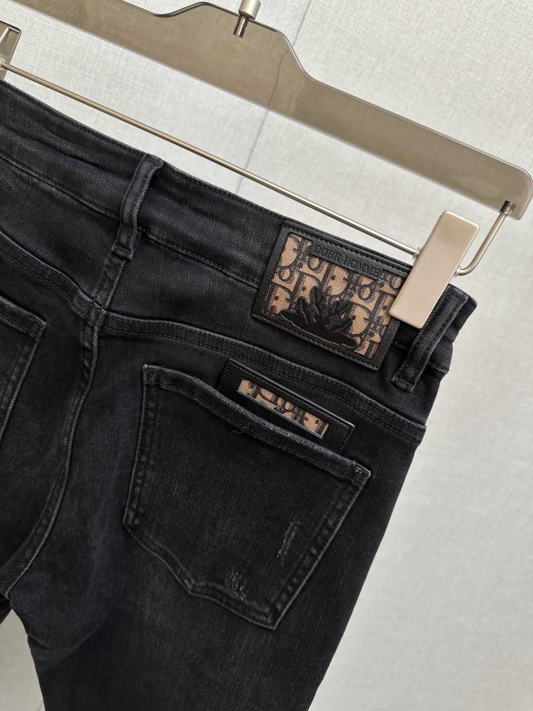 Tags: Designer Denim, Dior Homme Denim Jeans, Distressed Jeans Men, Logo Patch Jeans, Stylish Men Jeans, Washed Denim Jeans