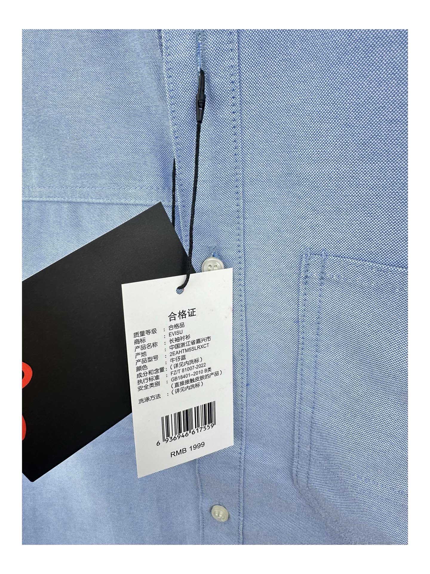 This EVISU shirt is a modern twist on a classic design, perfect for adding a touch of streetwear flair to your wardrobe.
