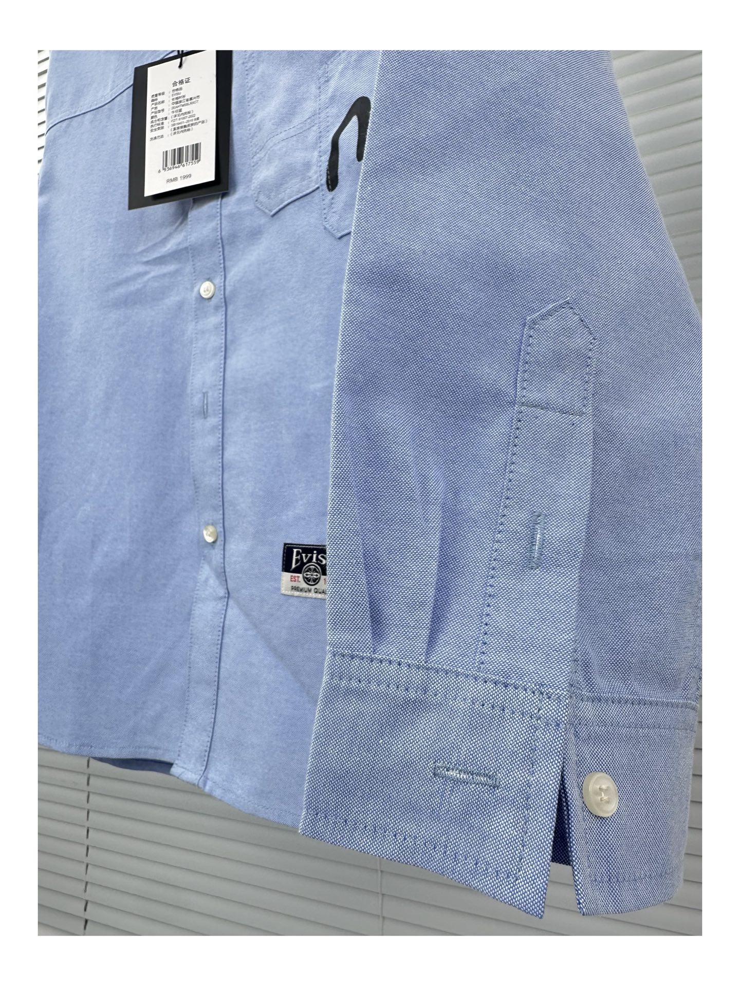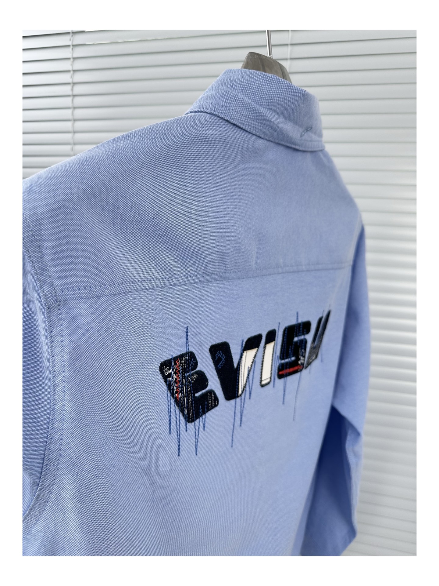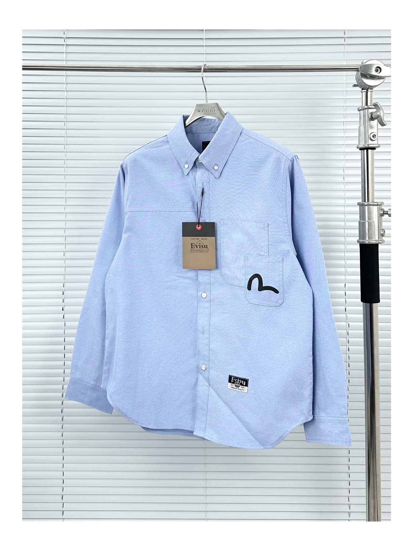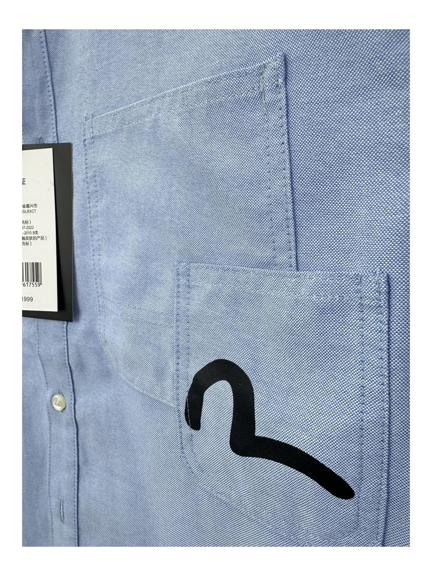 Elevate your style with this EVISU shirt. Features intricate embroidery, a classic collar, and practical pockets. Available in sizes M to XXL.