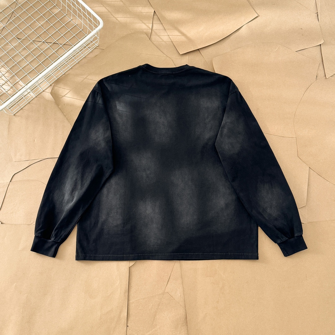 Elevate your streetwear with this vintage wash black long sleeve T-shirt. Featuring a relaxed fit and unique graphic design.