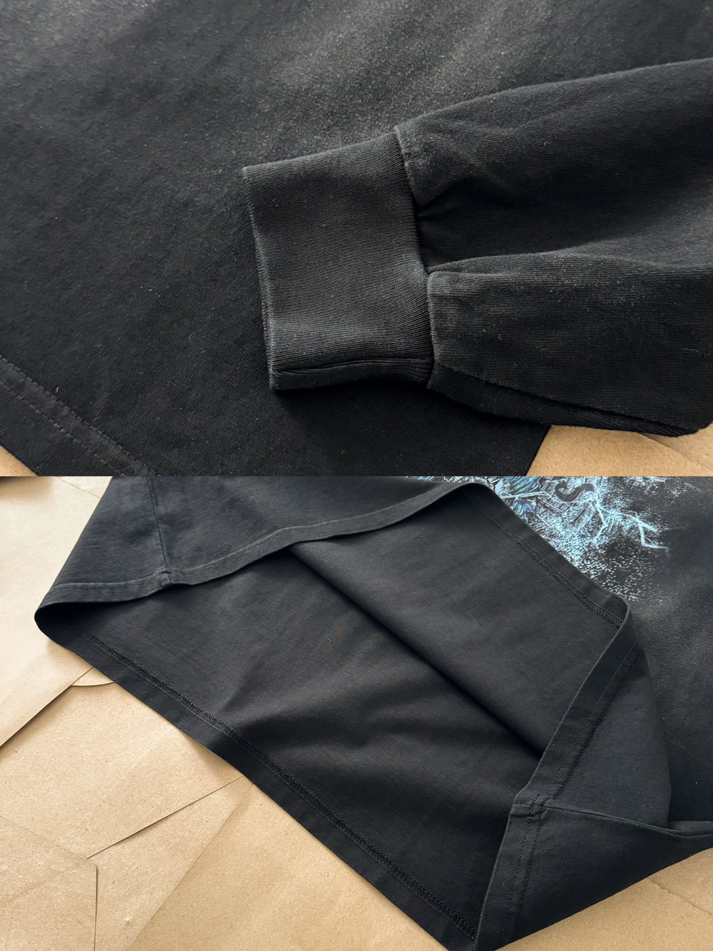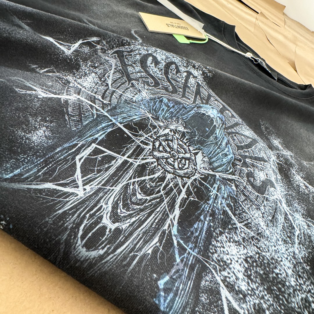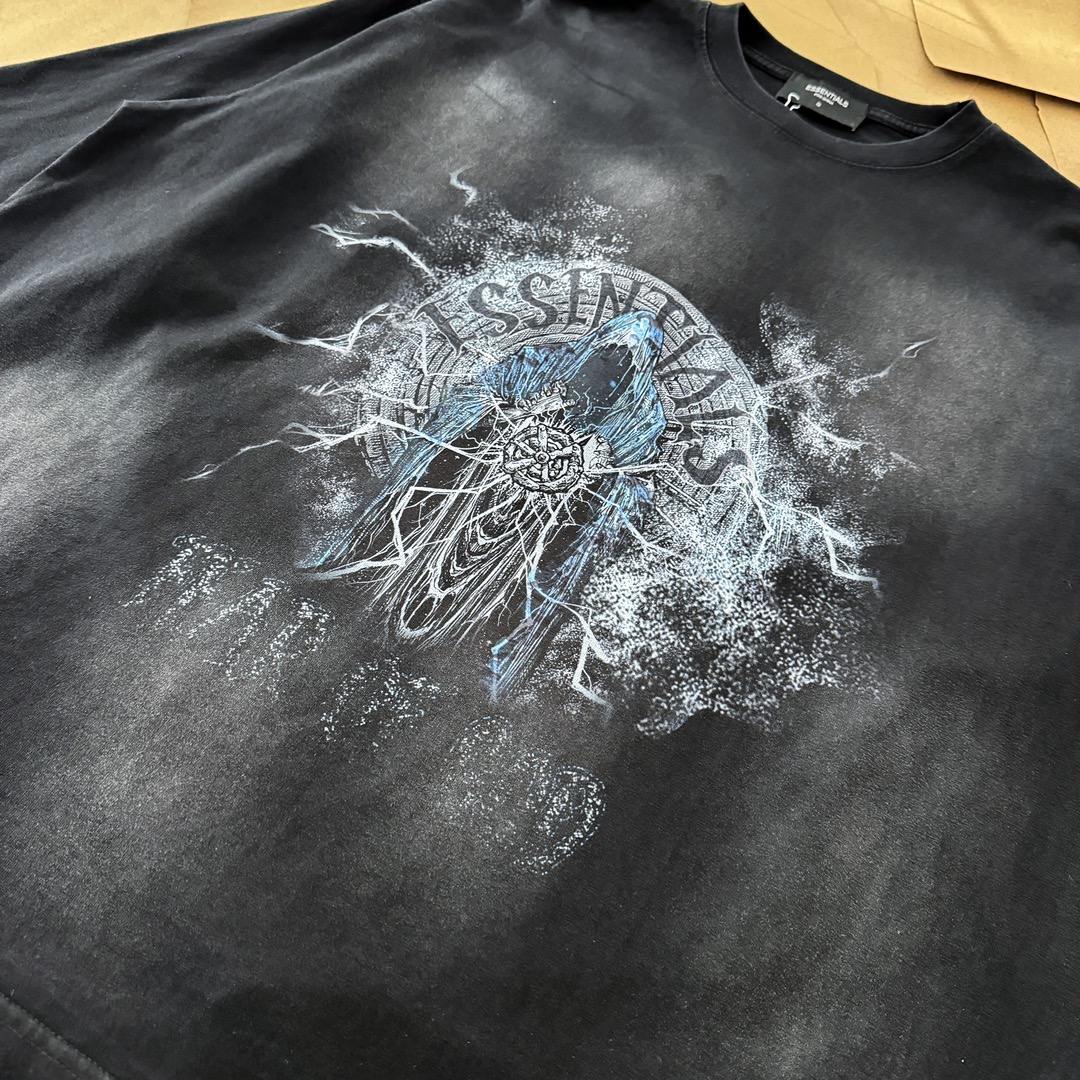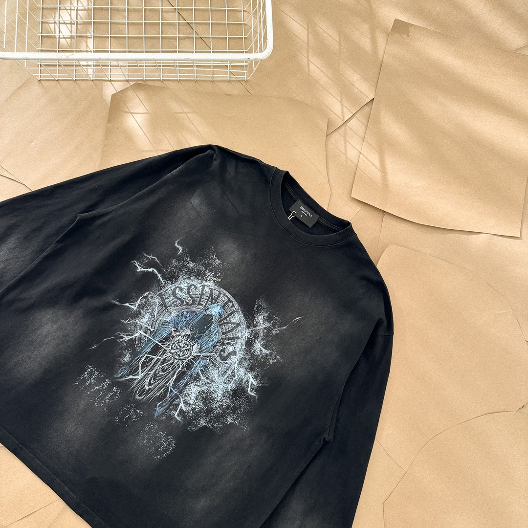 Tags: Black Graphic Tee, Essentials Long Sleeve, Fear Of God T-shirt, Relaxed fit shirt, Vintage Wash T Shirt