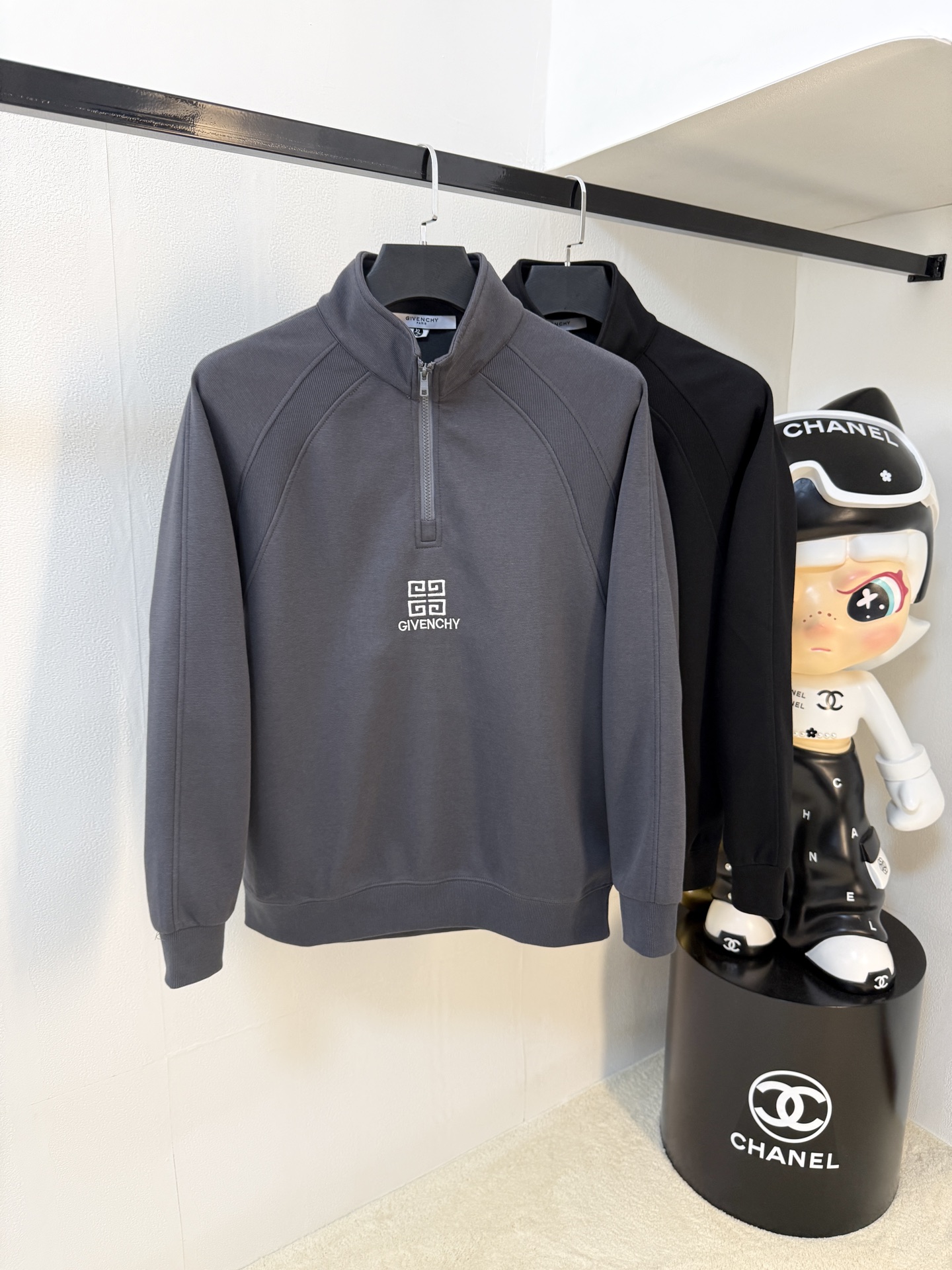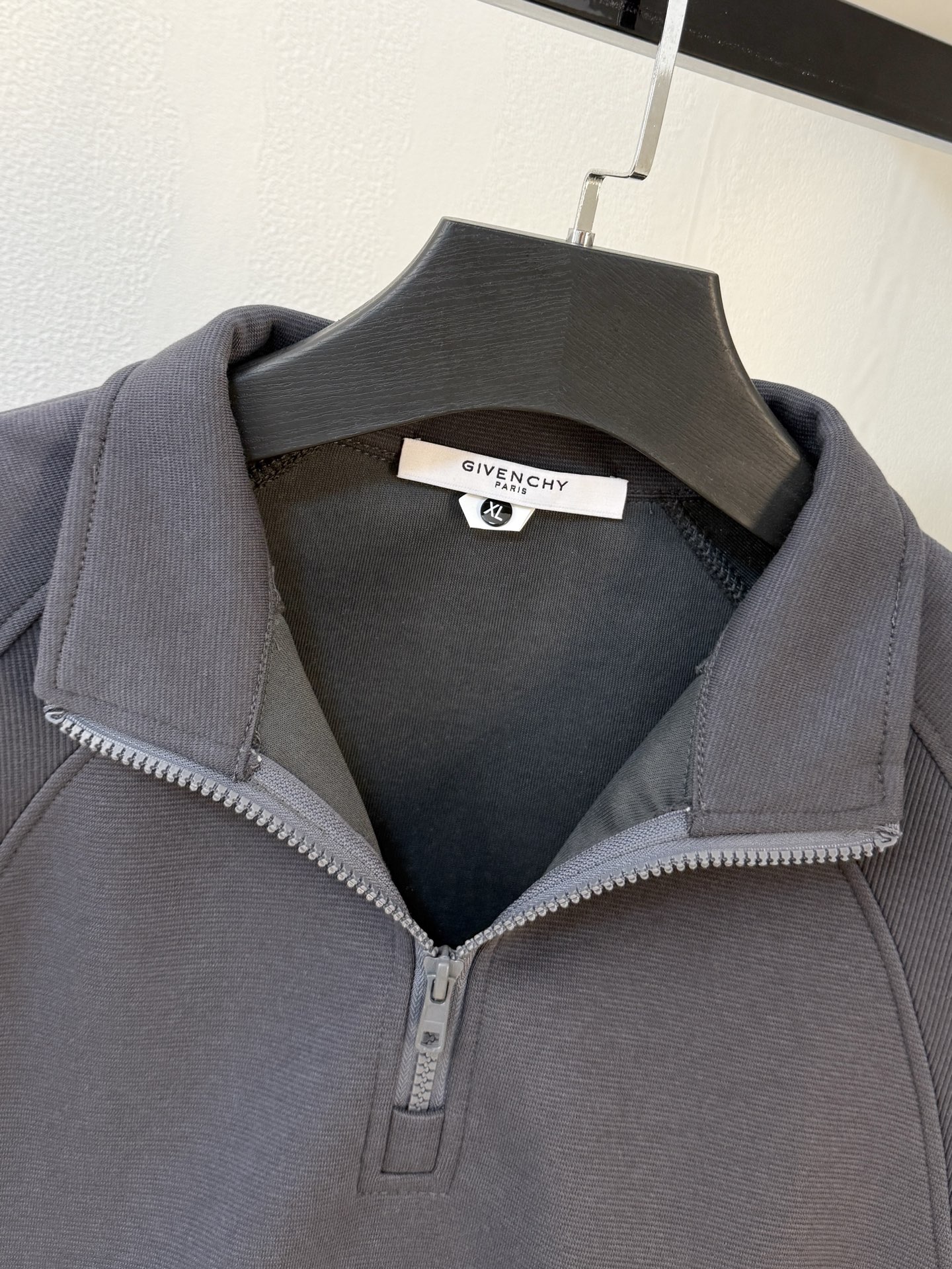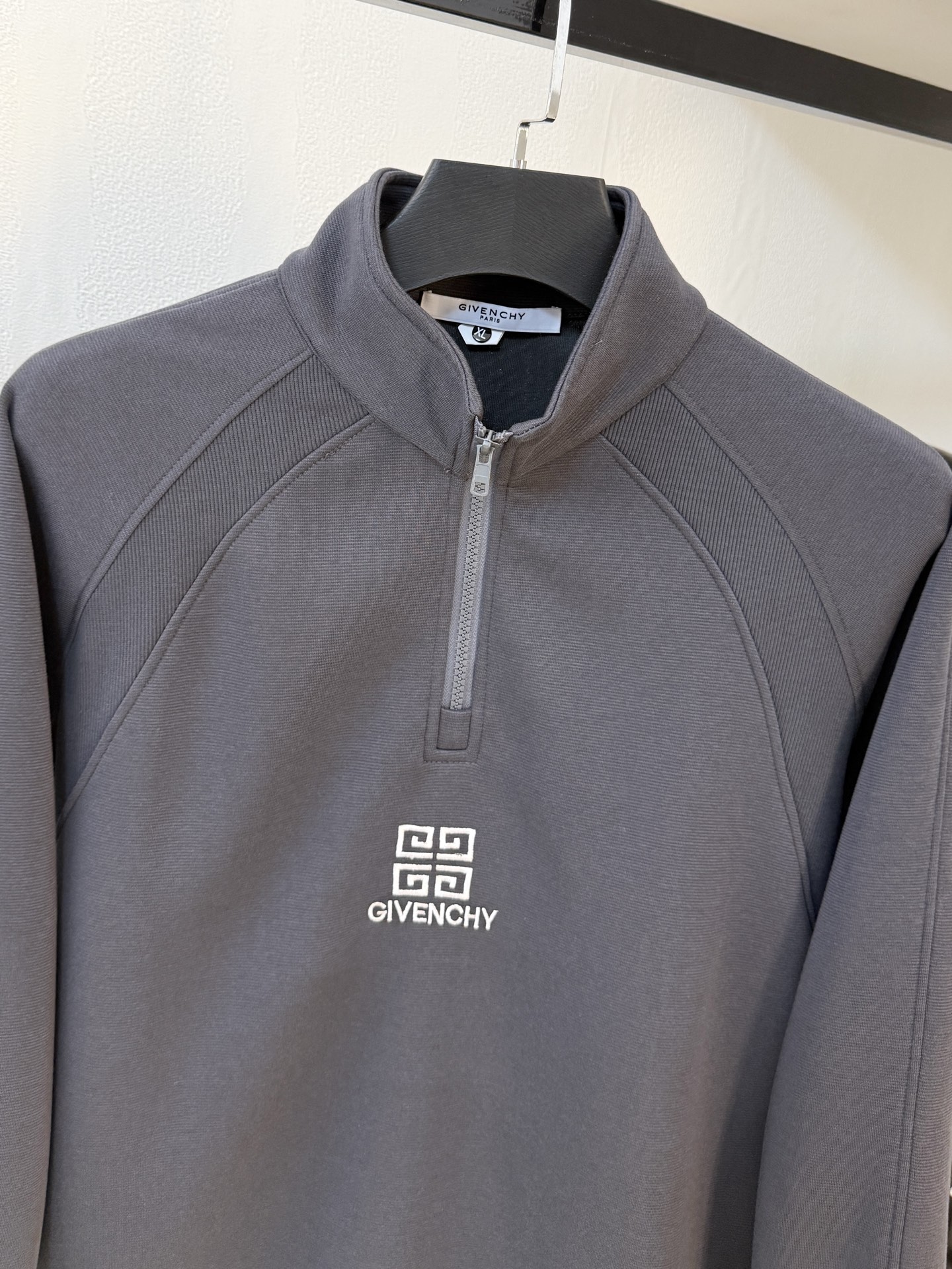 Givenchy Grey Half-Zip Logo Sweatshirt | Unisex Top Quality Pullover