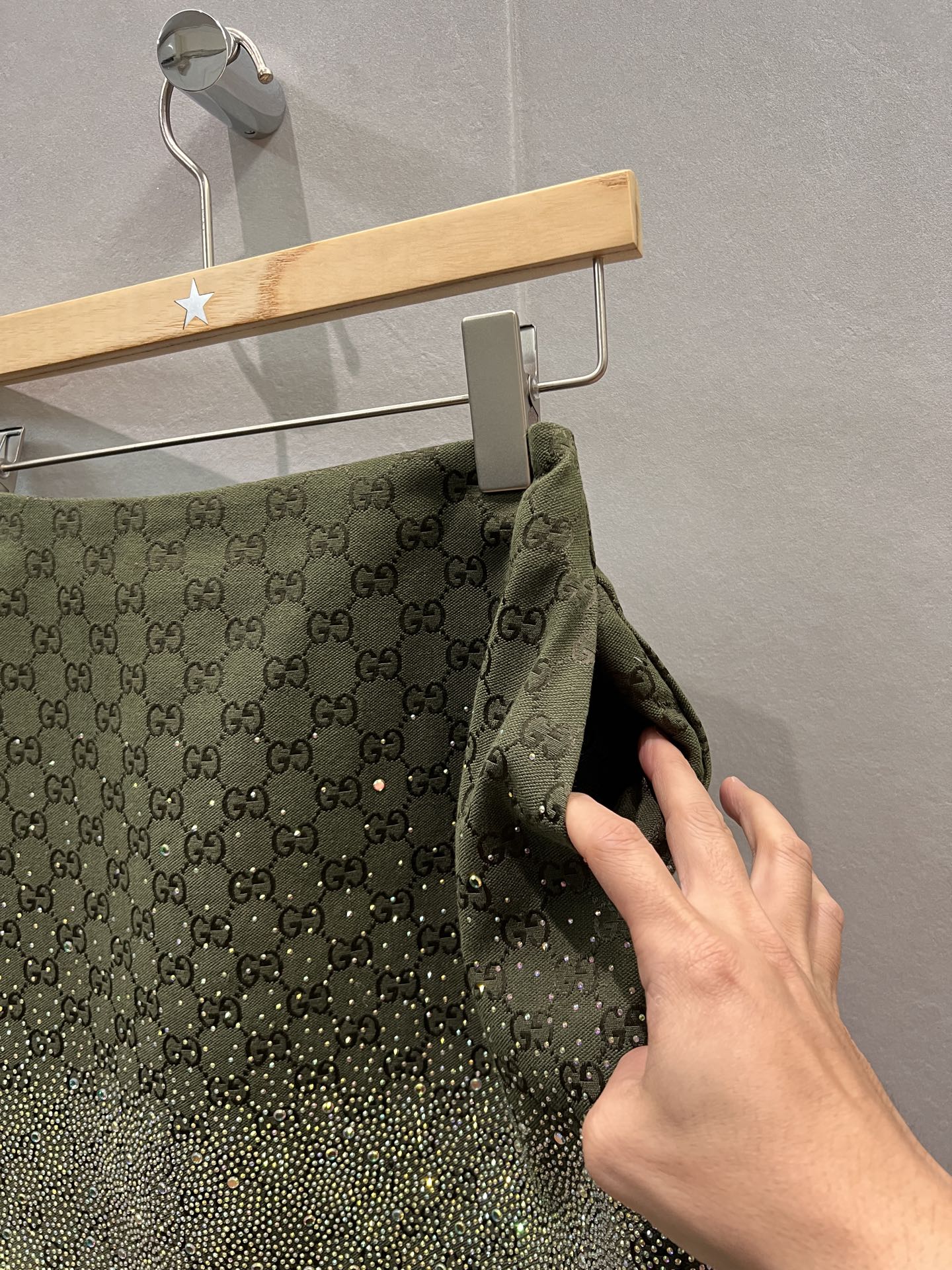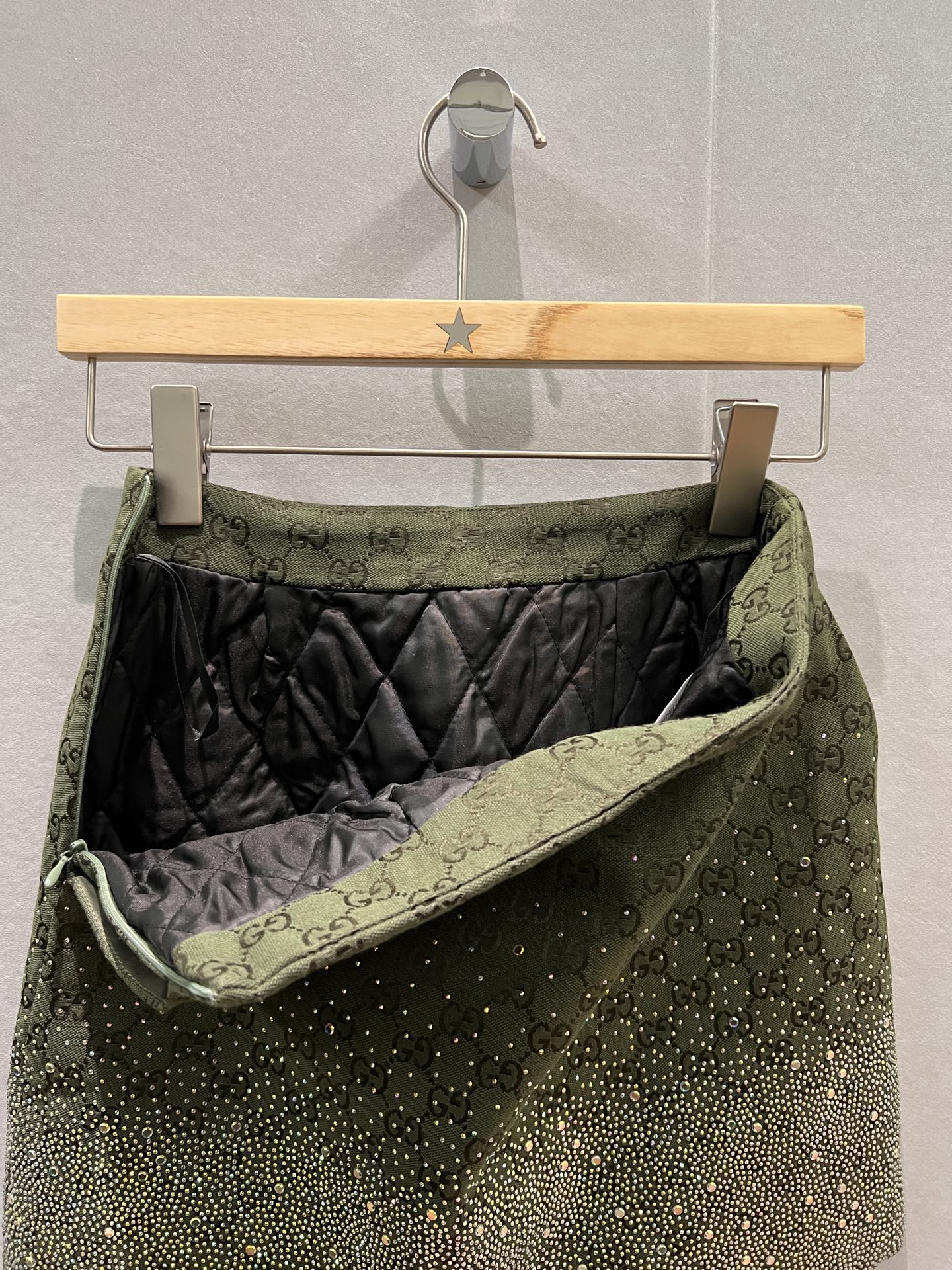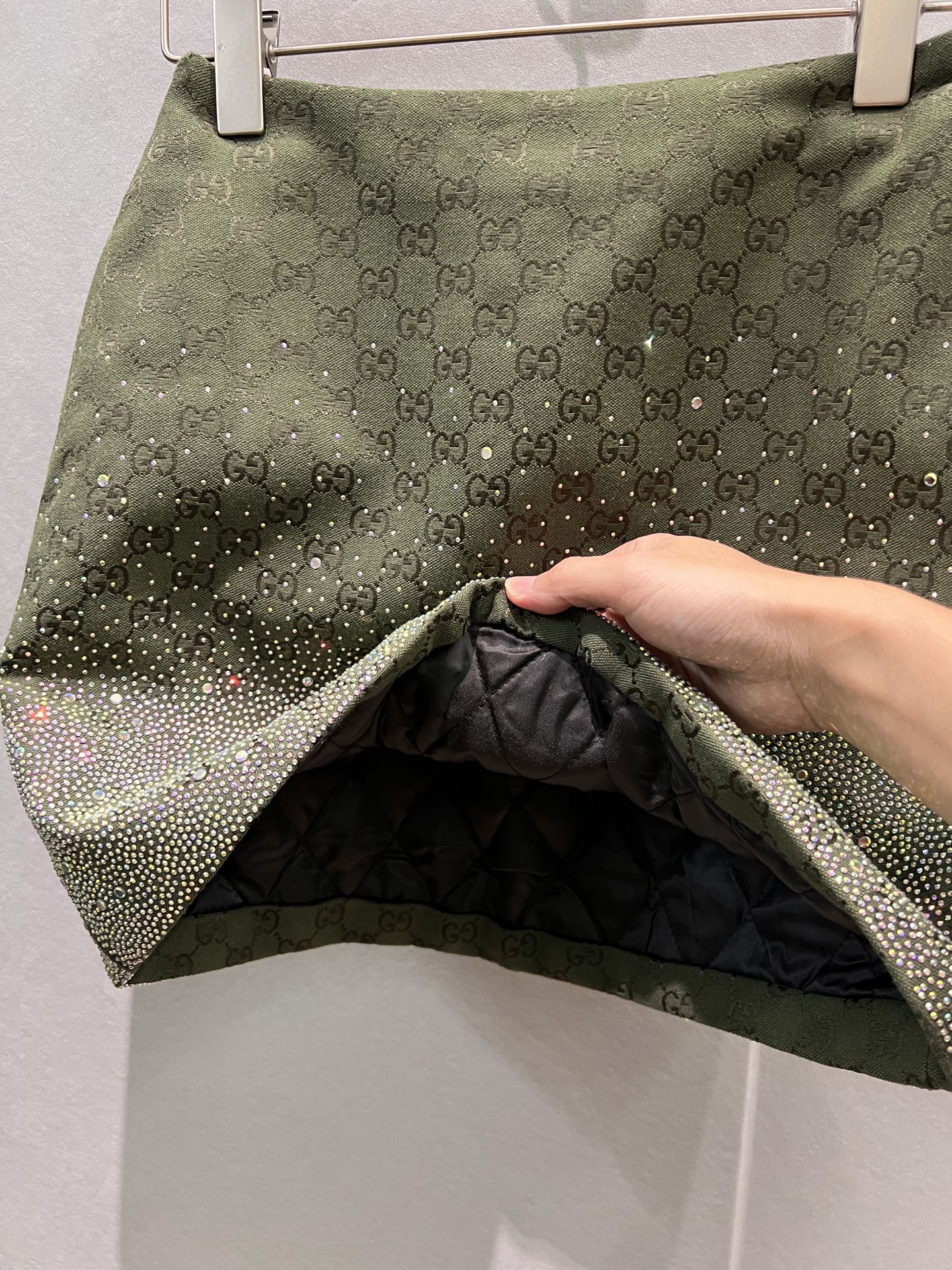 This skirt is a showstopper! The double G pattern and diamanté embellishments make it so unique and luxurious. The skirt fits true to size, is very comfortable. I can't wait to wear it out!