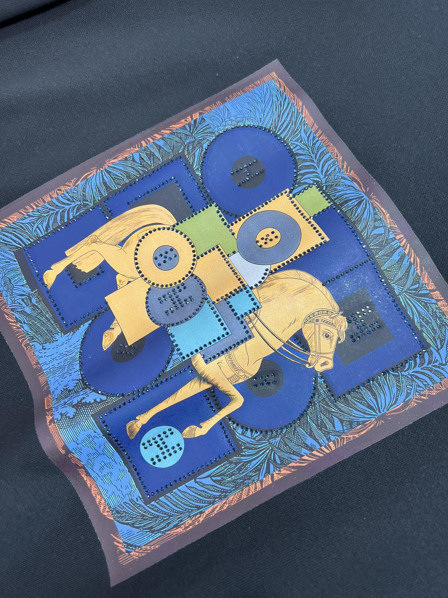 Elevate your wardrobe with this Hermes sweatshirt. Featuring a unique horse graphic, crafted from 380g pure cotton, perfect for pairing.