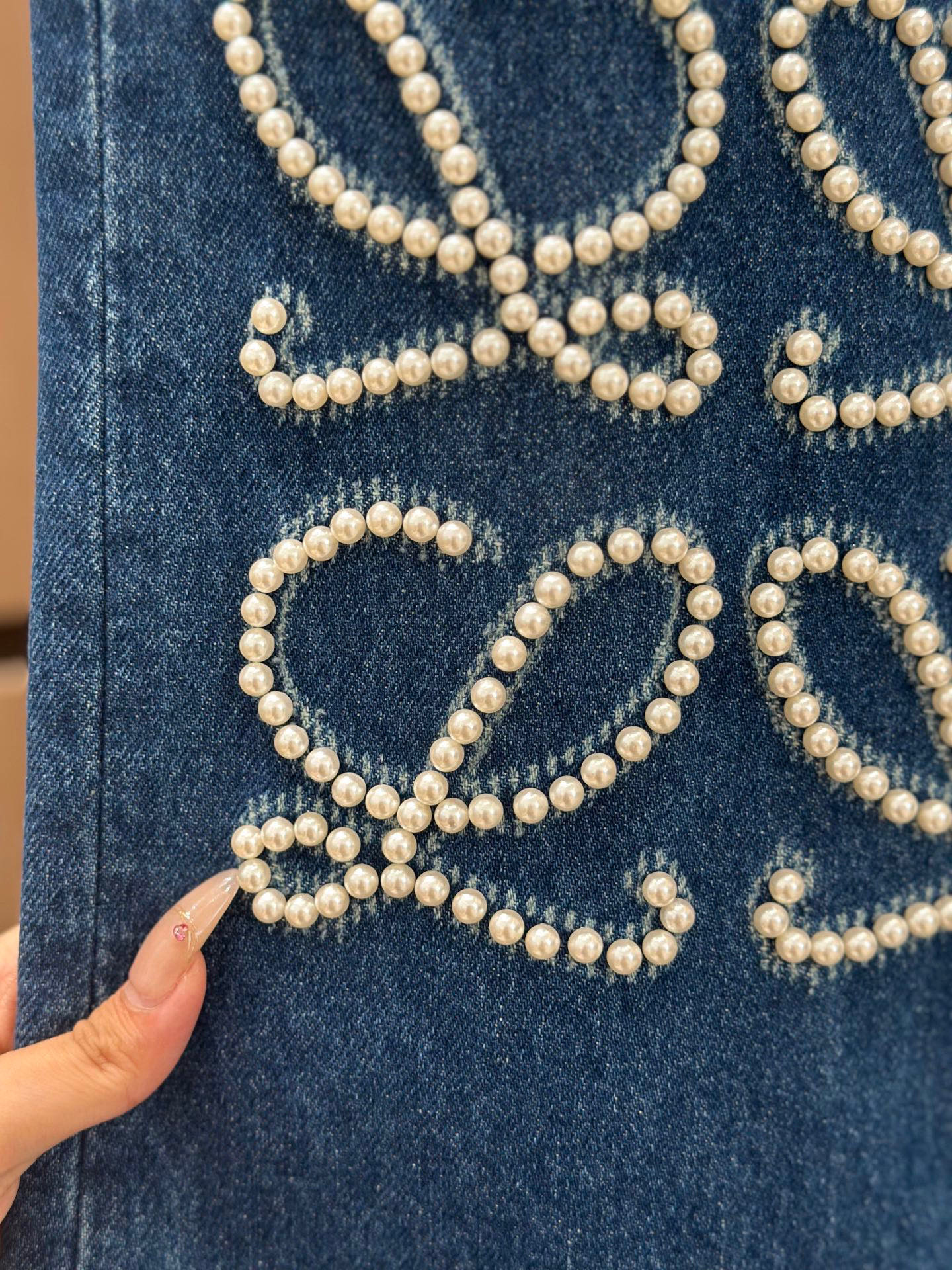These jeans are amazing. The pearl detailing is delicate and beautiful. The wide-leg style is so comfortable and stylish. I've already worn them multiple times and received many compliments.