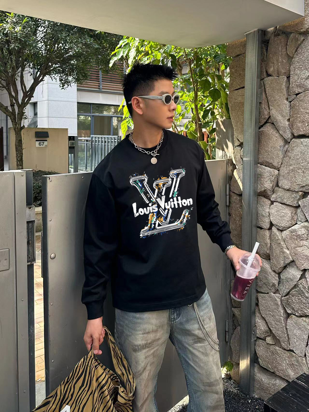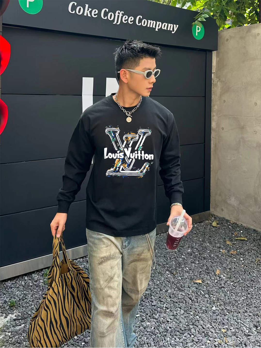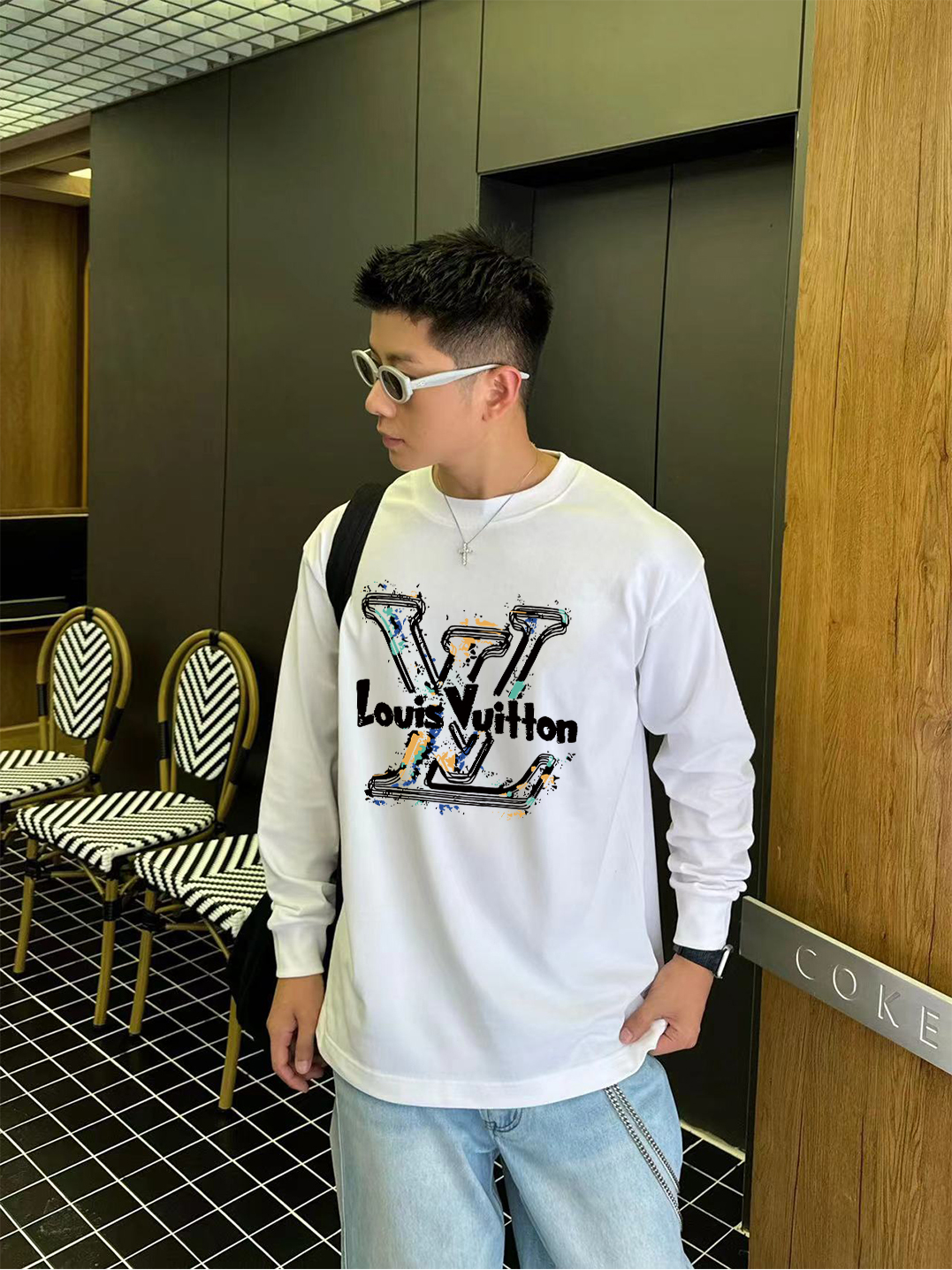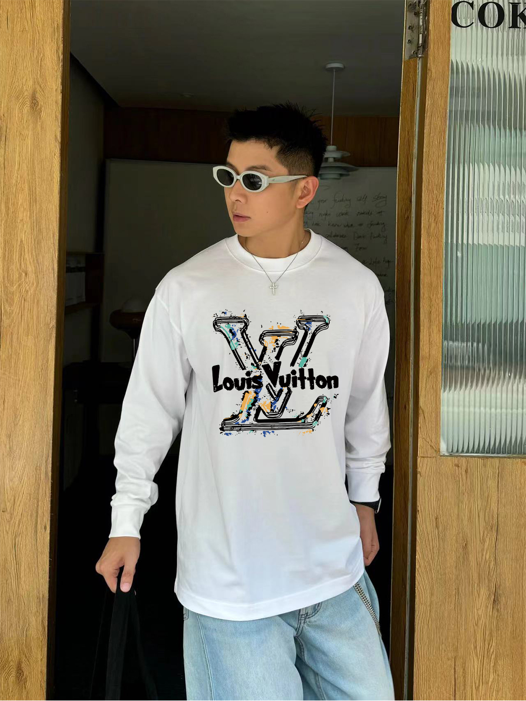Tags: Designer Long Sleeve Shirt, Graffiti Logo Tee, High End T-Shirt, Louis Vuitton 2025, Louis Vuitton Long Sleeve T-shirt, Luxury Casual Wear