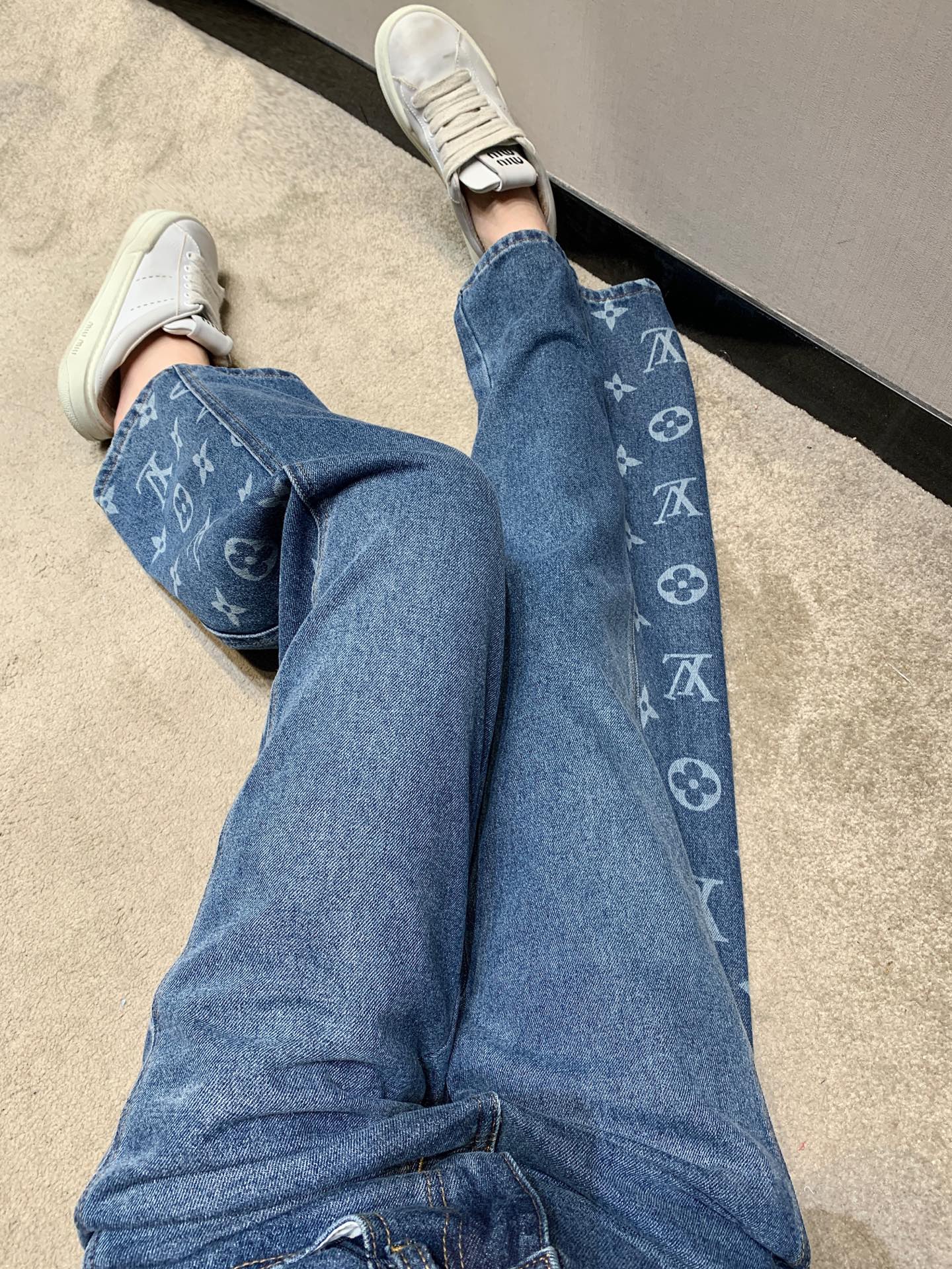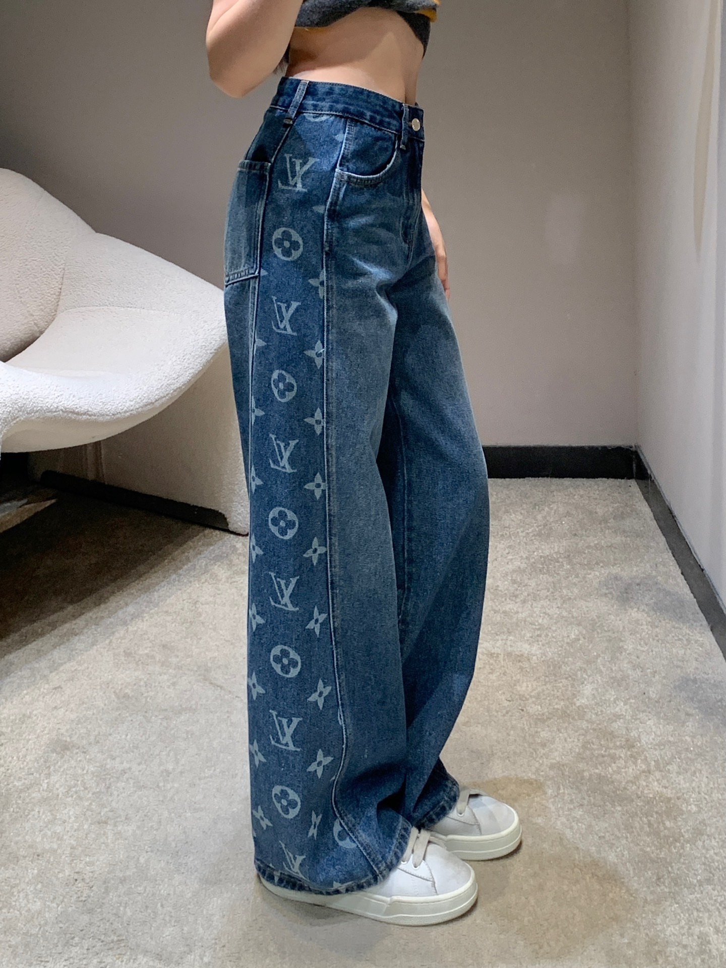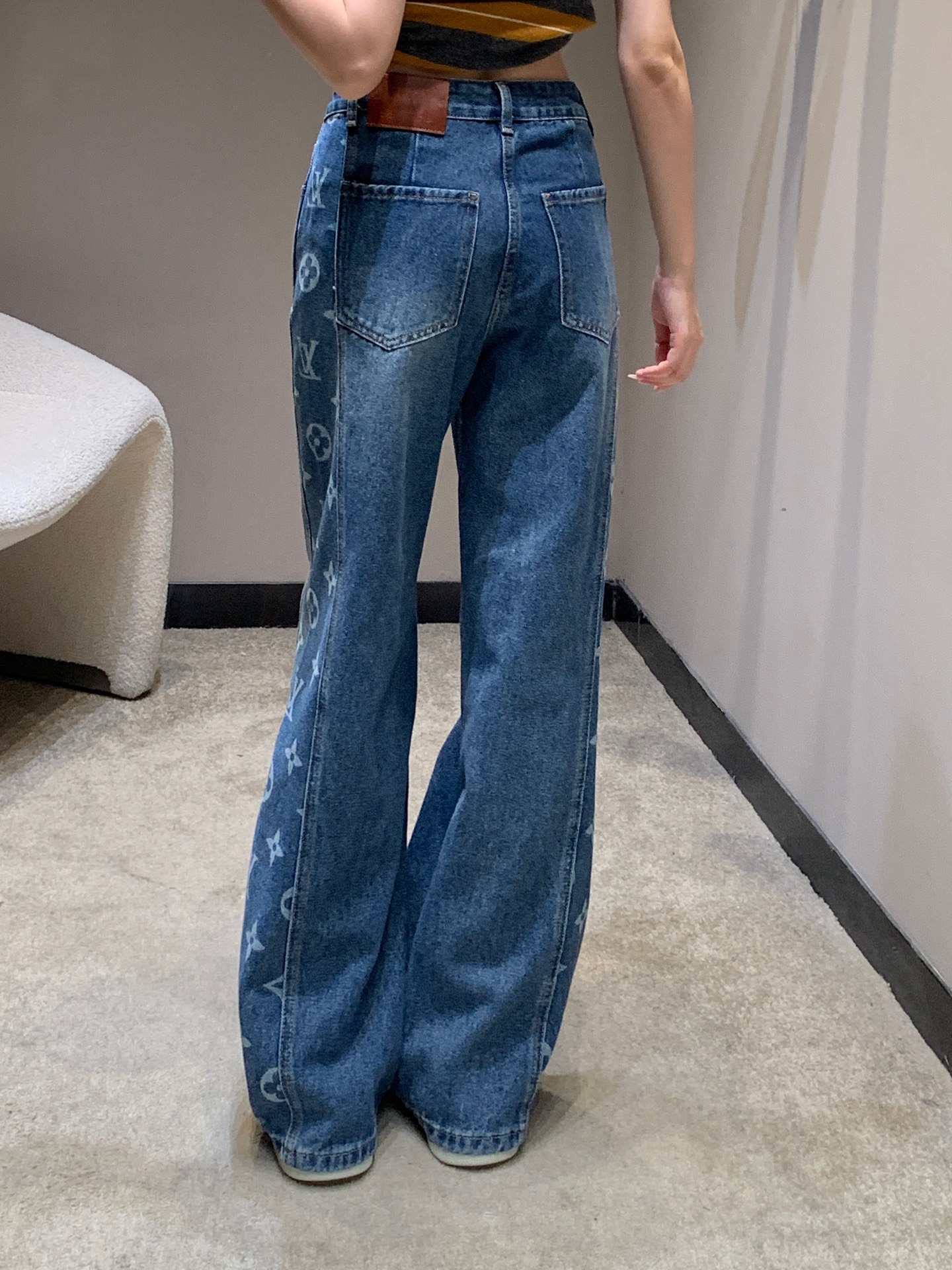 These Louis Vuitton denim wide-leg jeans are a stylish and trendy addition to any wardrobe. With their flattering cut and eye-catching design, they are sure to turn heads wherever you go.