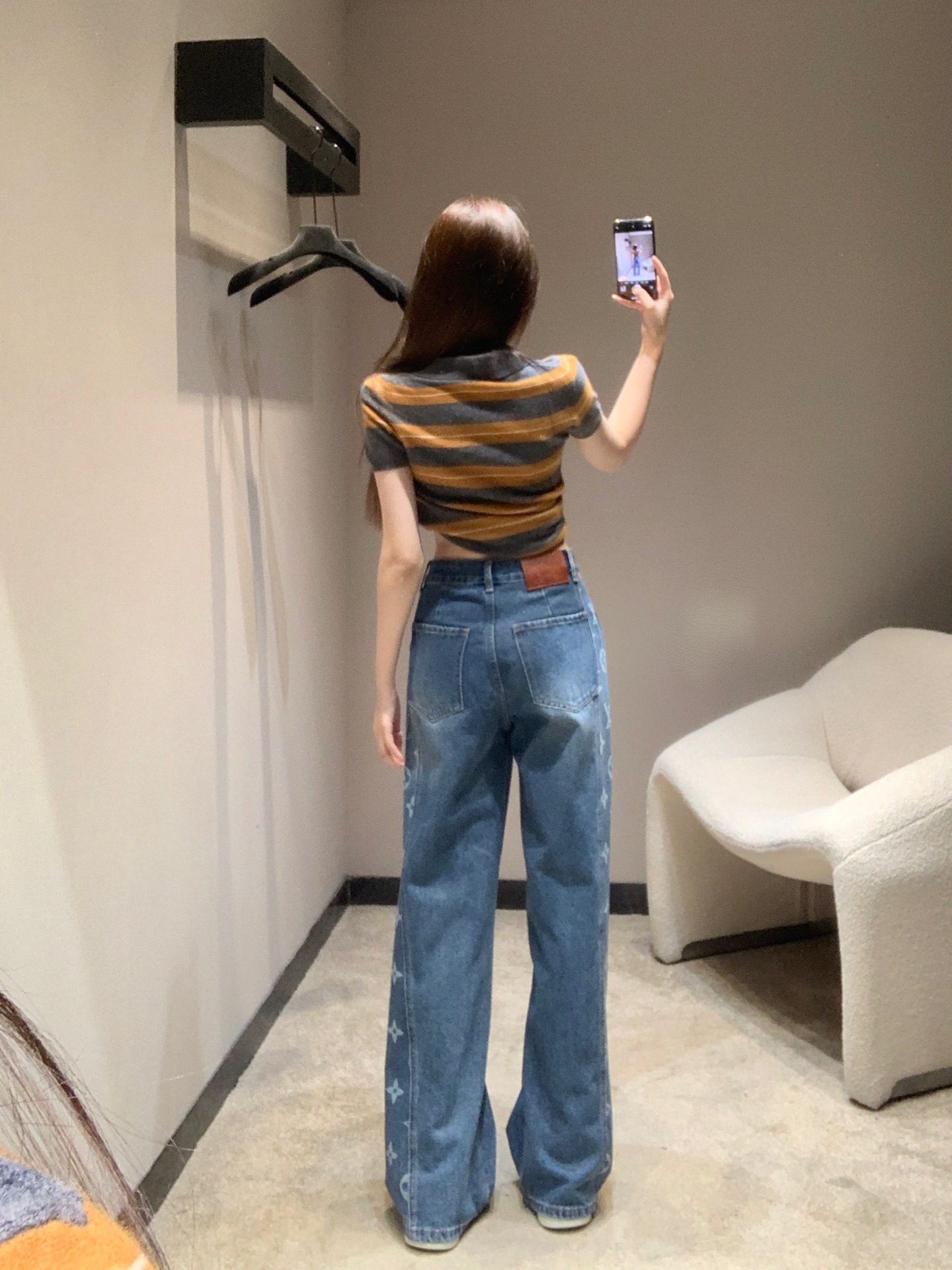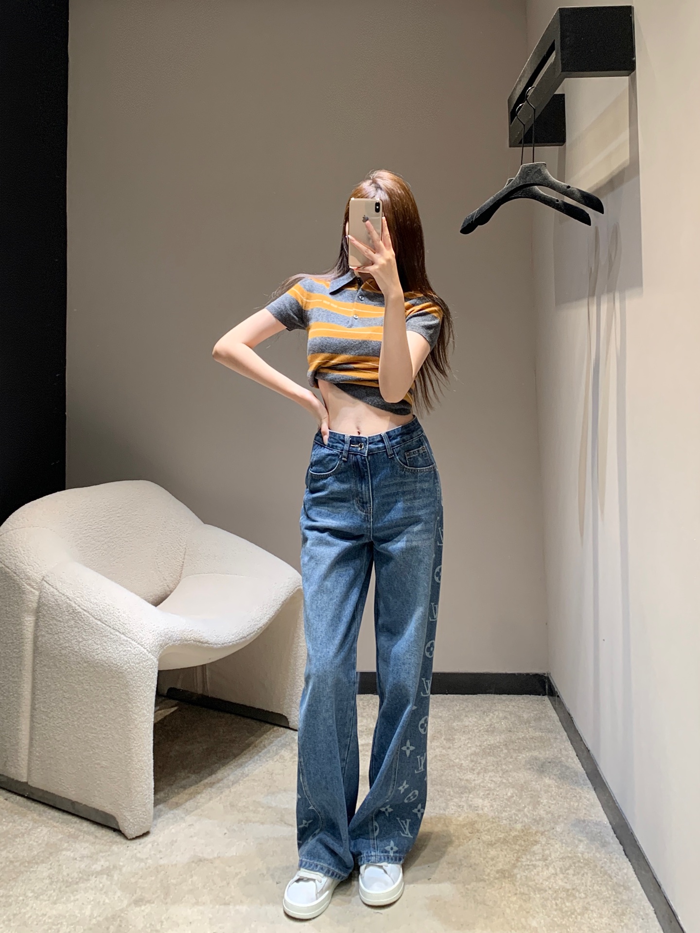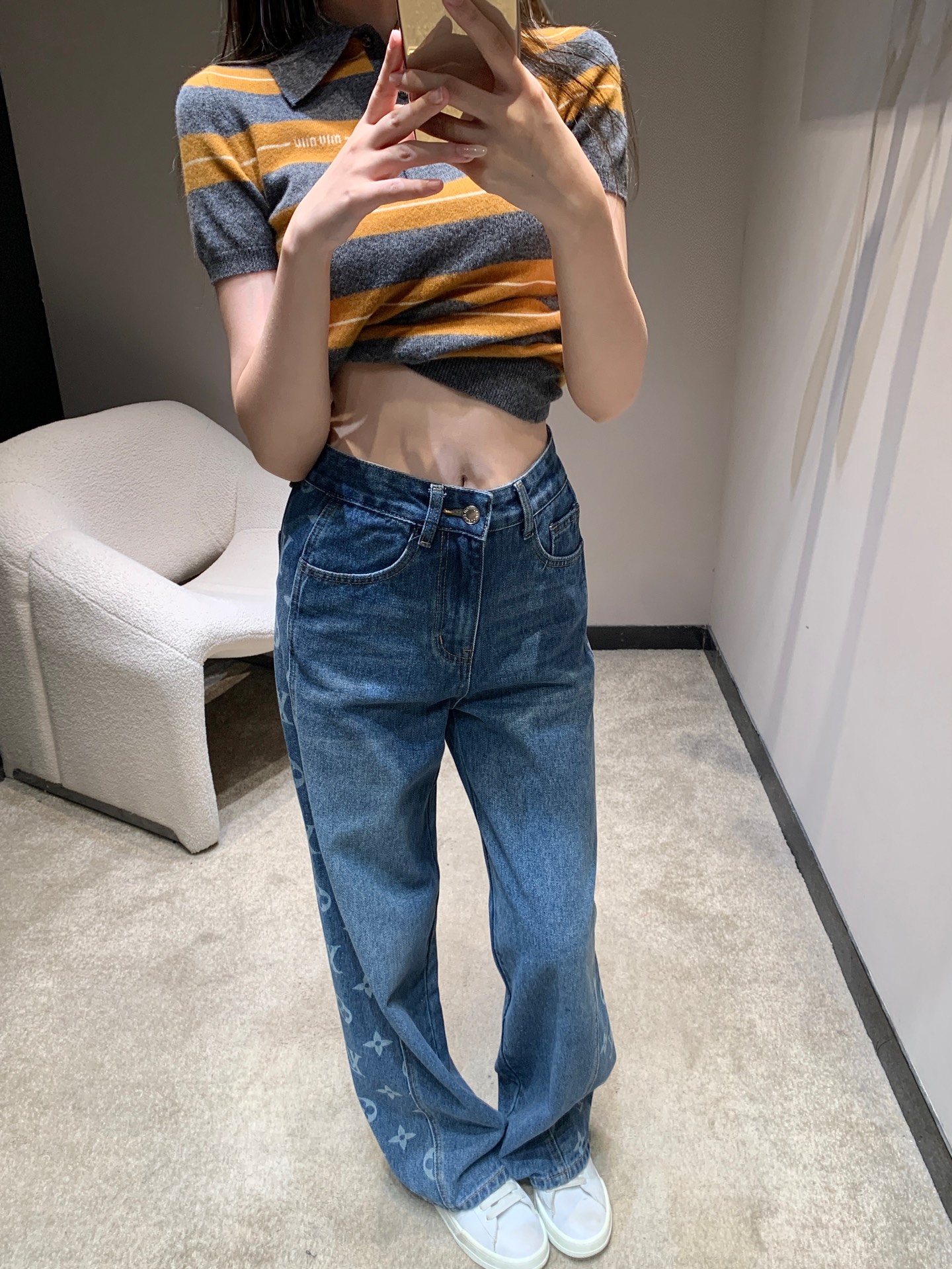 These Louis Vuitton denim wide-leg jeans are a stylish and trendy addition to any wardrobe. With their flattering cut and eye-catching design, they are sure to turn heads wherever you go.