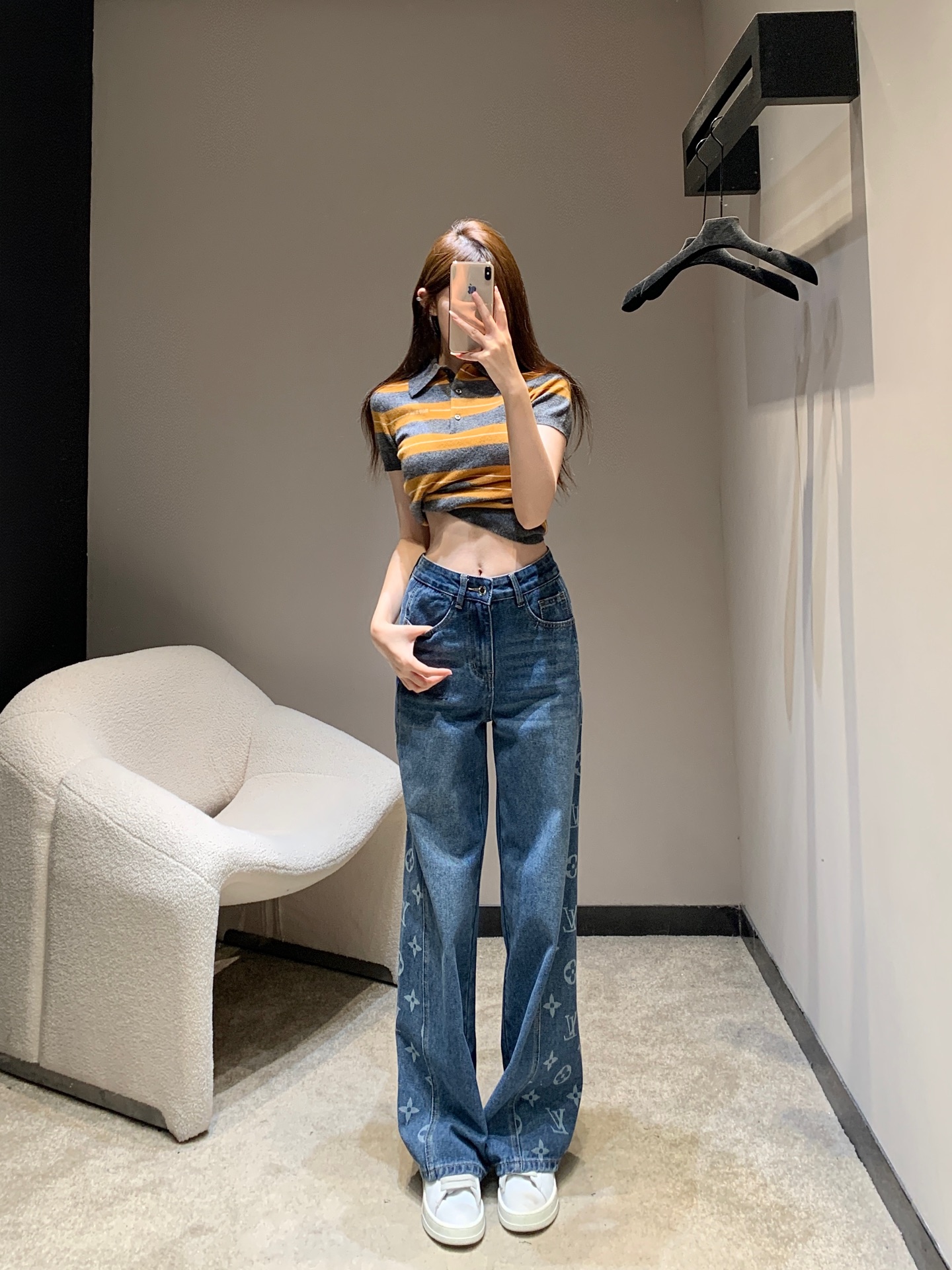 In conclusion, these Louis Vuitton denim wide-leg jeans are a must-have for any fashion-forward woman. With their stylish design and high-quality construction, they are sure to become a favorite in your wardrobe.