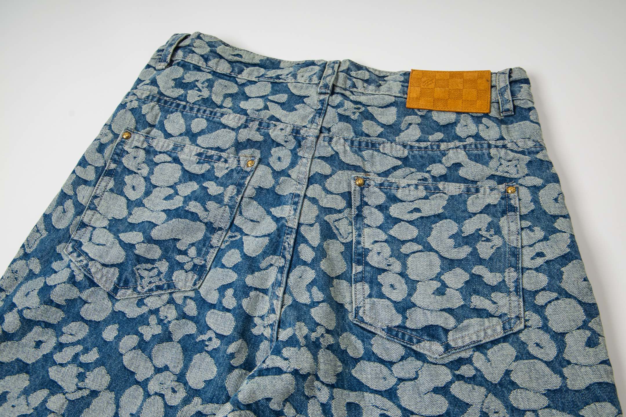 These Louis Vuitton x Nigo collaboration jeans are a must-have for any fashion enthusiast. The unique leopard print design sets these jeans apart, blending high-end luxury with streetwear style.