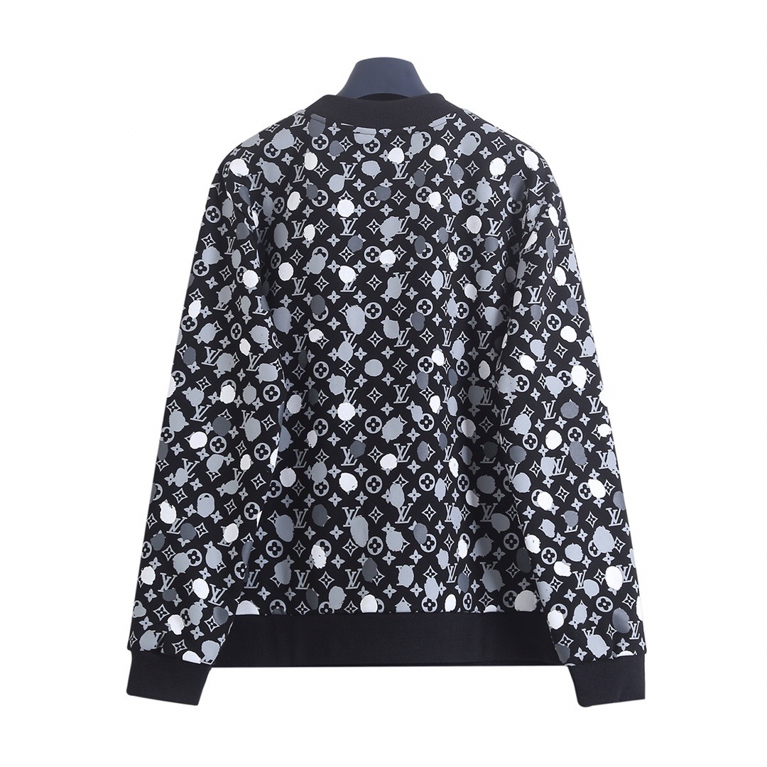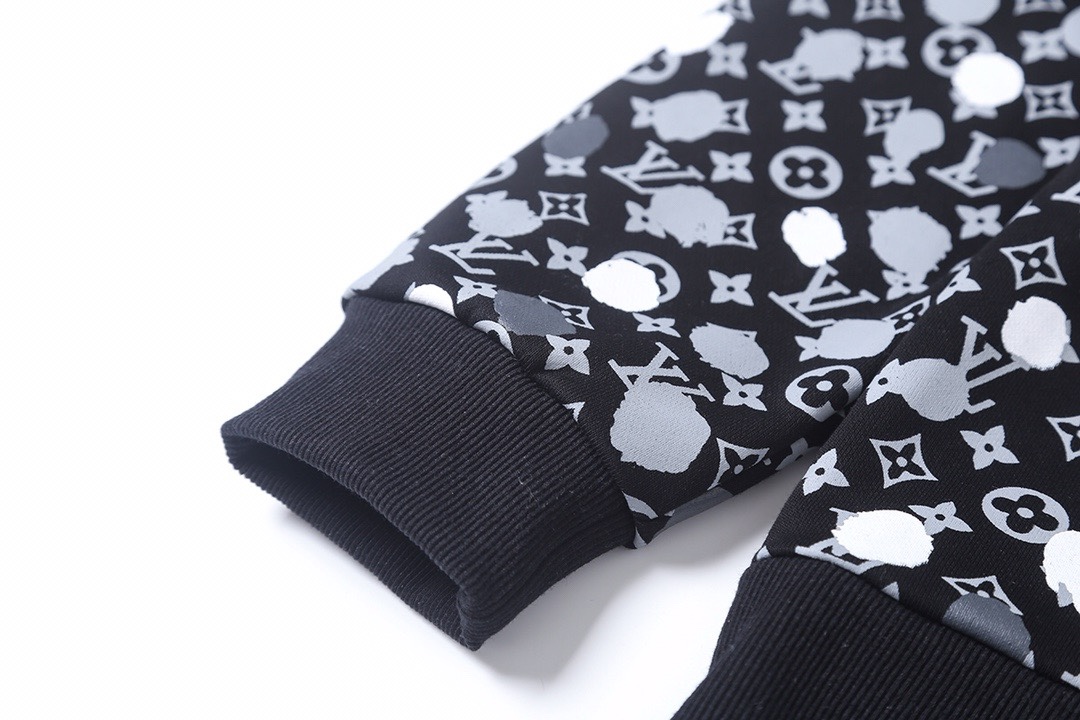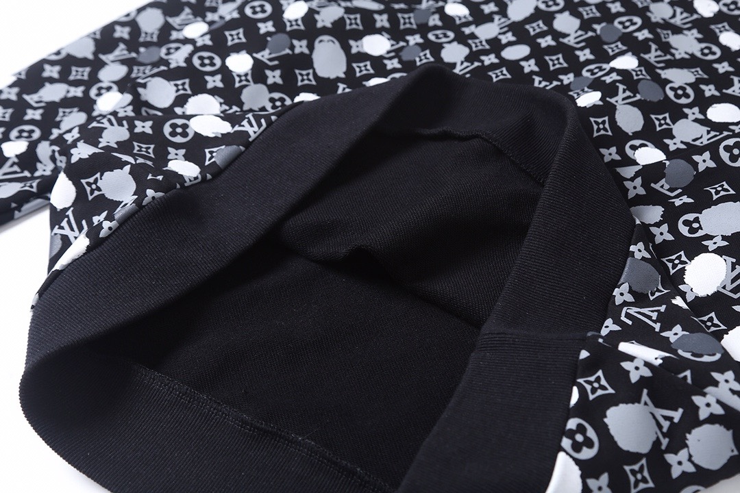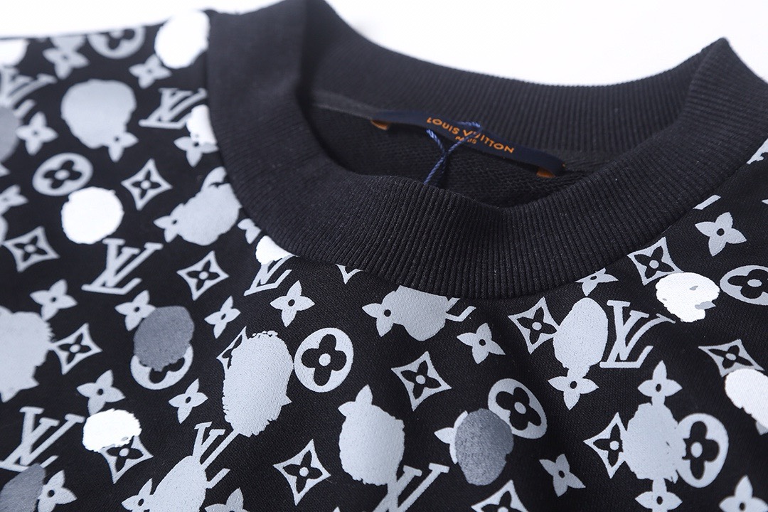 Elevate your wardrobe with this statement sweatshirt featuring Louis Vuitton's iconic monogram and Yayoi Kusama's signature dot pattern.