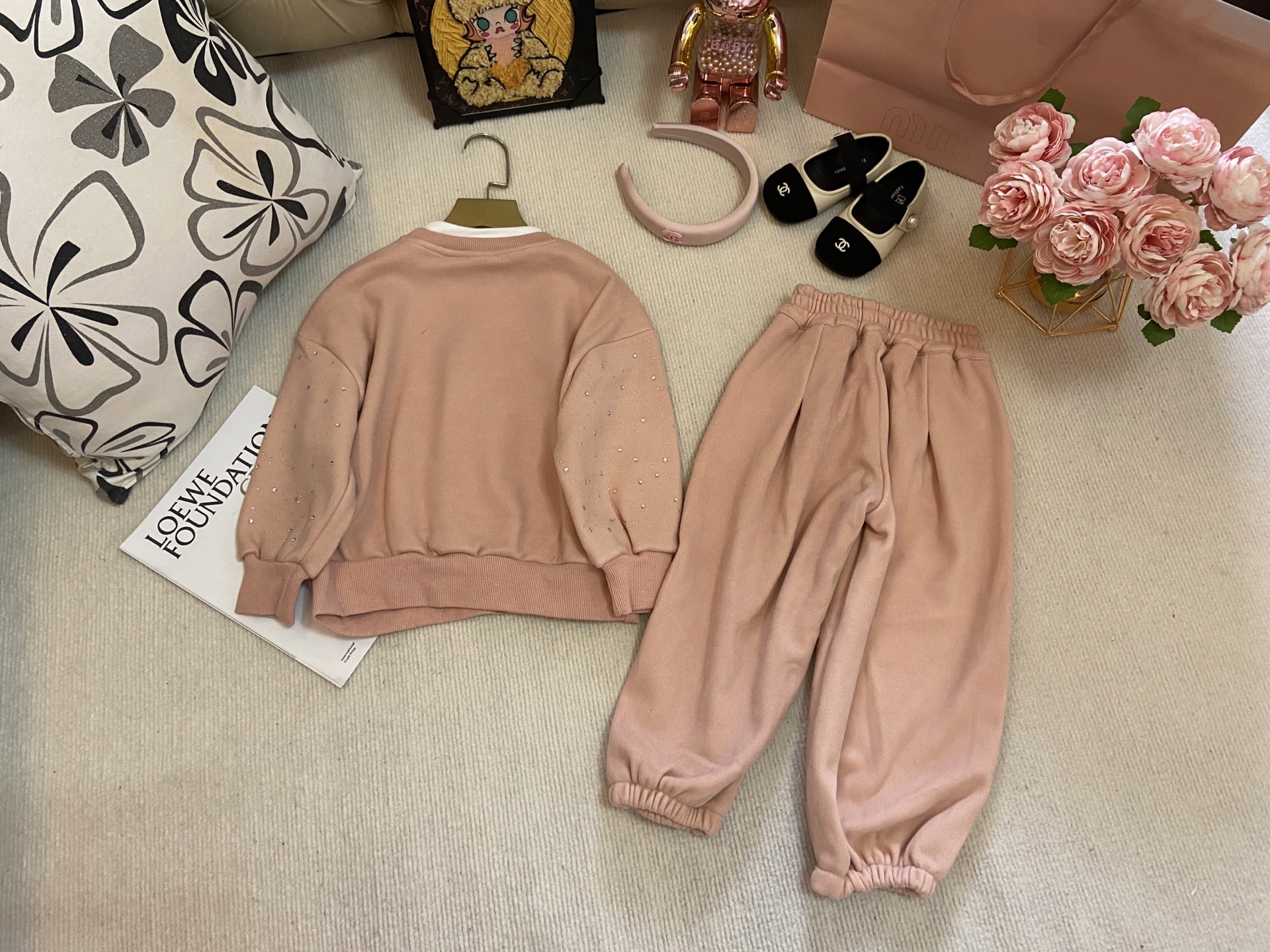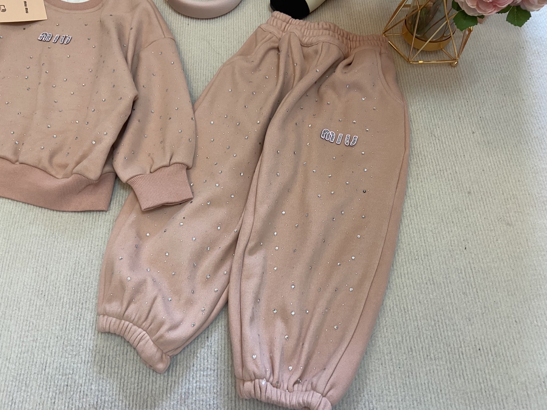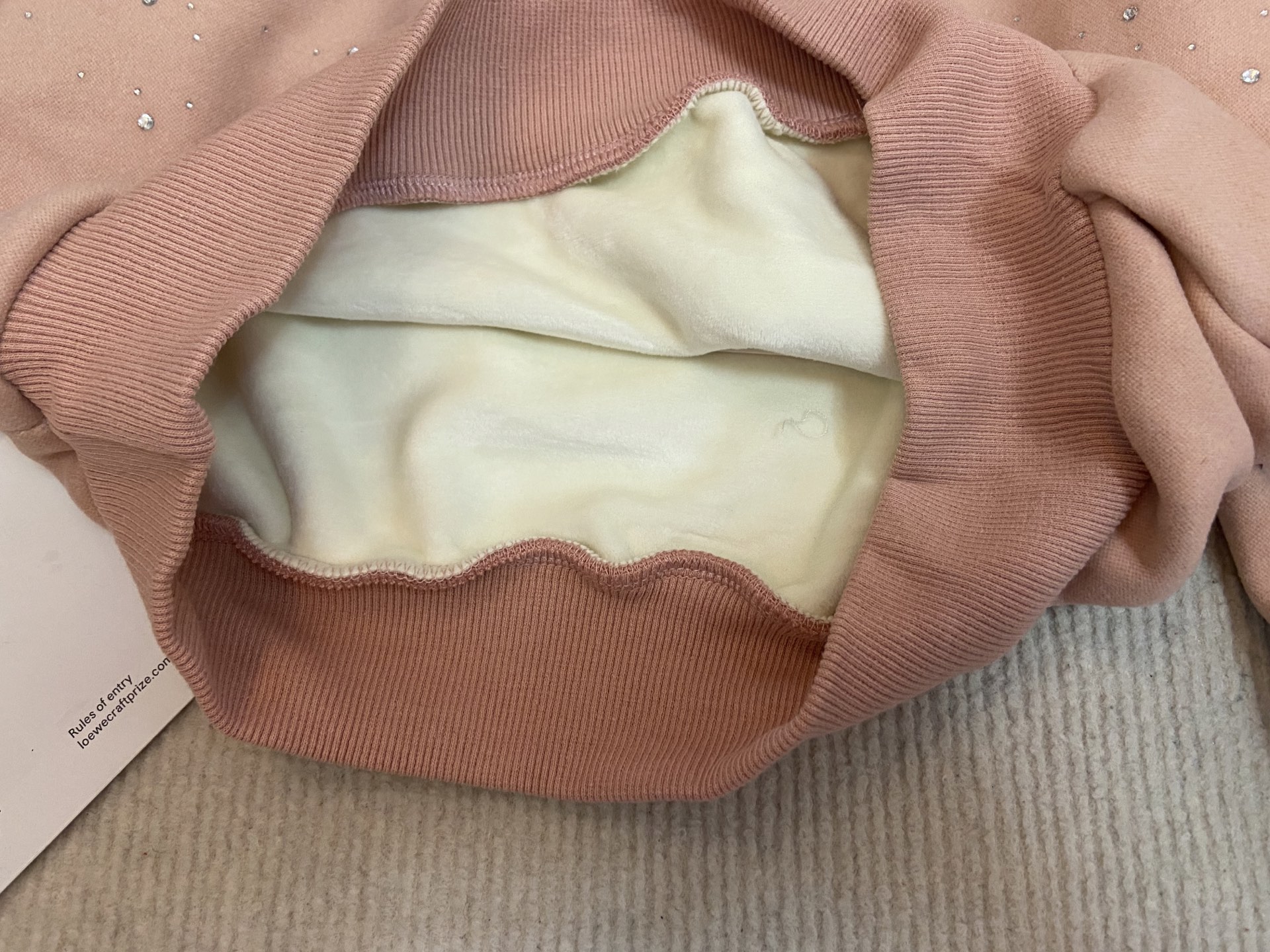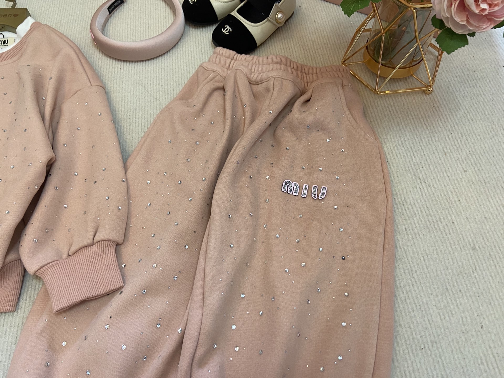 Miu Miu Inspired Rhinestone Embellished Fleece Lined Tracksuit Set
