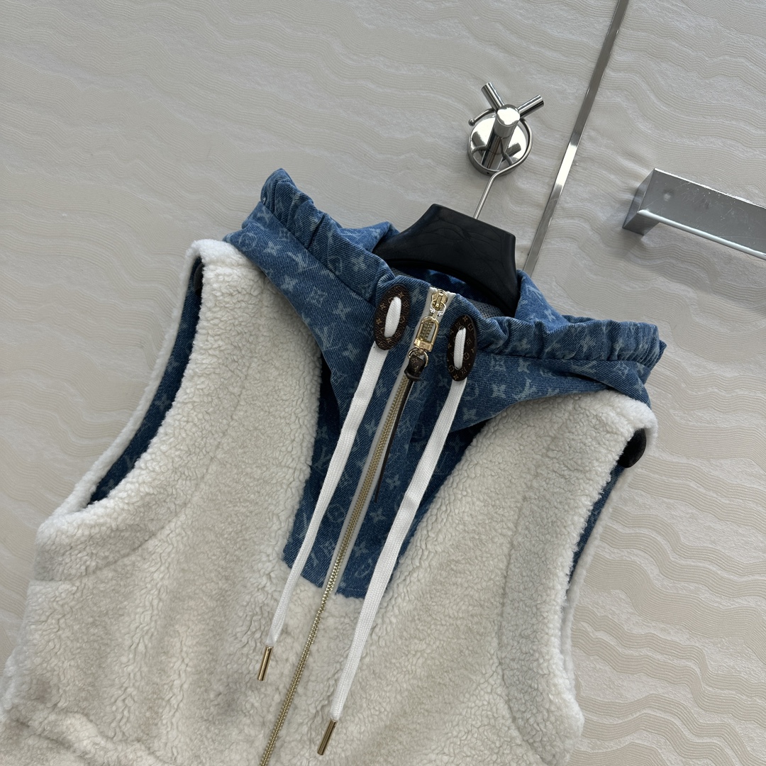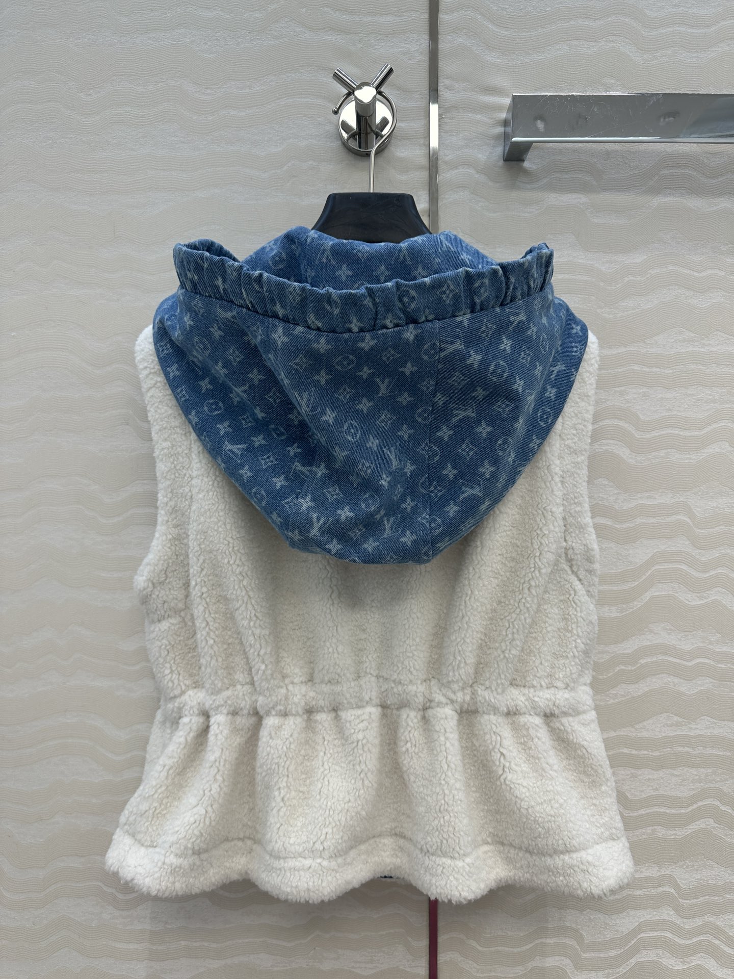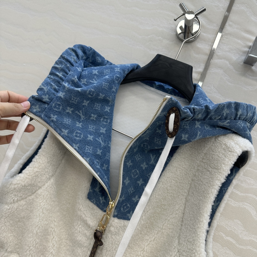 Monogram Teddy Bear Vest, Lamb Wool Hooded Zip-Up Jacket, Denim Patchwork