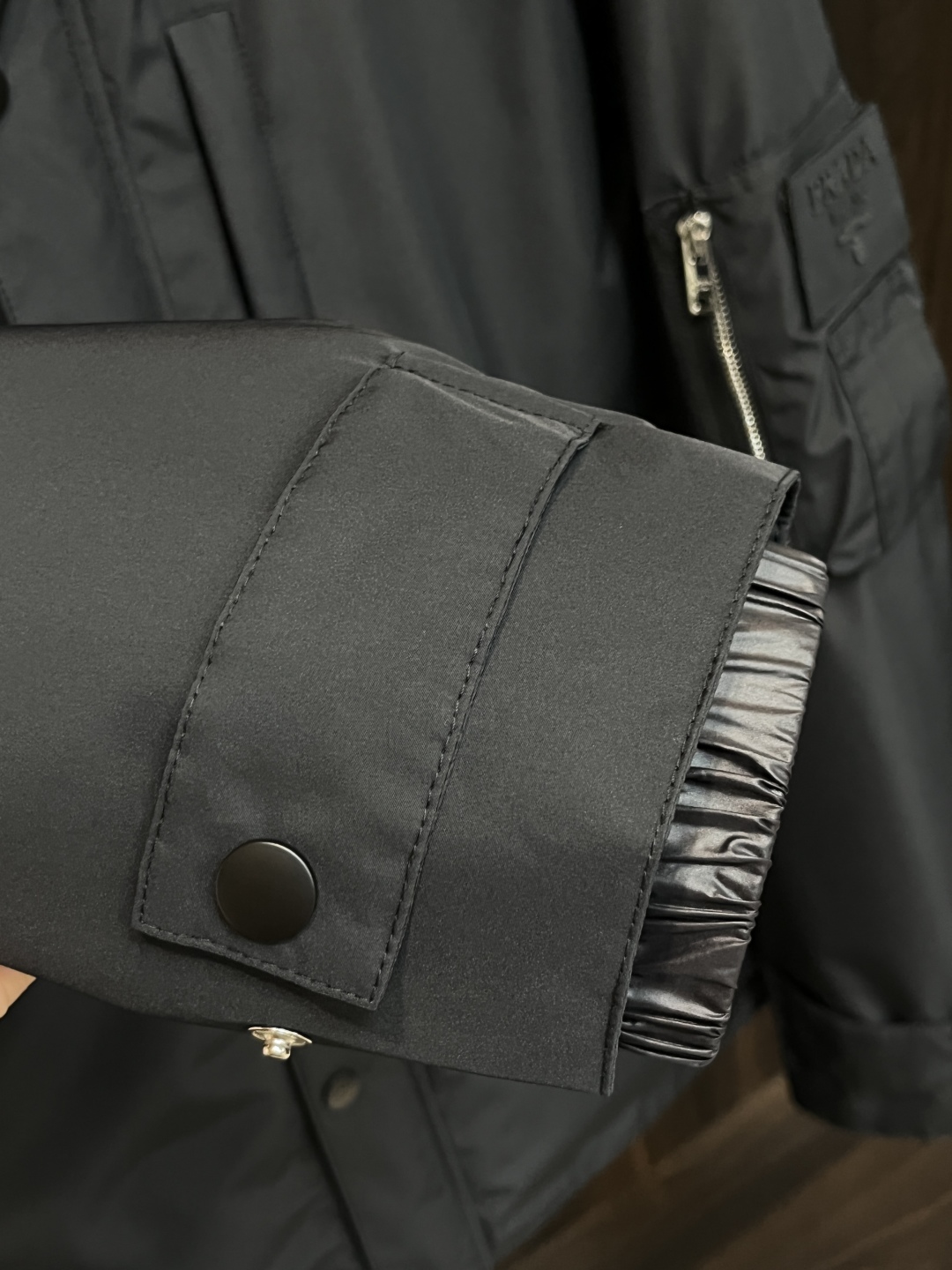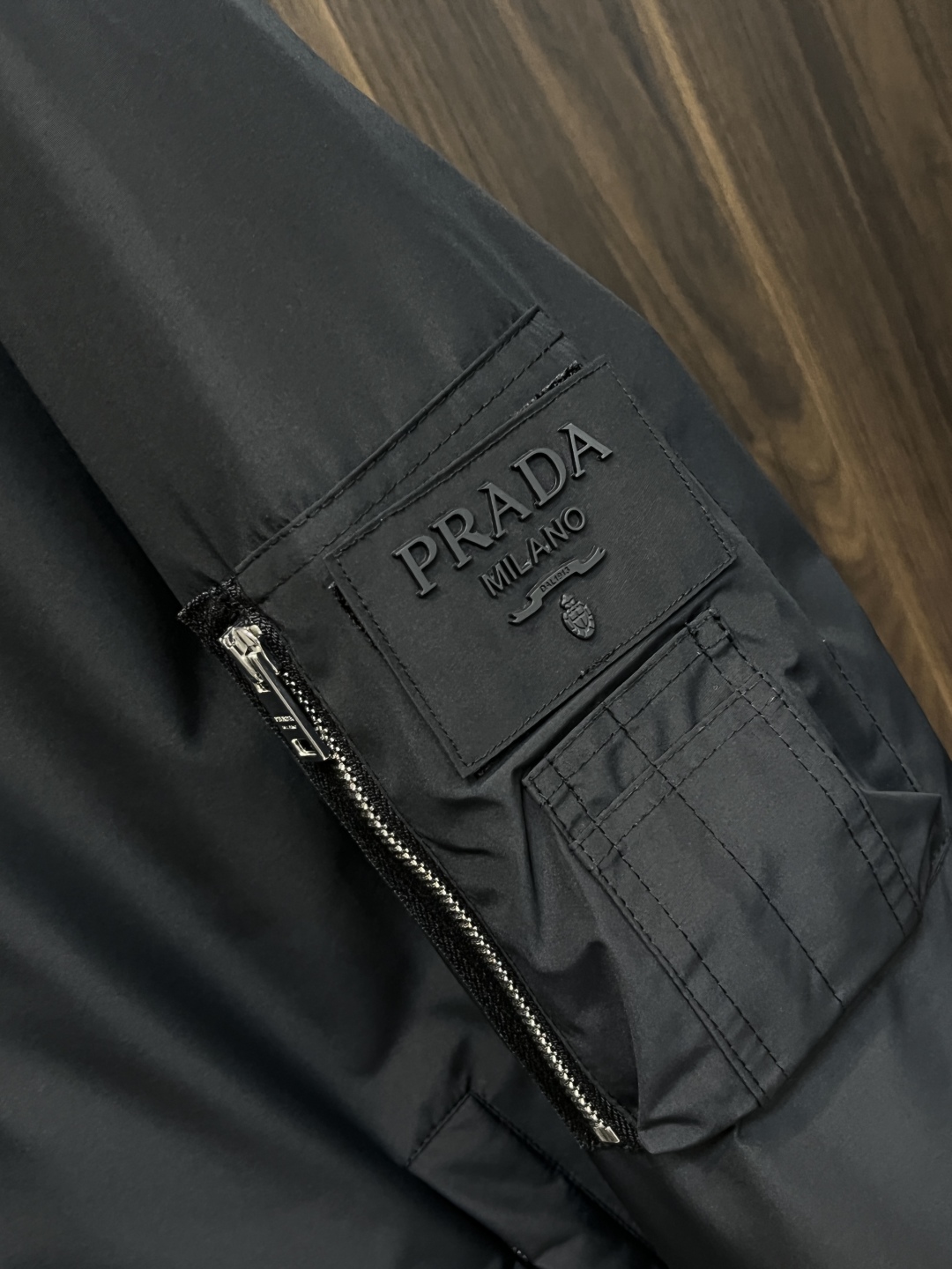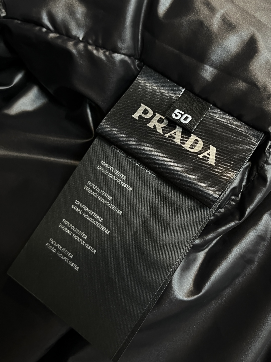 I absolutely love this Prada jacket! The quality is outstanding, and it keeps me so warm without feeling bulky. The logo detail is subtle yet classy.