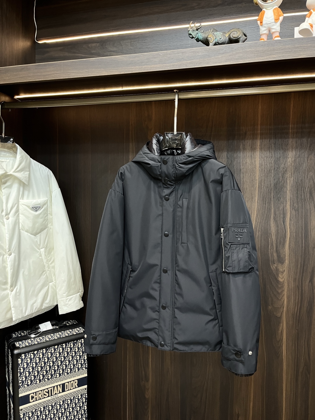 Prada 2025 Designer Hooded Down Jacket - Windproof Fabric, Goose Down Fill
