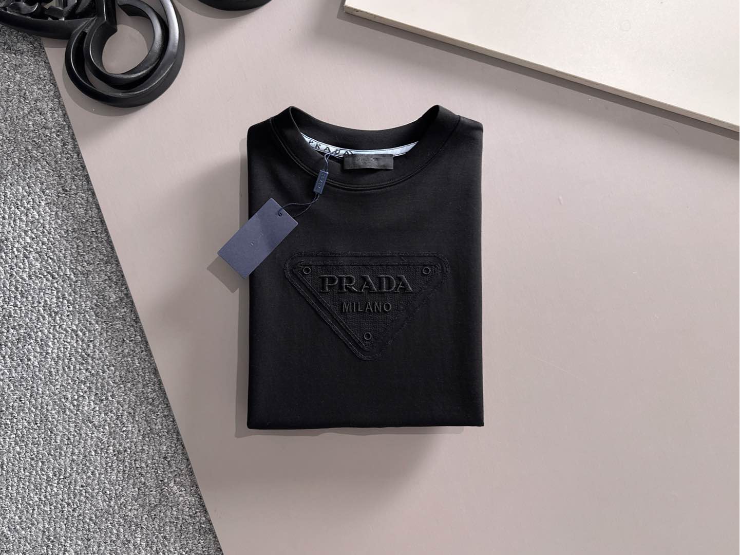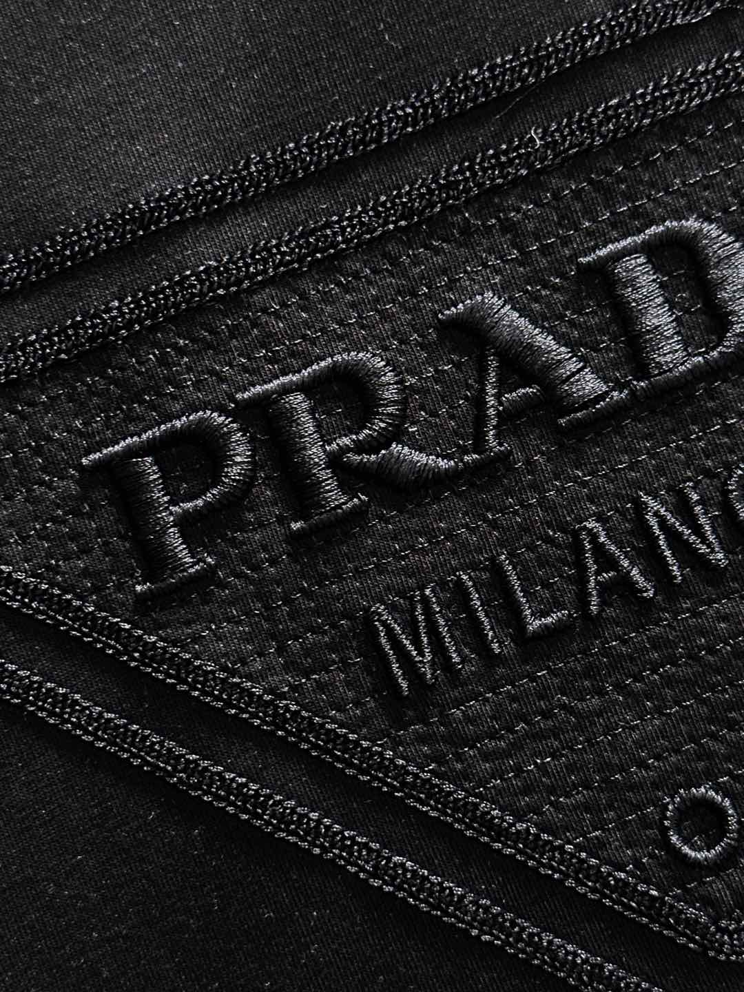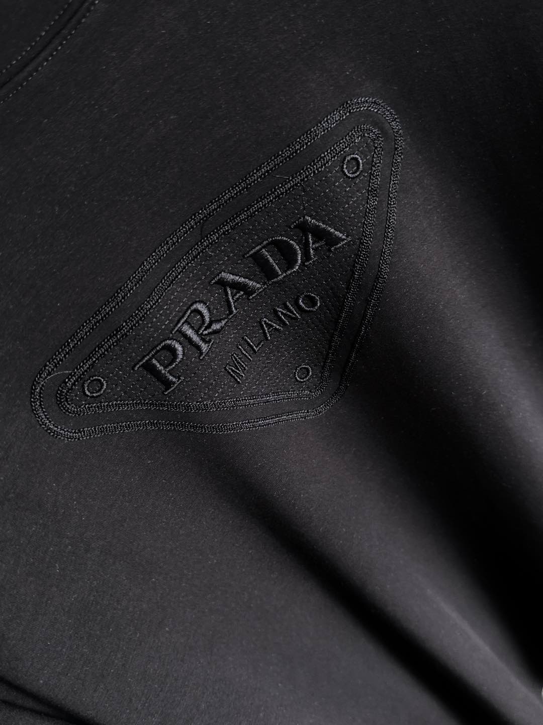 Prada Men's Black Long Sleeve T-Shirt with Embossed Logo - Casual Luxury