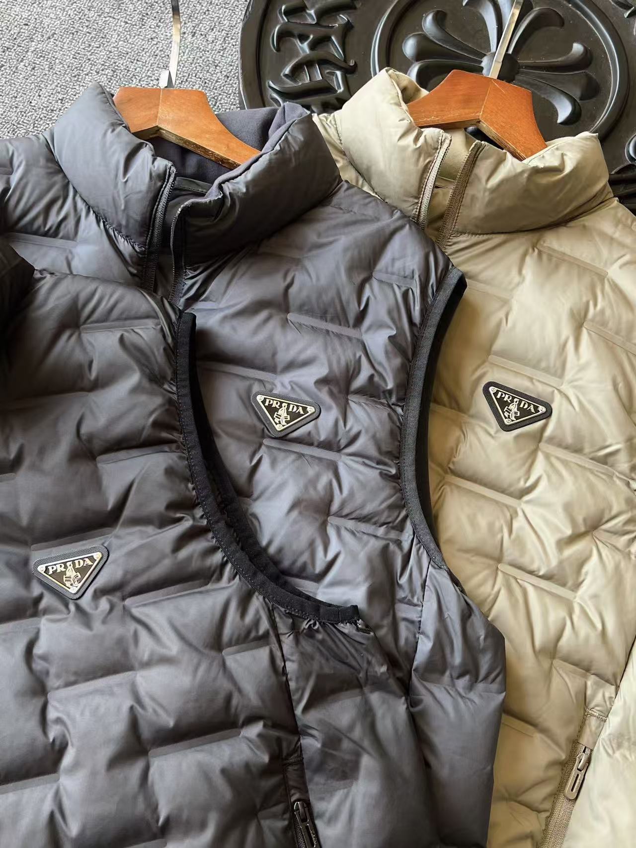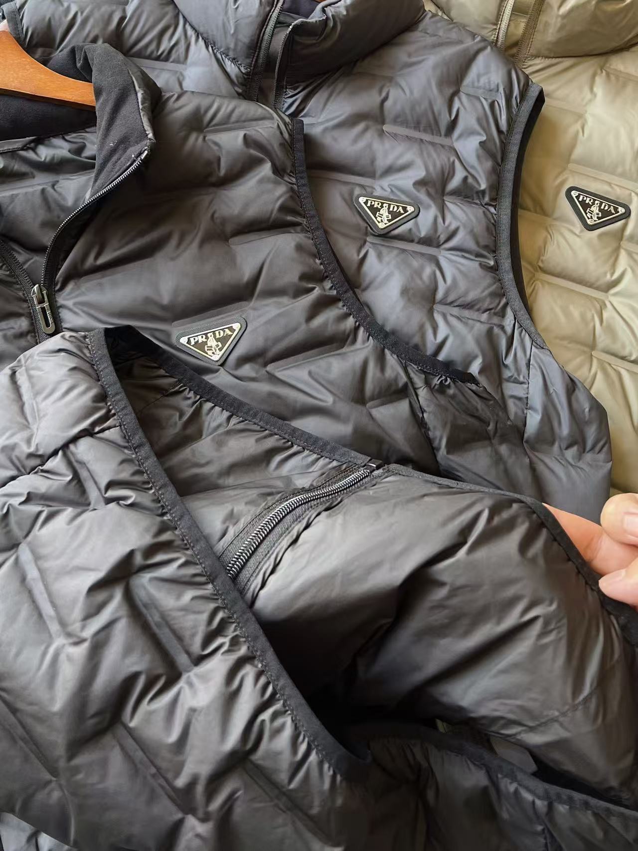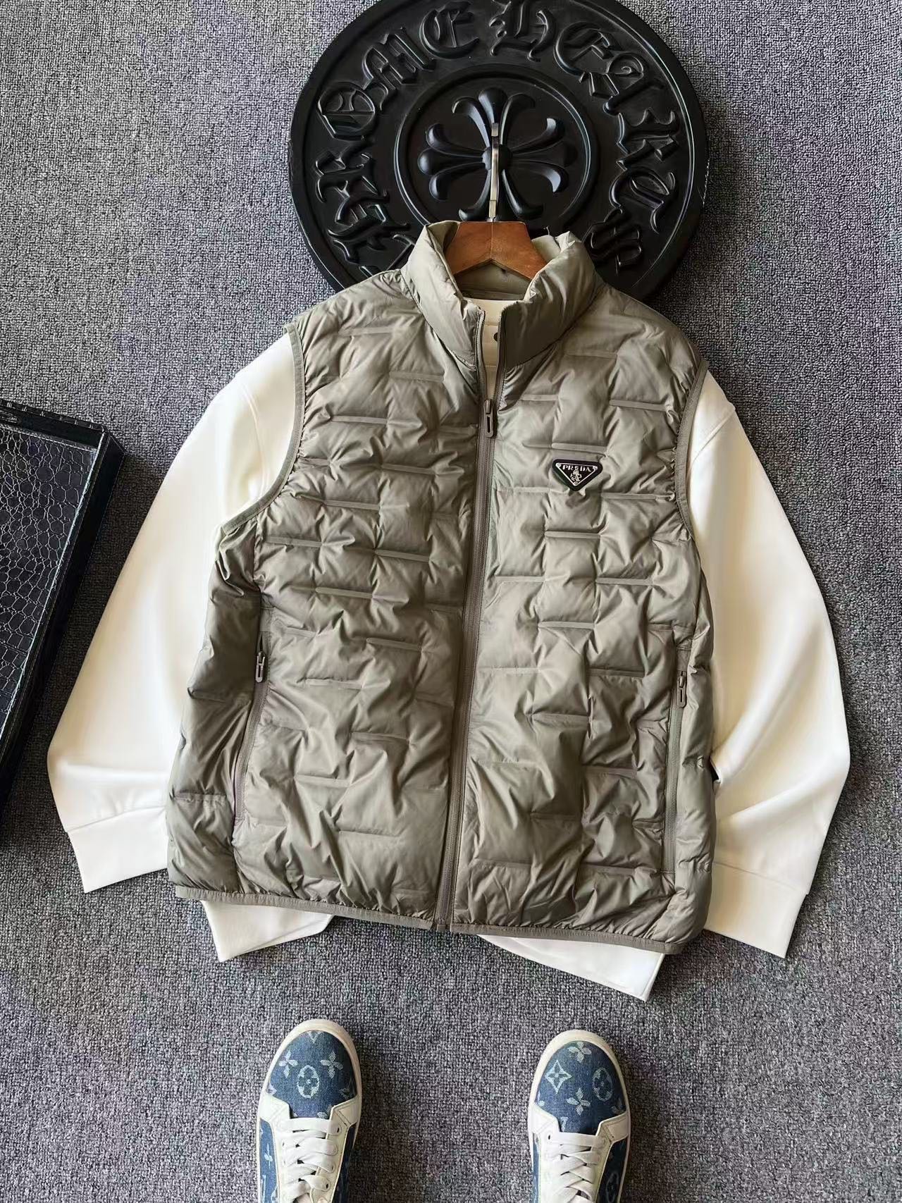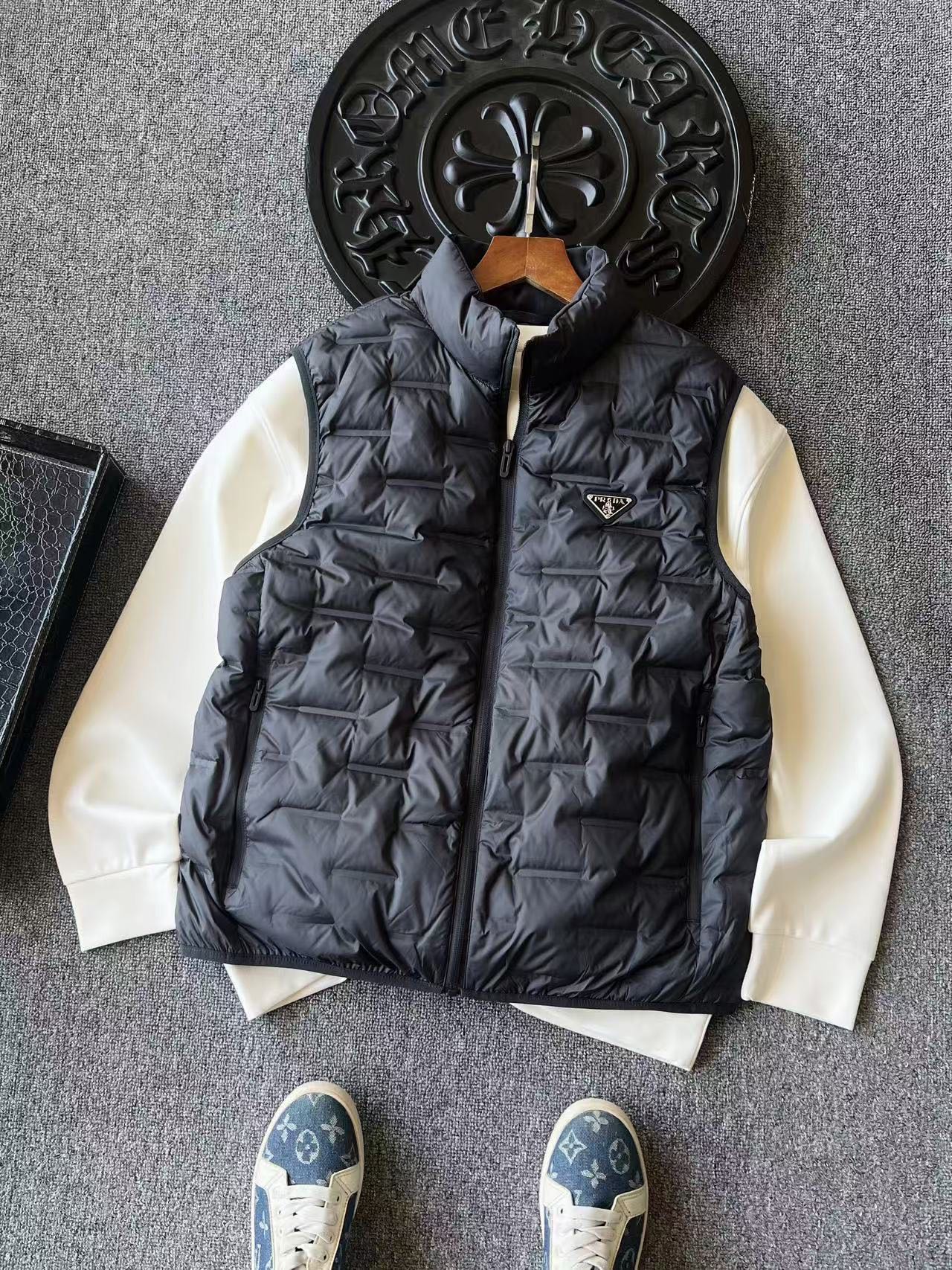 I absolutely love this vest! It's so warm and comfortable, and the Prada logo adds a touch of luxury. I wear it all the time!