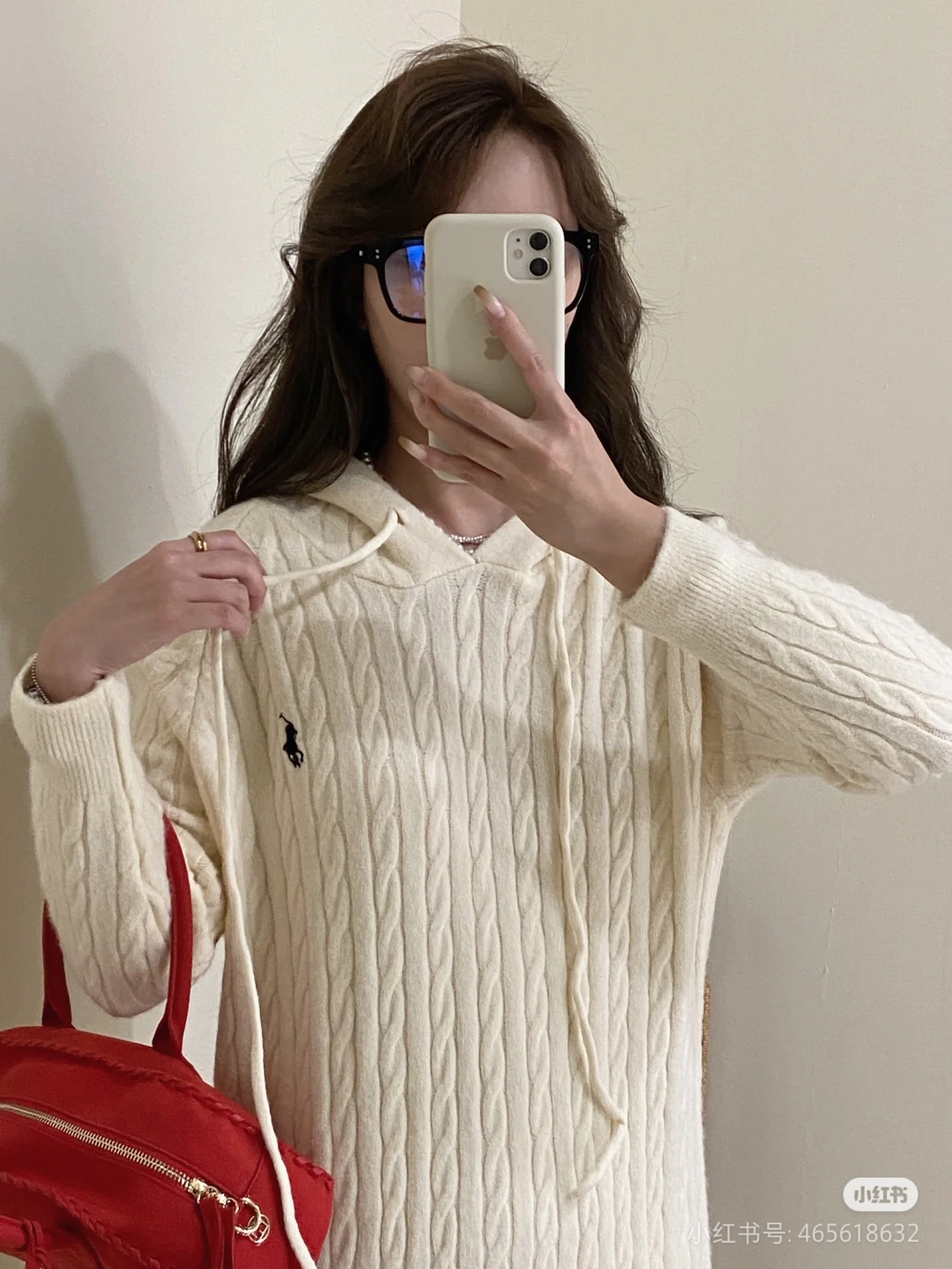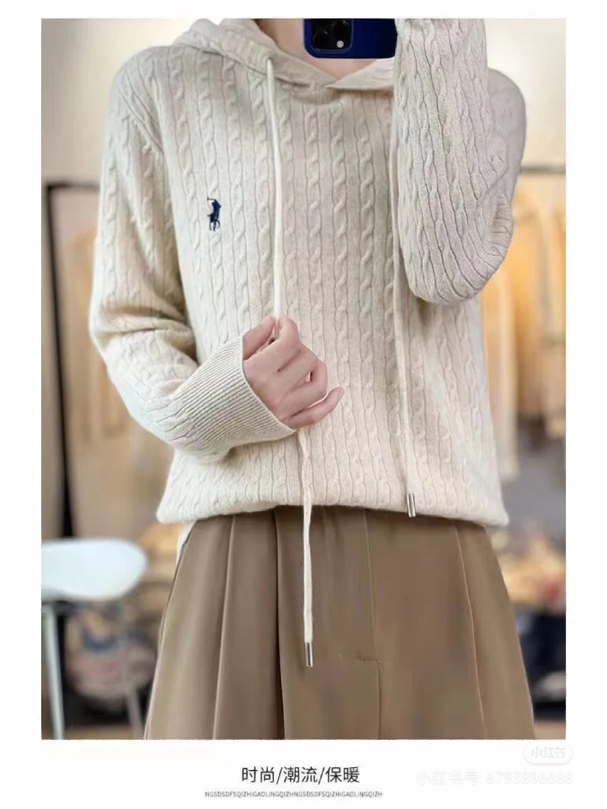 Ralph Lauren Cable-Knit Cotton Hoodie, Embroidered Logo, Casual Style
