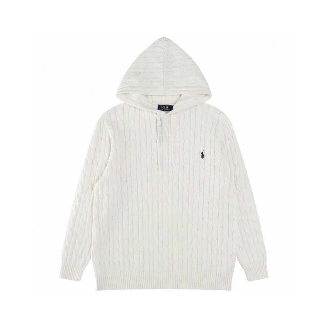 Ralph Lauren Classic Cable-Knit Cotton Hooded Sweater with Pony Logo