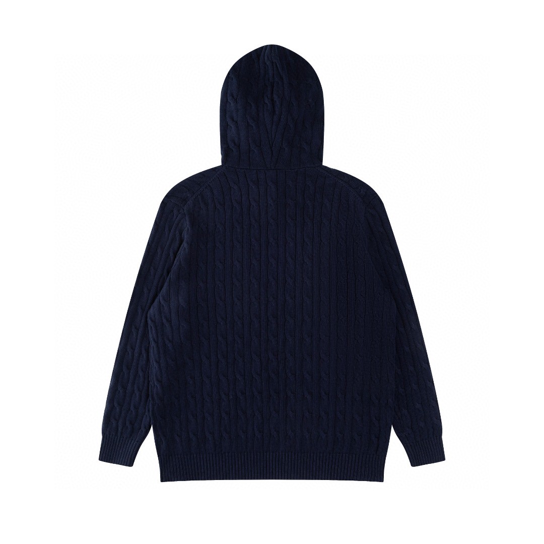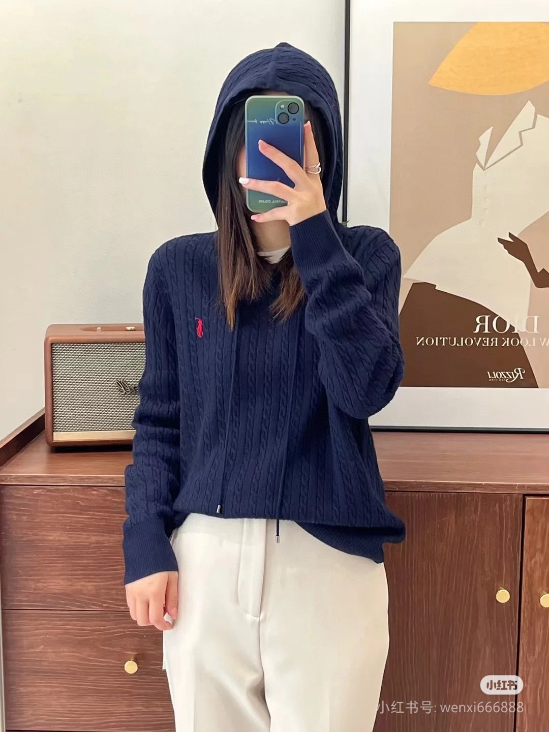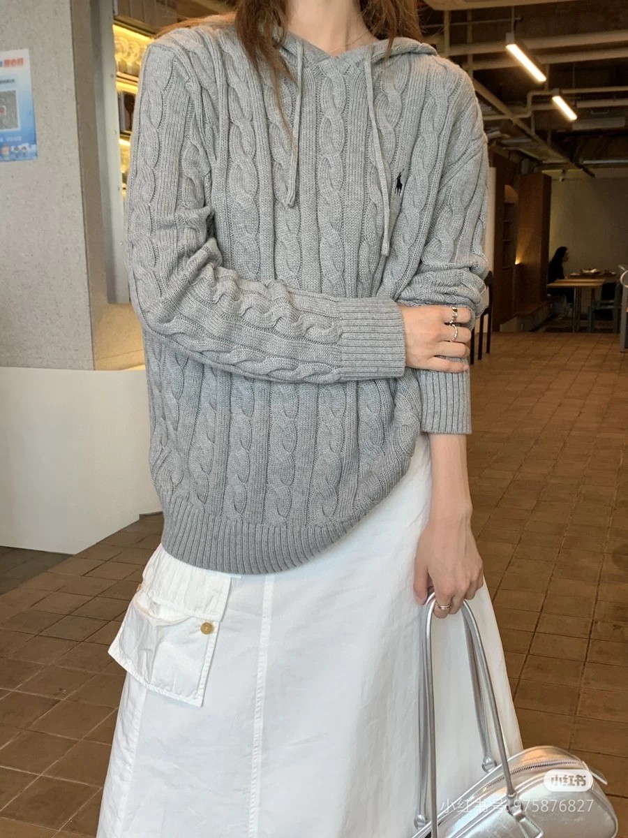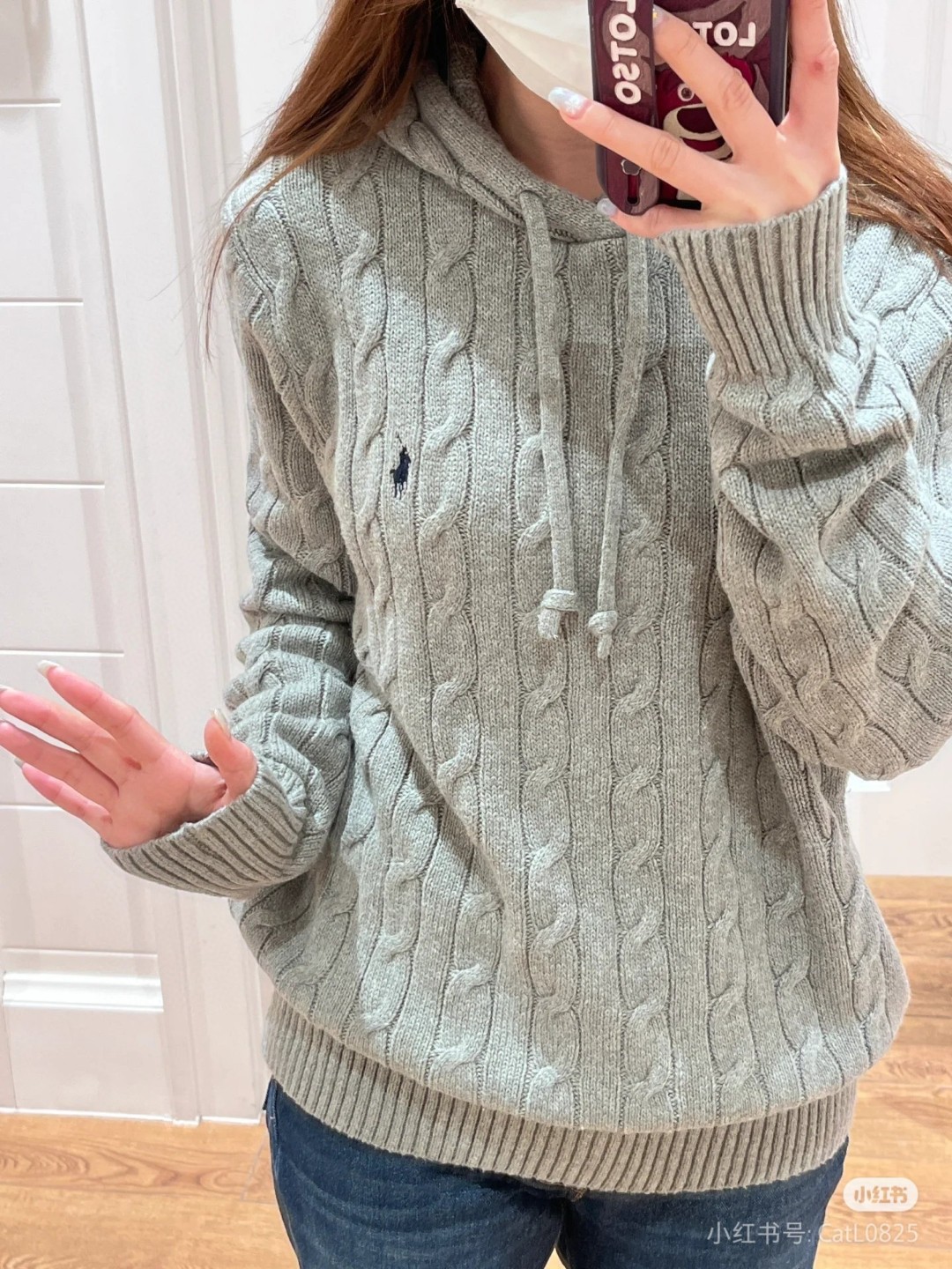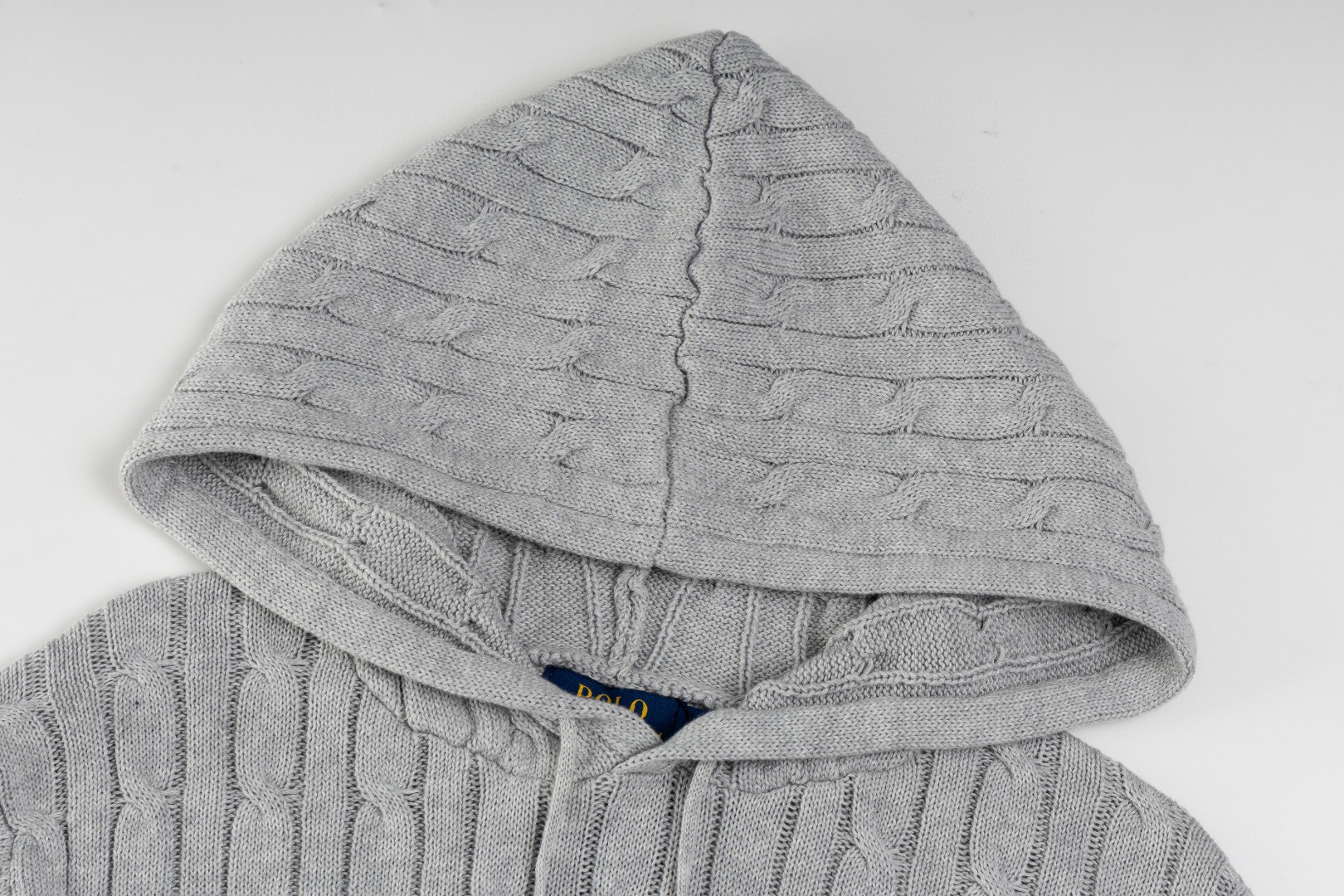This Ralph Lauren cable-knit cotton hooded sweater is a timeless piece that combines comfort and style. Perfect for layering or wearing on its own, this sweater will keep you warm and looking great all season long.