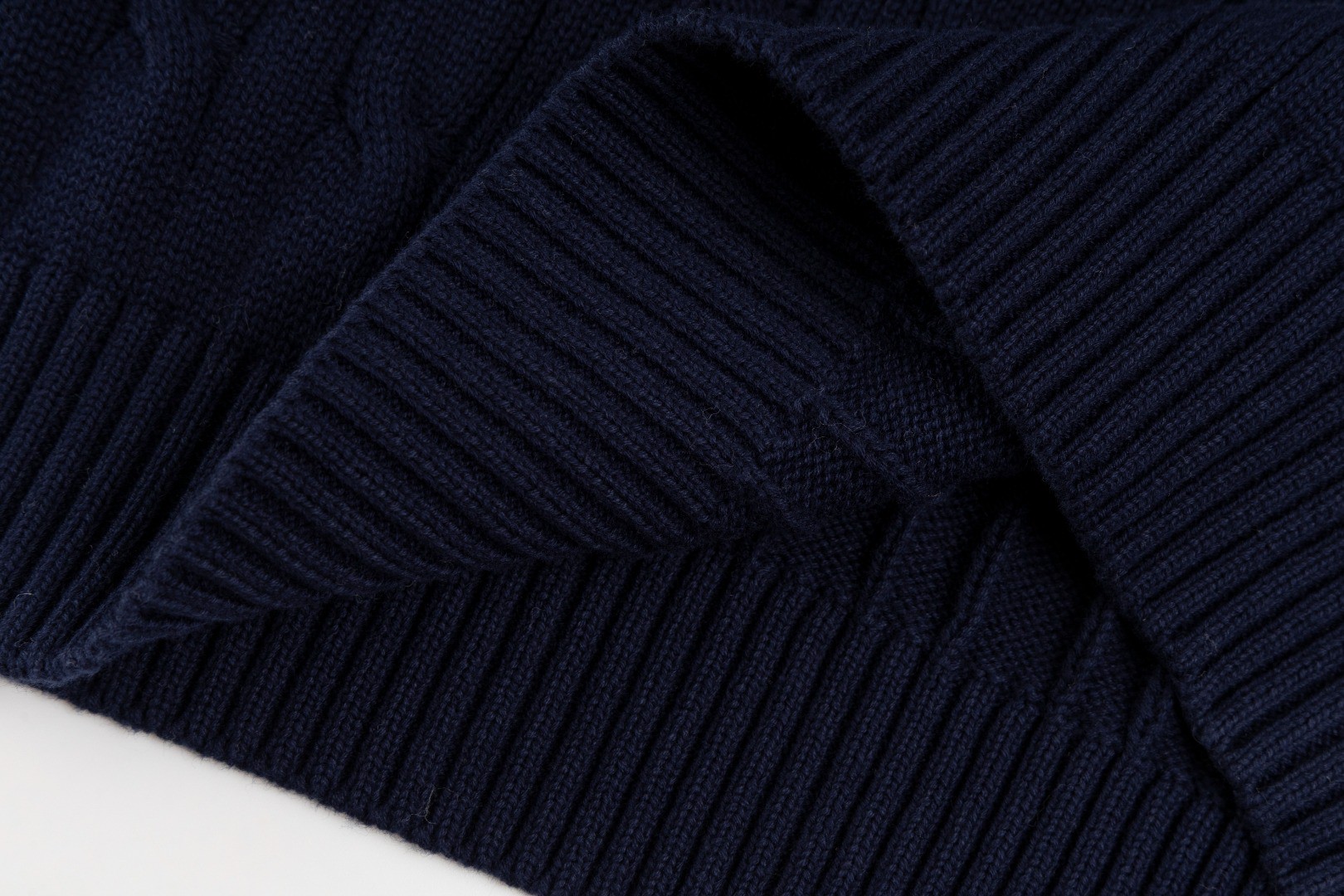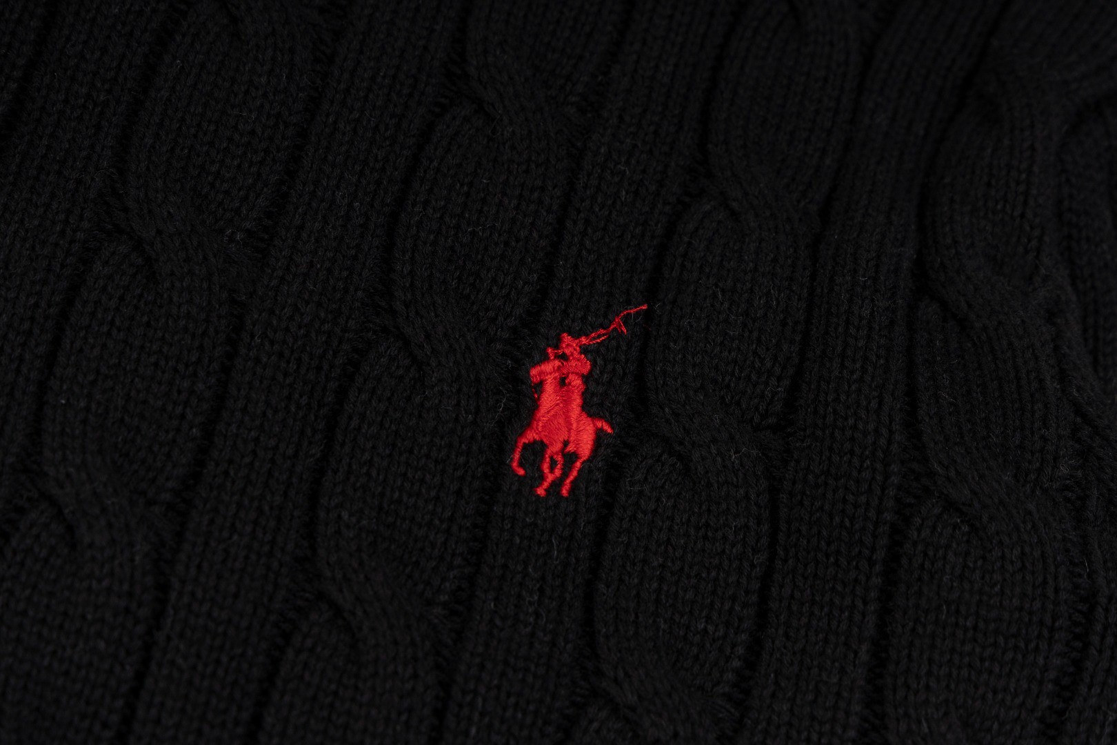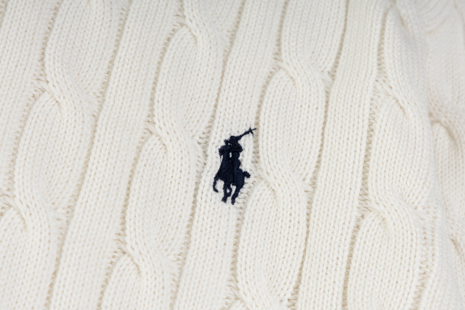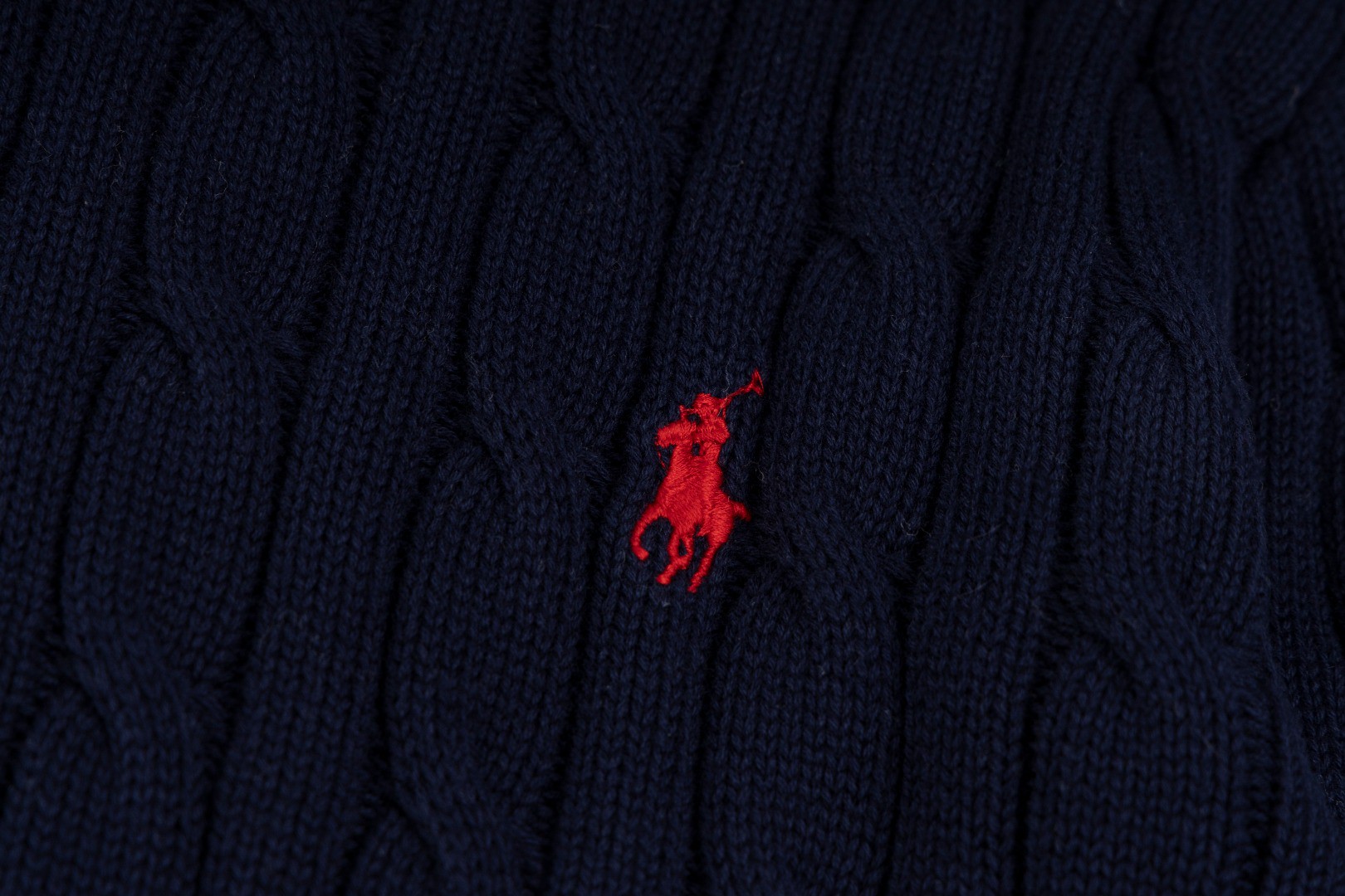 I love this sweater! It's so comfortable and the cable-knit design is really classic. The pony logo is a nice touch without being too flashy.