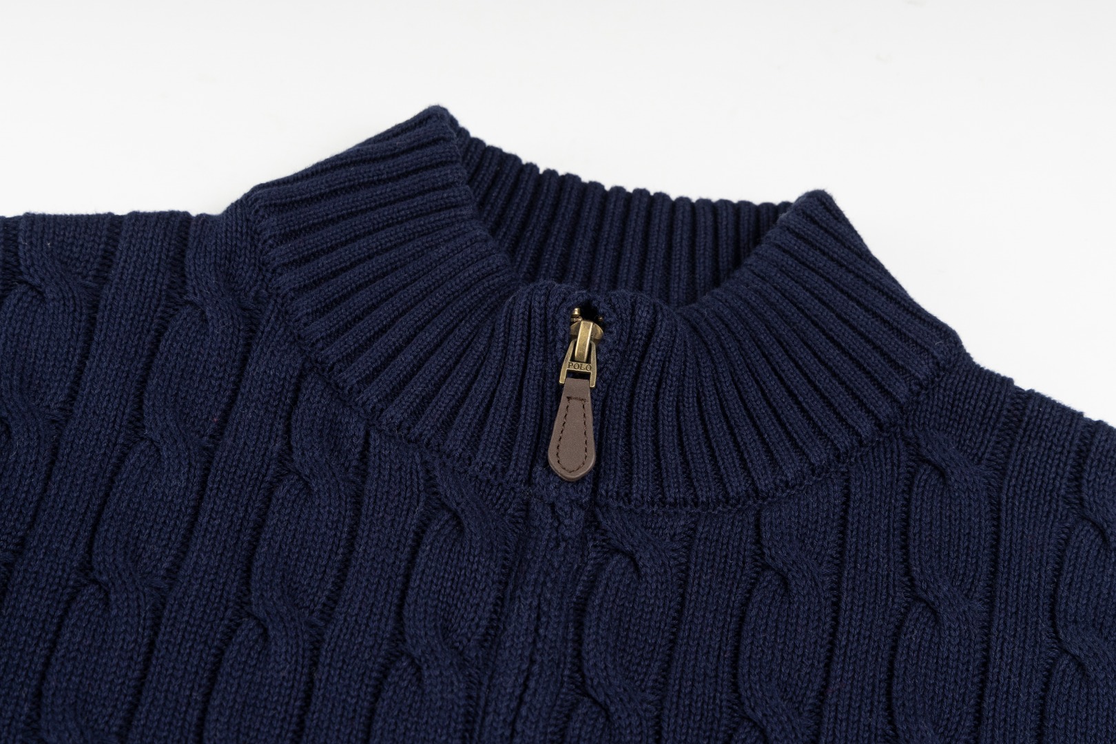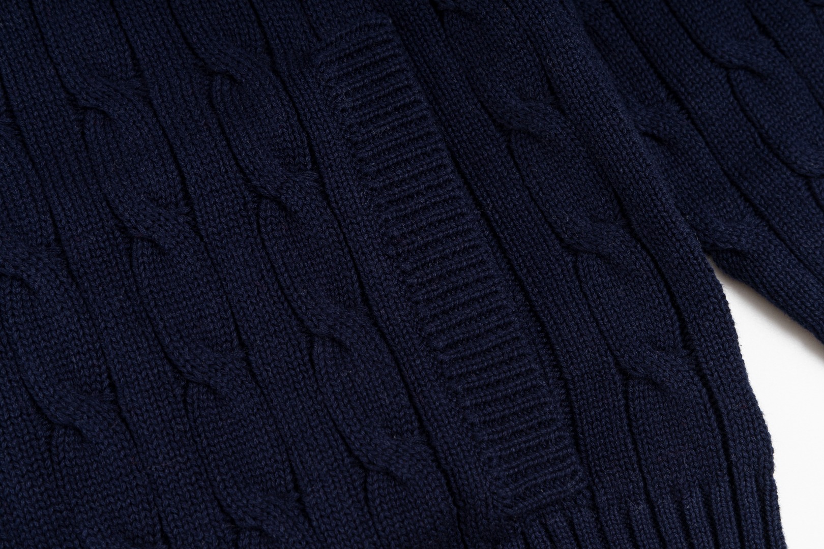 Elevate your wardrobe with the iconic Ralph Lauren Full-Zip Cable-Knit Cardigan Sweater. This timeless piece combines classic design with premium comfort.