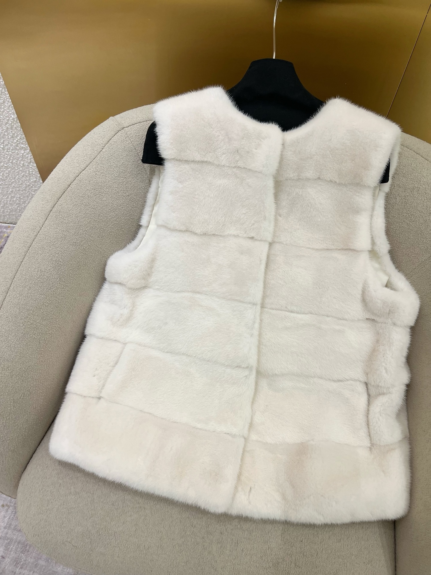 This vest is even more beautiful in person. The quality of the mink fur is outstanding, and the horizontal design is very chic. I get compliments every time I wear it. The fit is perfect, and it's so comfortable to wear.