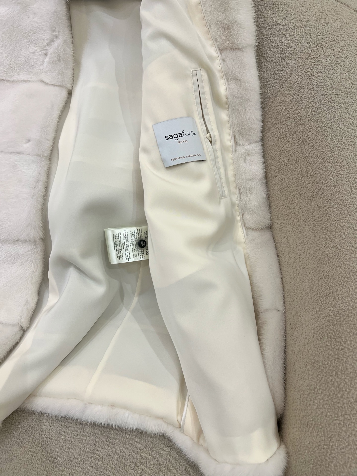 - Luxurious pearl white mink fur