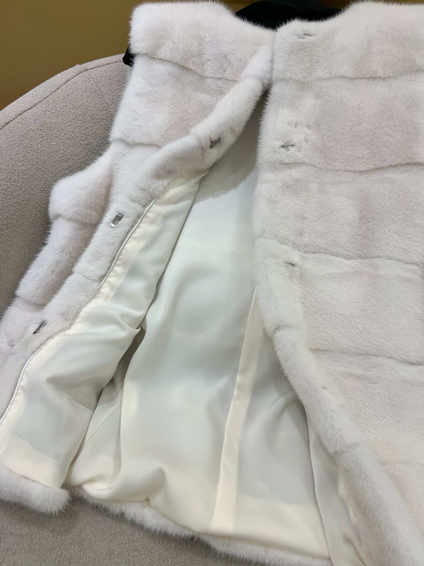 This is the most beautiful vest I have ever owned. The mink fur is so soft, and the pearl white color is stunning. I wear it with everything and get so many compliments. Highly recommend!