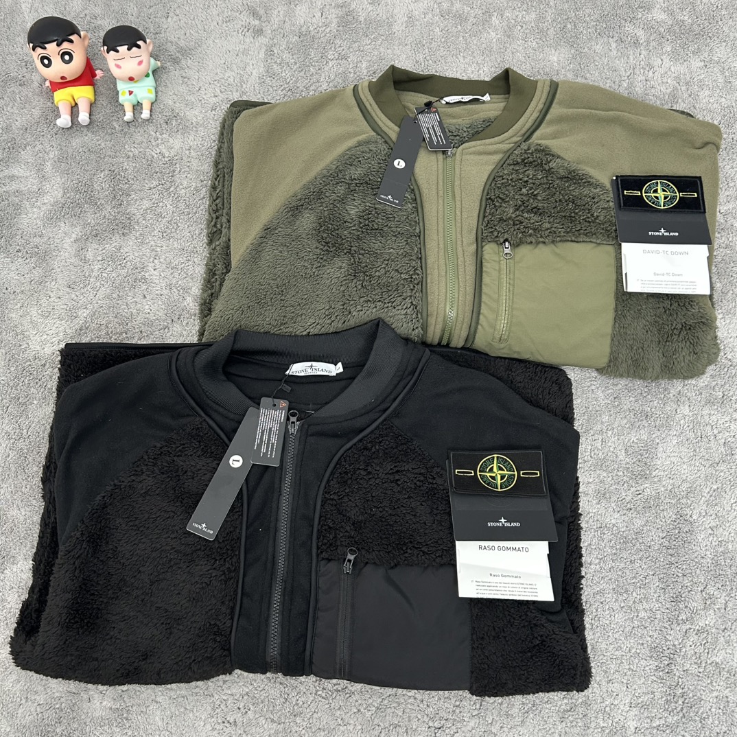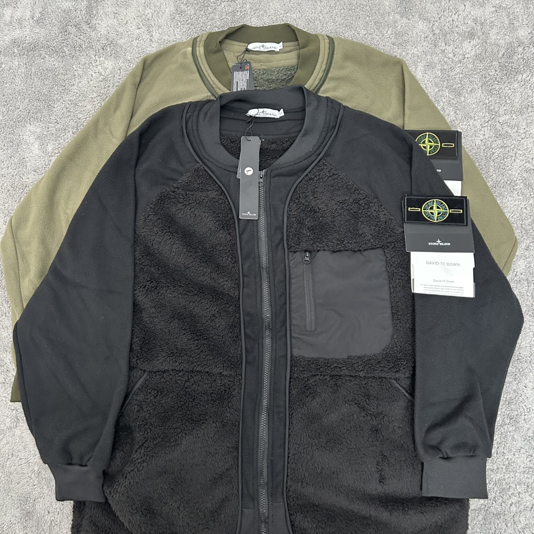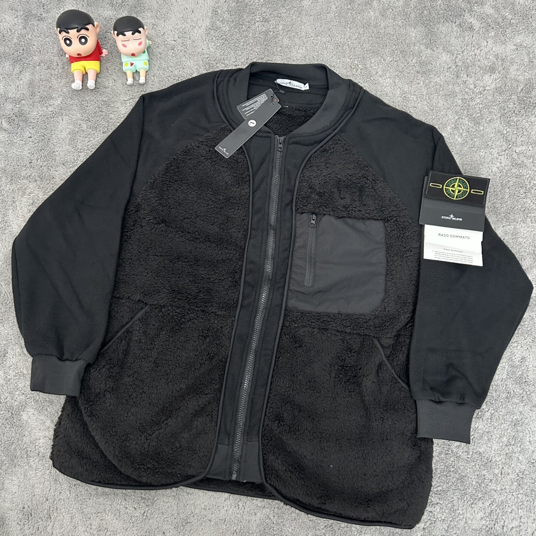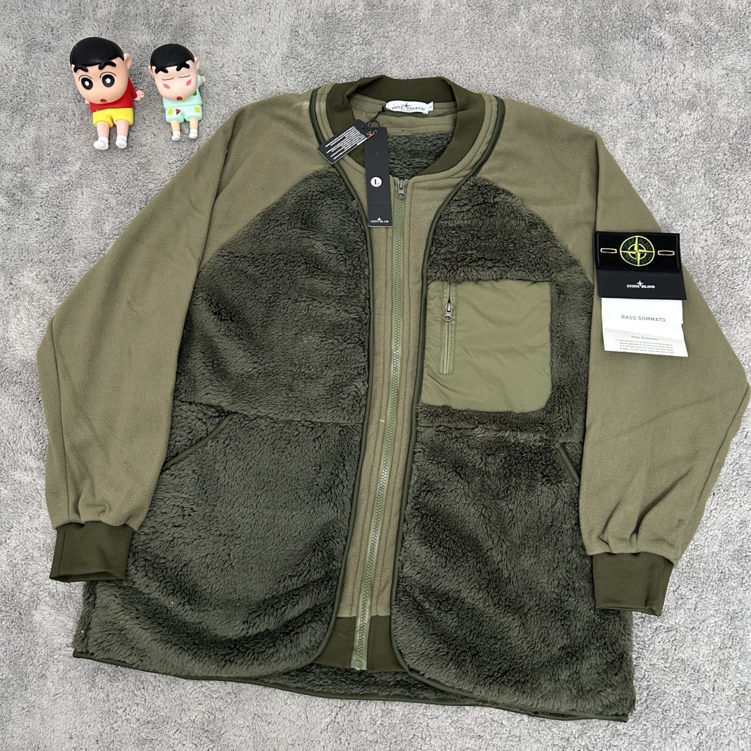 Stone Island Fleece Jacket, Warm Fleece Baseball Collar Jacket Outerwear