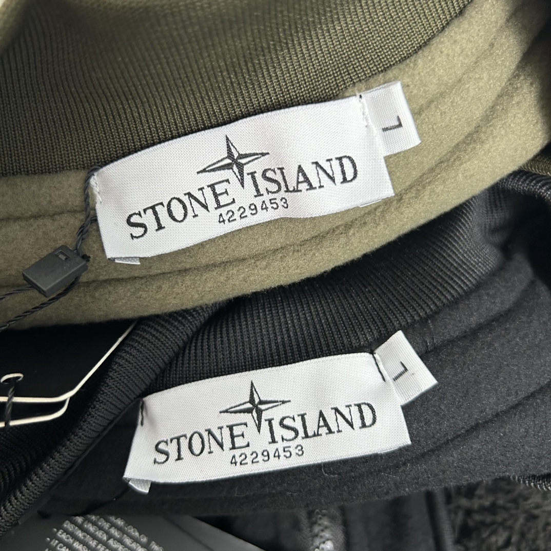 Stay warm and stylish with this Stone Island fleece jacket. Perfect for fall, featuring a baseball collar and functional pockets.