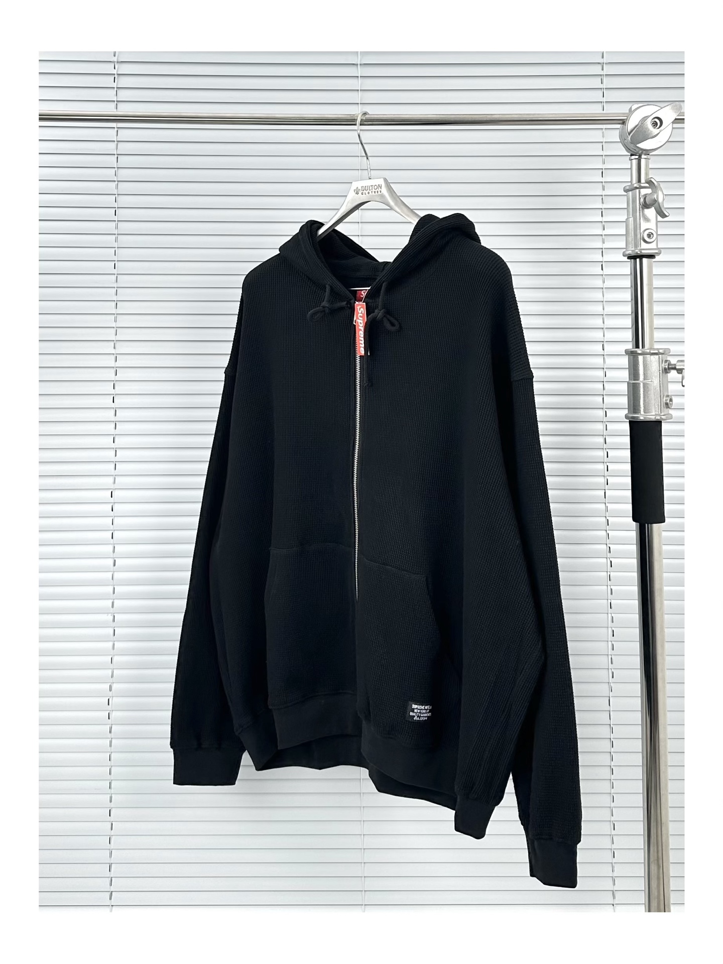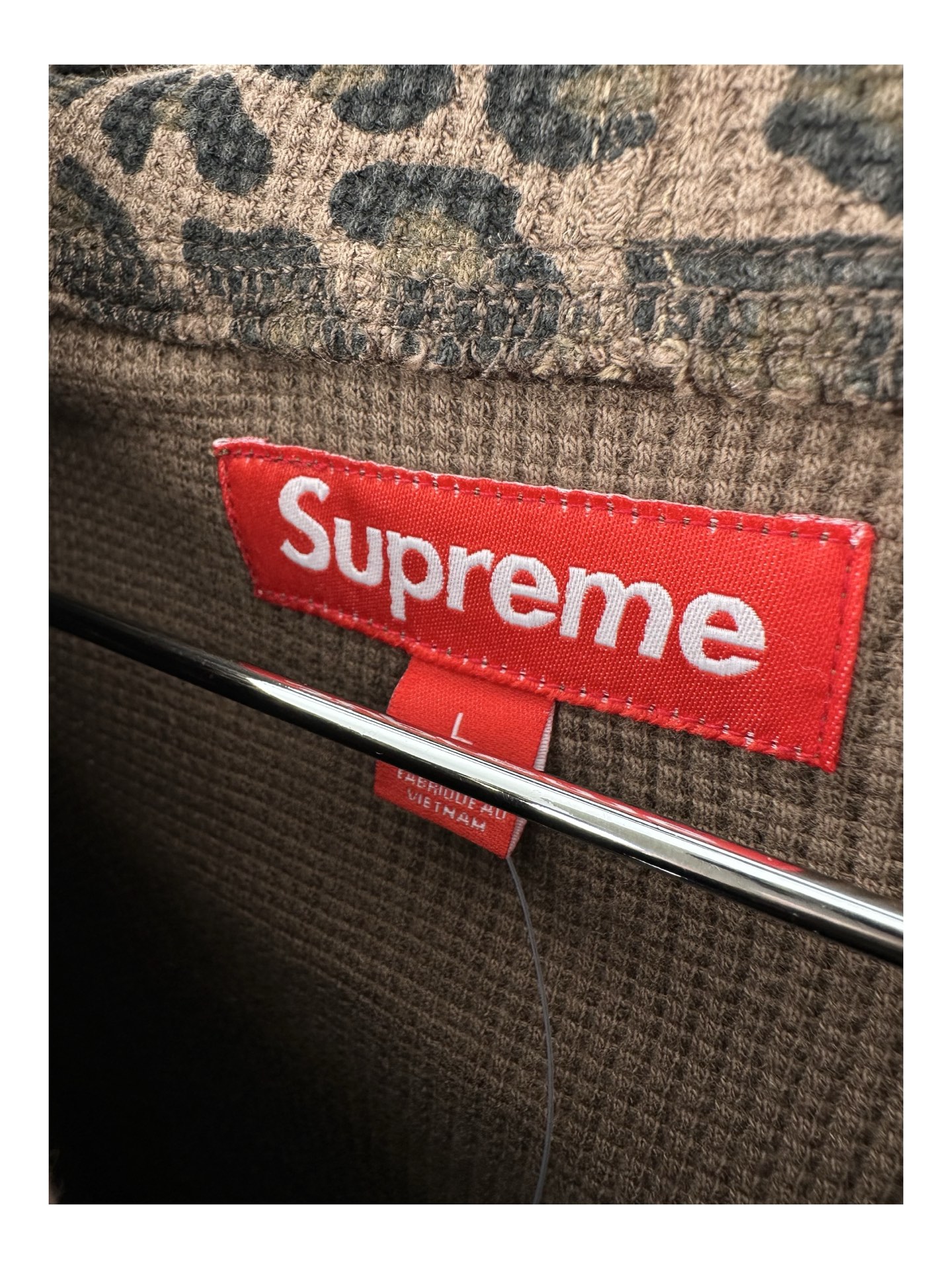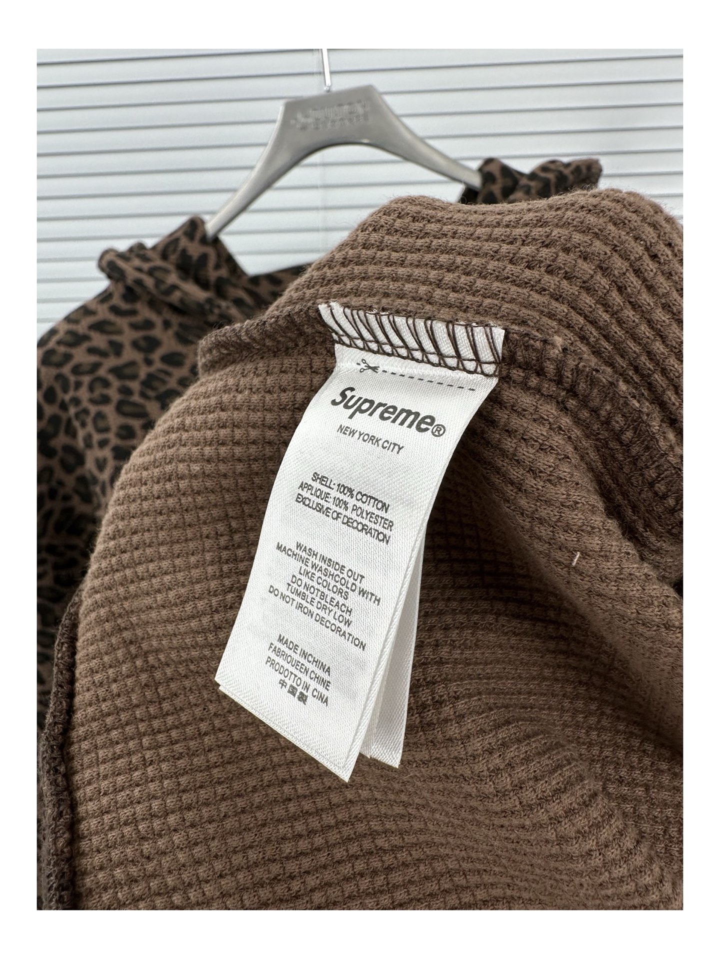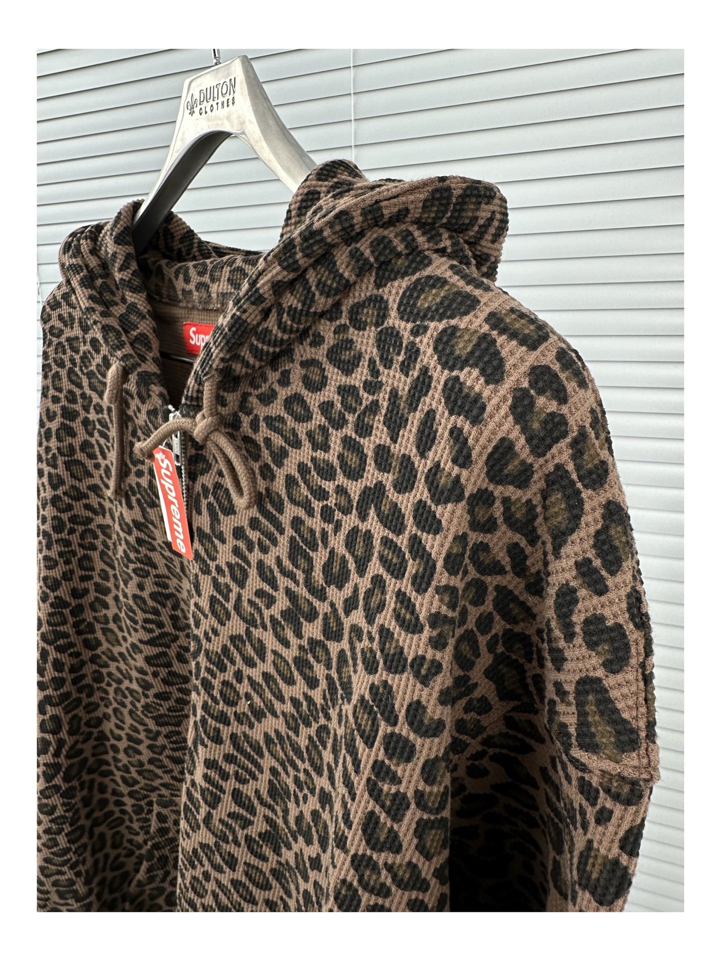 This Supreme SS25 Week16 Leopard Print Waffle Knit Thermal Hooded Zip Up is a standout piece that combines both comfort and style. The unique leopard print ensures you'll turn heads, while the waffle knit provides warmth and texture.