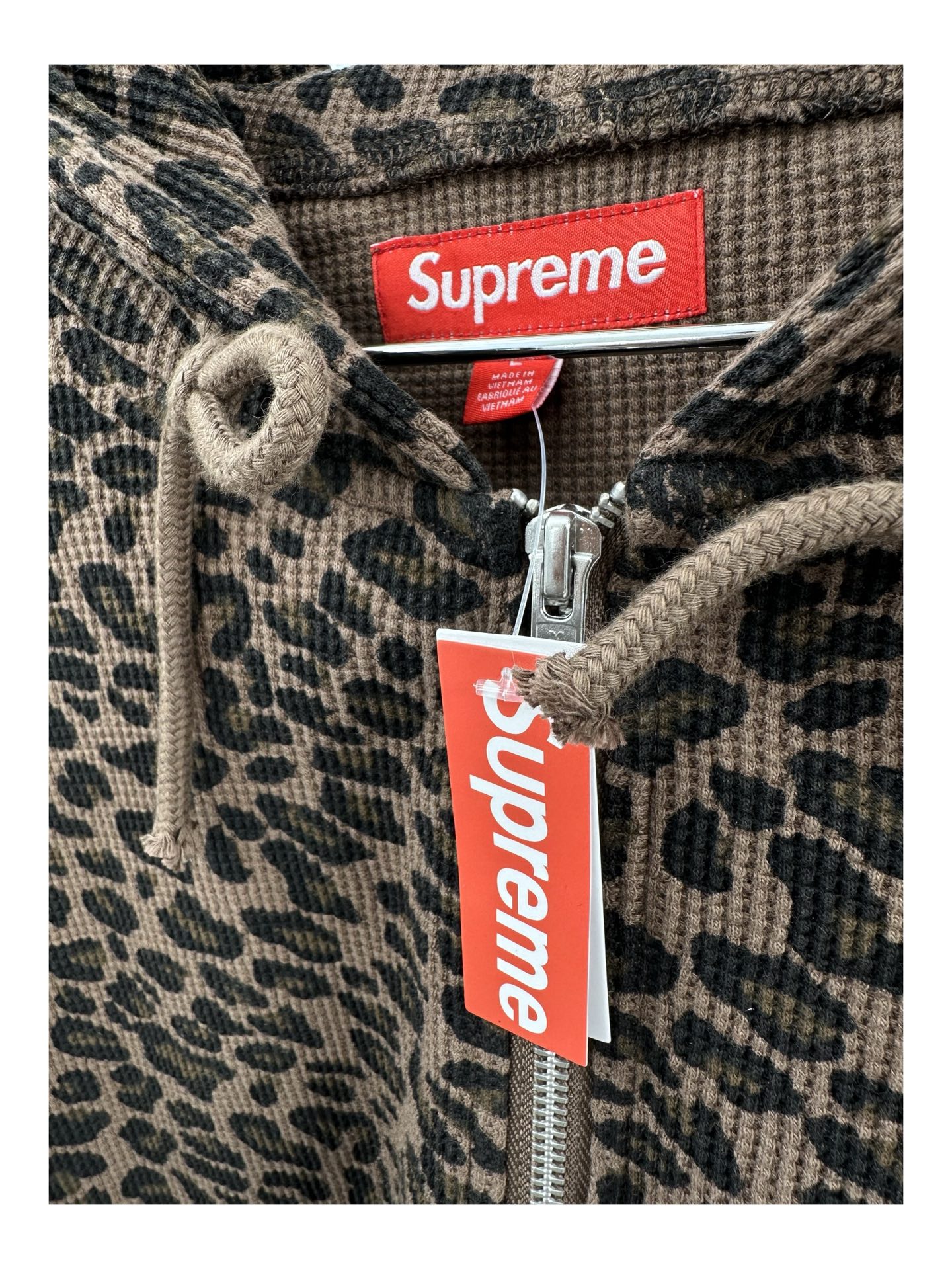 Tags: Leopard Print Outerwear, Streetwear Hoodie, Supreme Leopard Hoodie, Supreme SS25, Thermal Hooded Jacket, Waffle Knit Zip Up