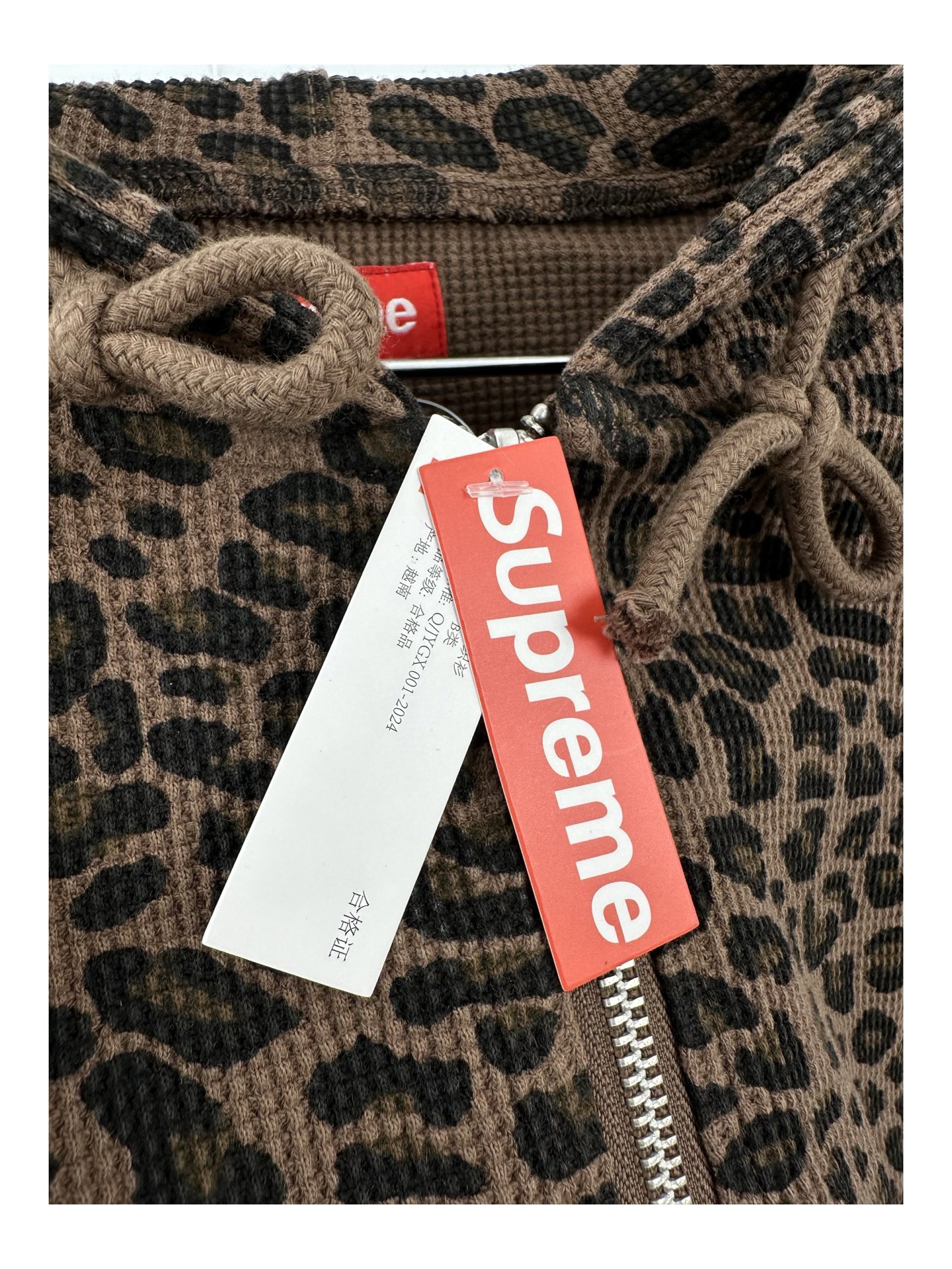 Supreme SS25 Week16 Leopard Print Waffle Knit Thermal Hooded Zip Up