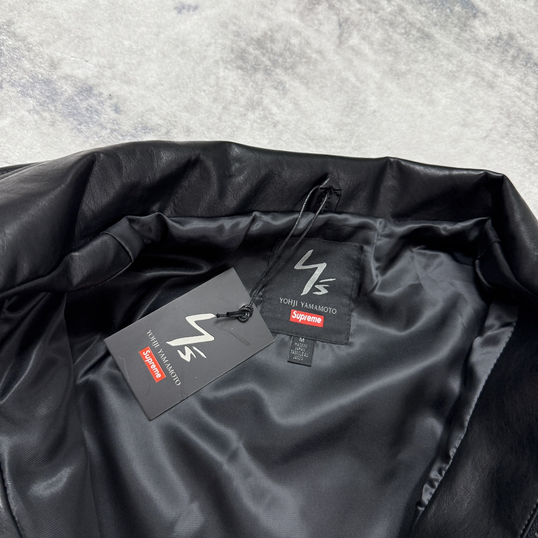 This Supreme x Y's by Yohji Yamamoto leather jacket is a standout piece from the FW25 collection. Combining Supreme's iconic streetwear aesthetic with Yohji Yamamoto's avant-garde design, this jacket is a must-have for fashion enthusiasts.