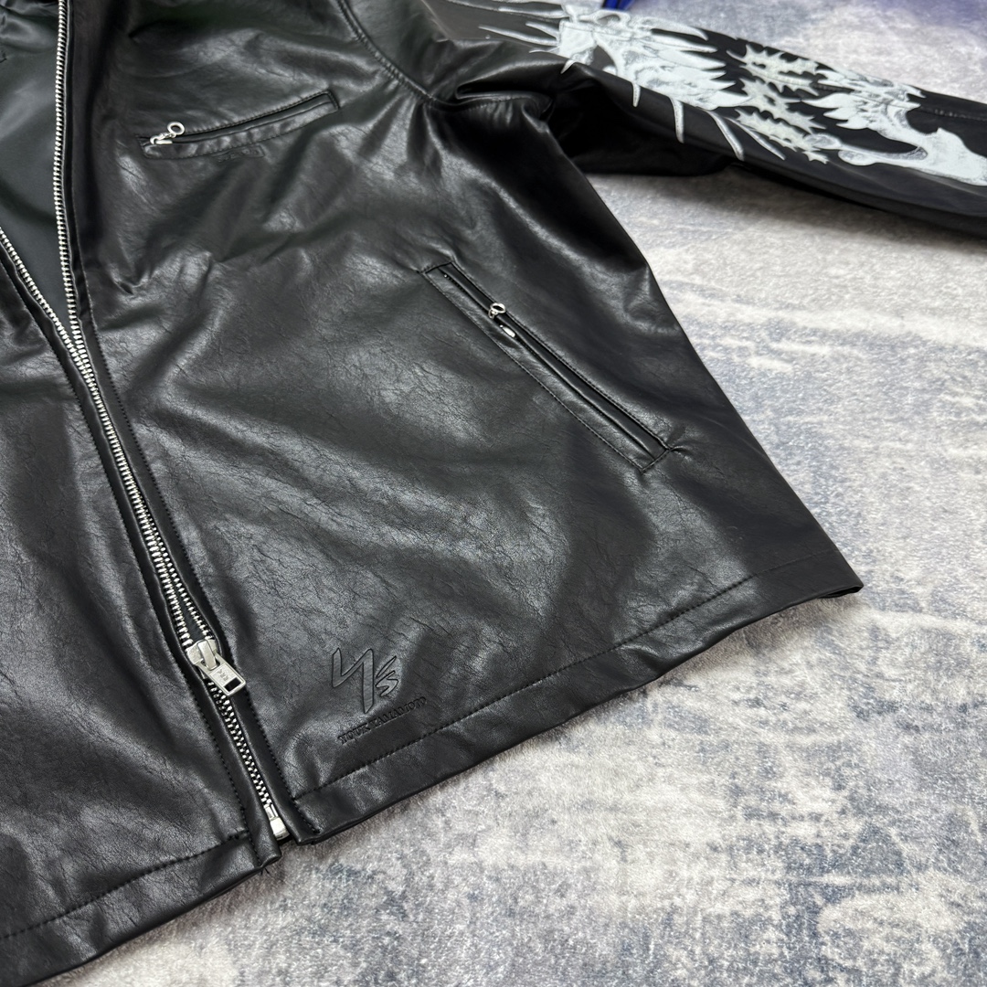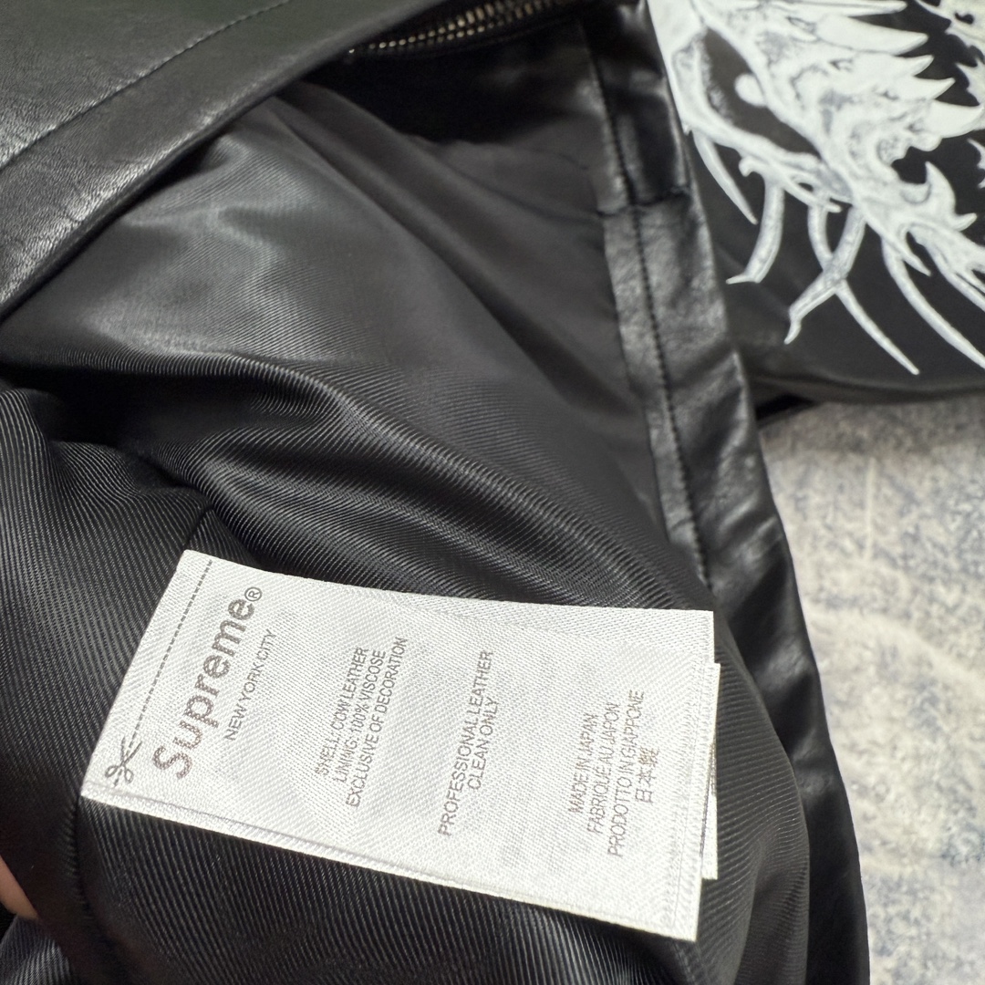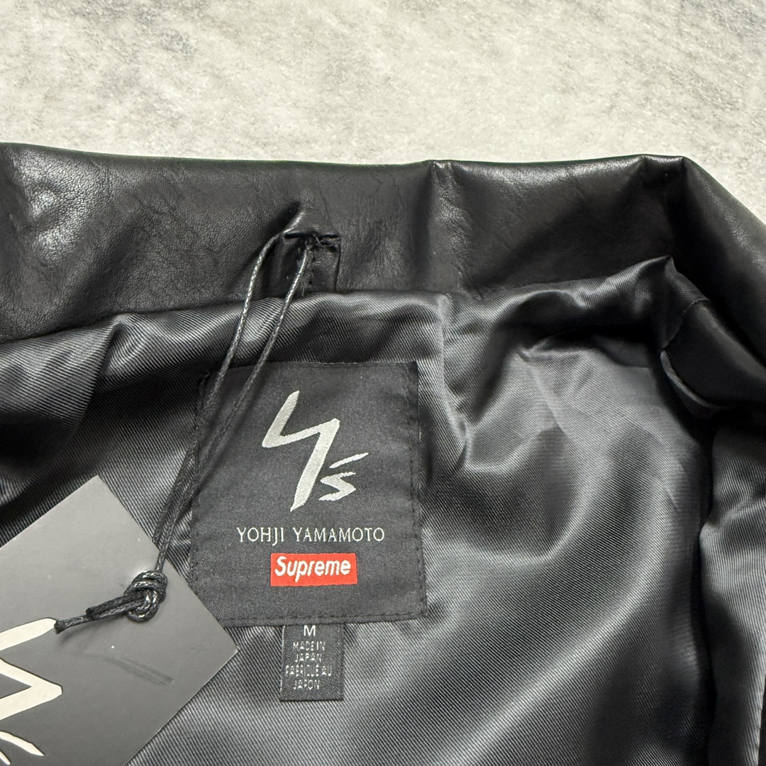 Supreme x Yohji Yamamoto FW25 Leather Jacket with Sleeve Print in Black
