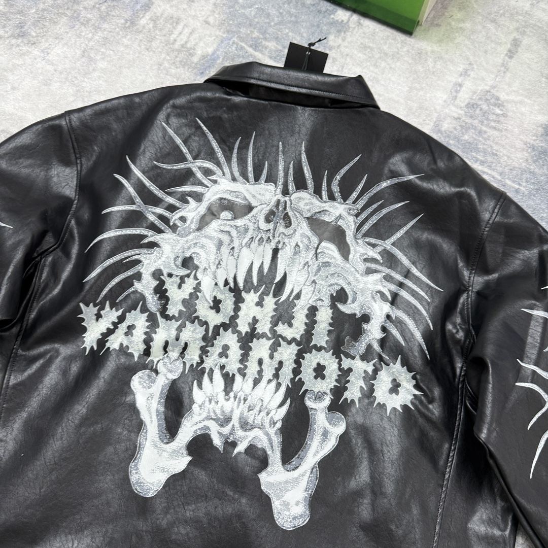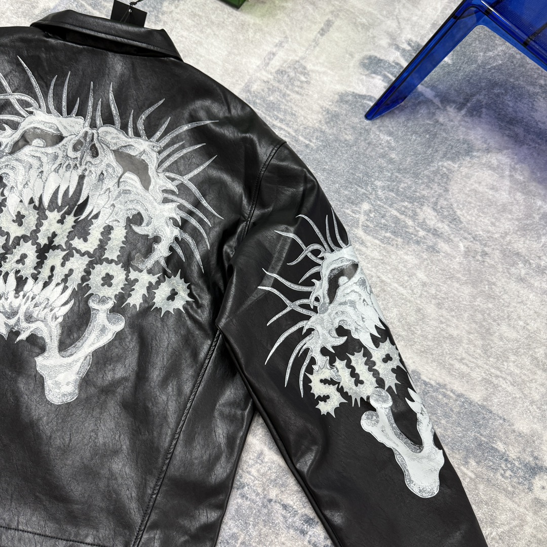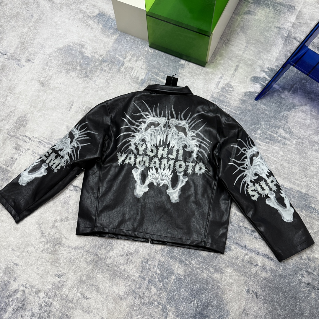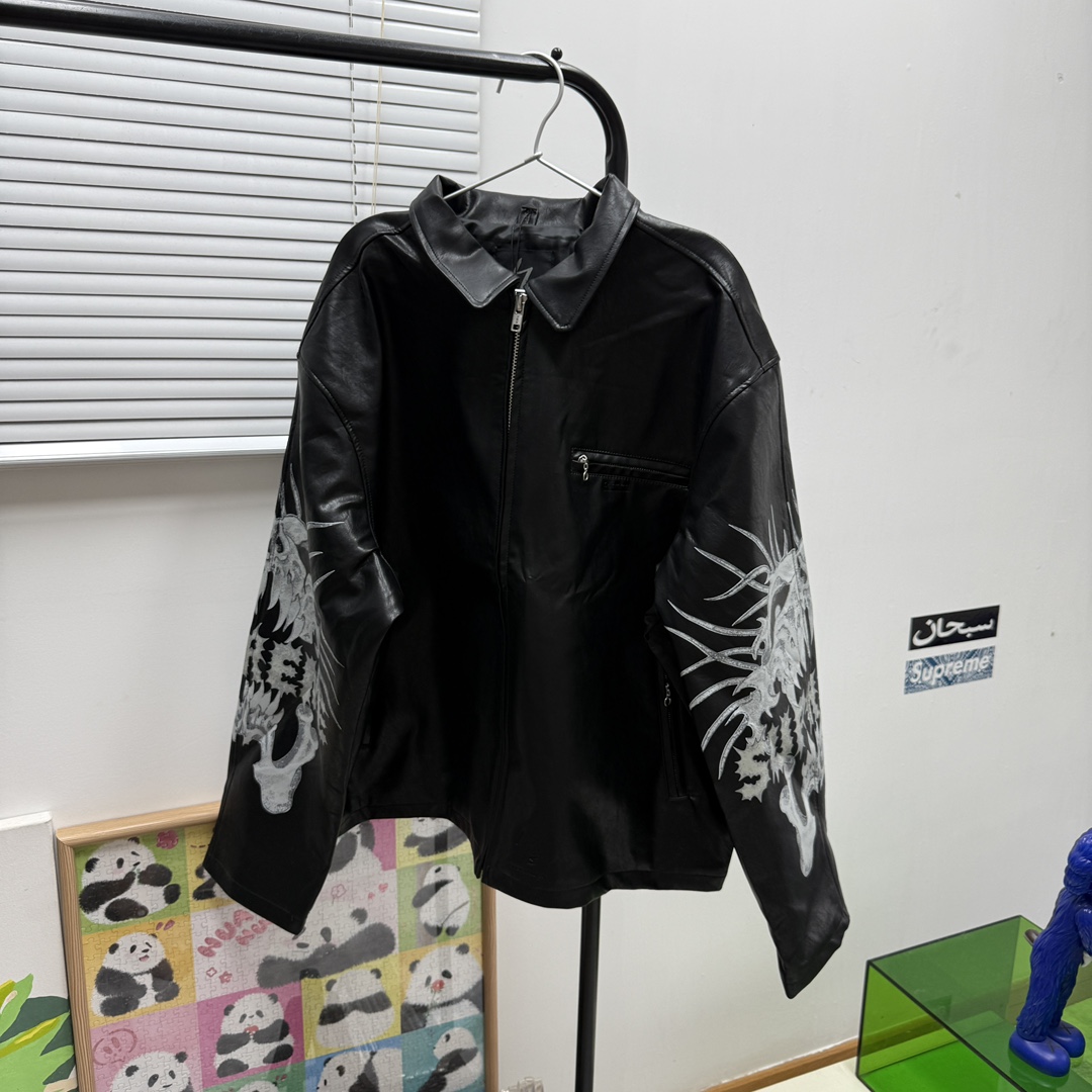 Supreme x Yohji Yamamoto FW25 Leather Jacket with Sleeve Print in Black