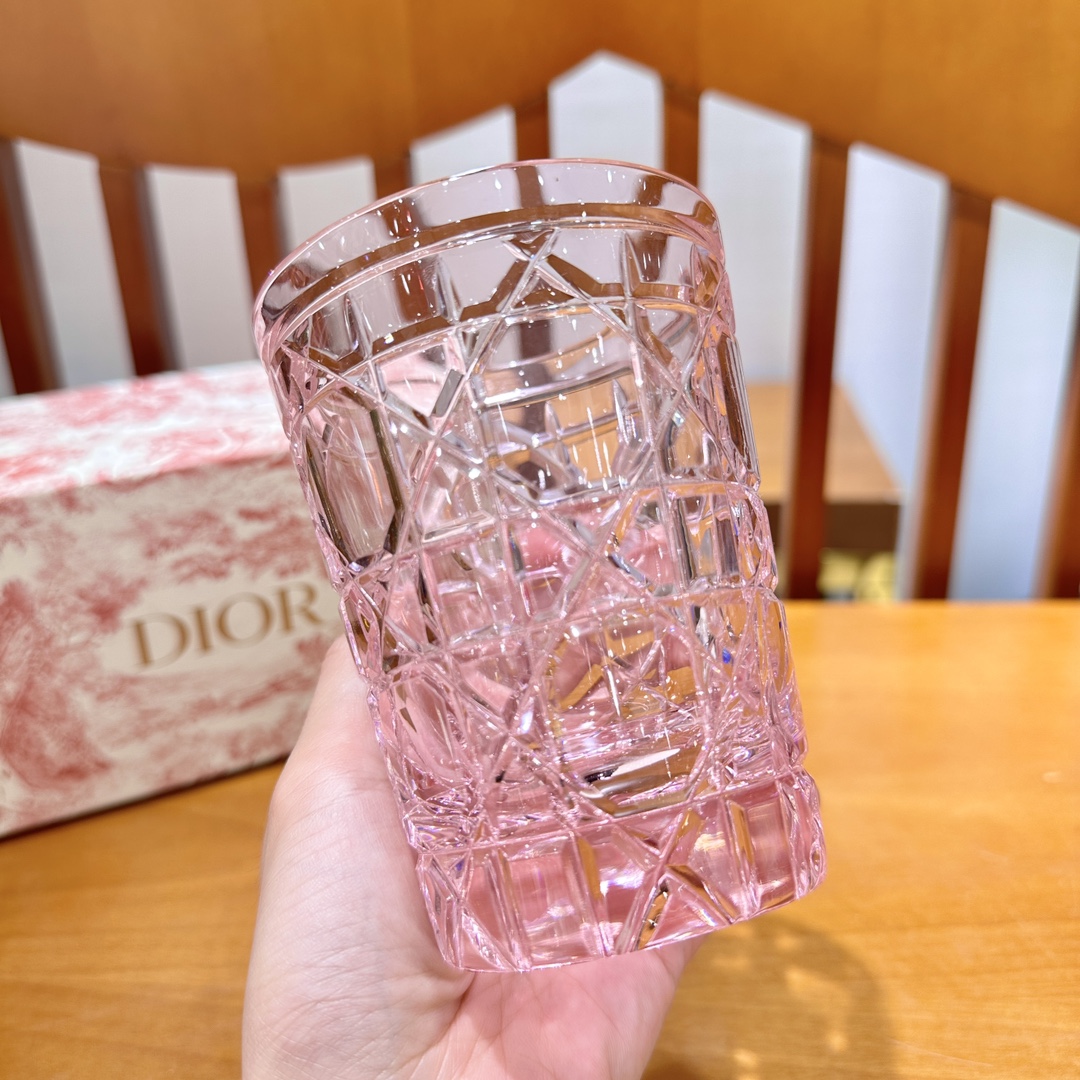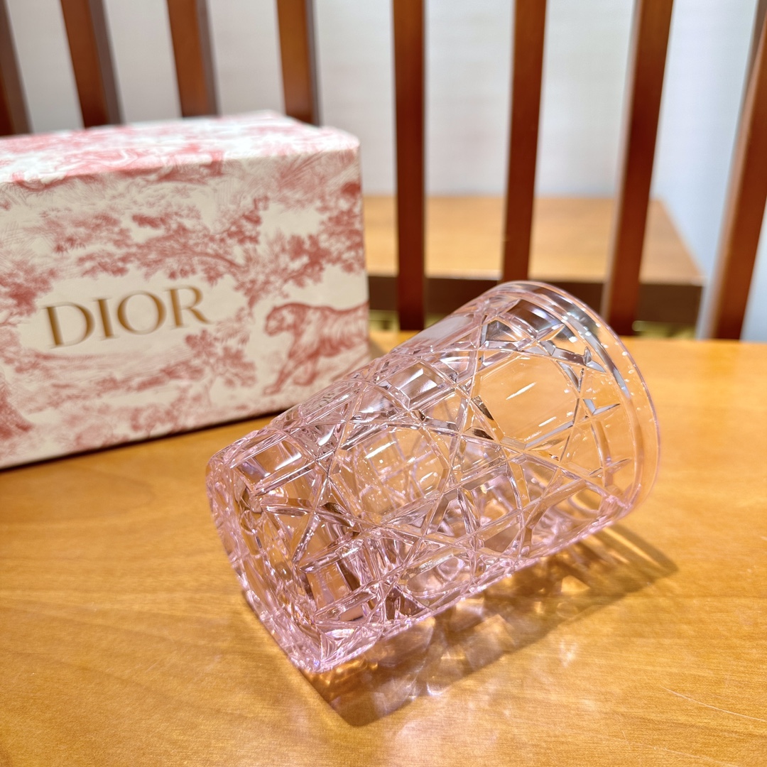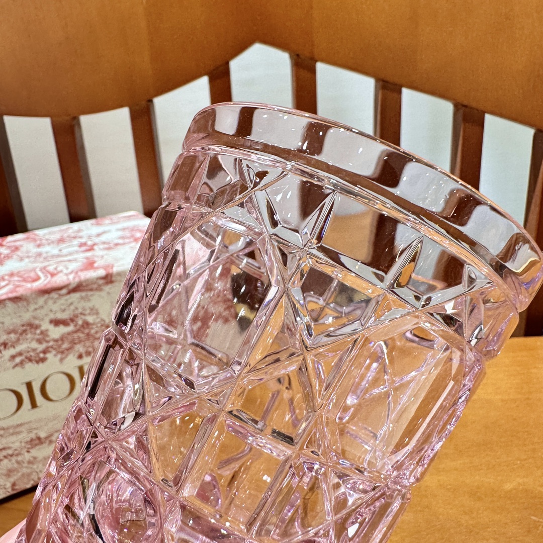 Di*or x Baccarat Pink Crystal Glass Cup with Diamond Cut Design