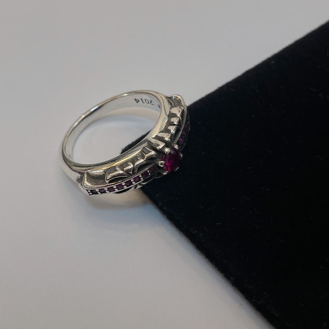 This Chrome Hearts ring is a must-have for those who appreciate unique and edgy designs. The oxidized silver finish gives it a vintage look, while the pink diamond adds a touch of luxury.