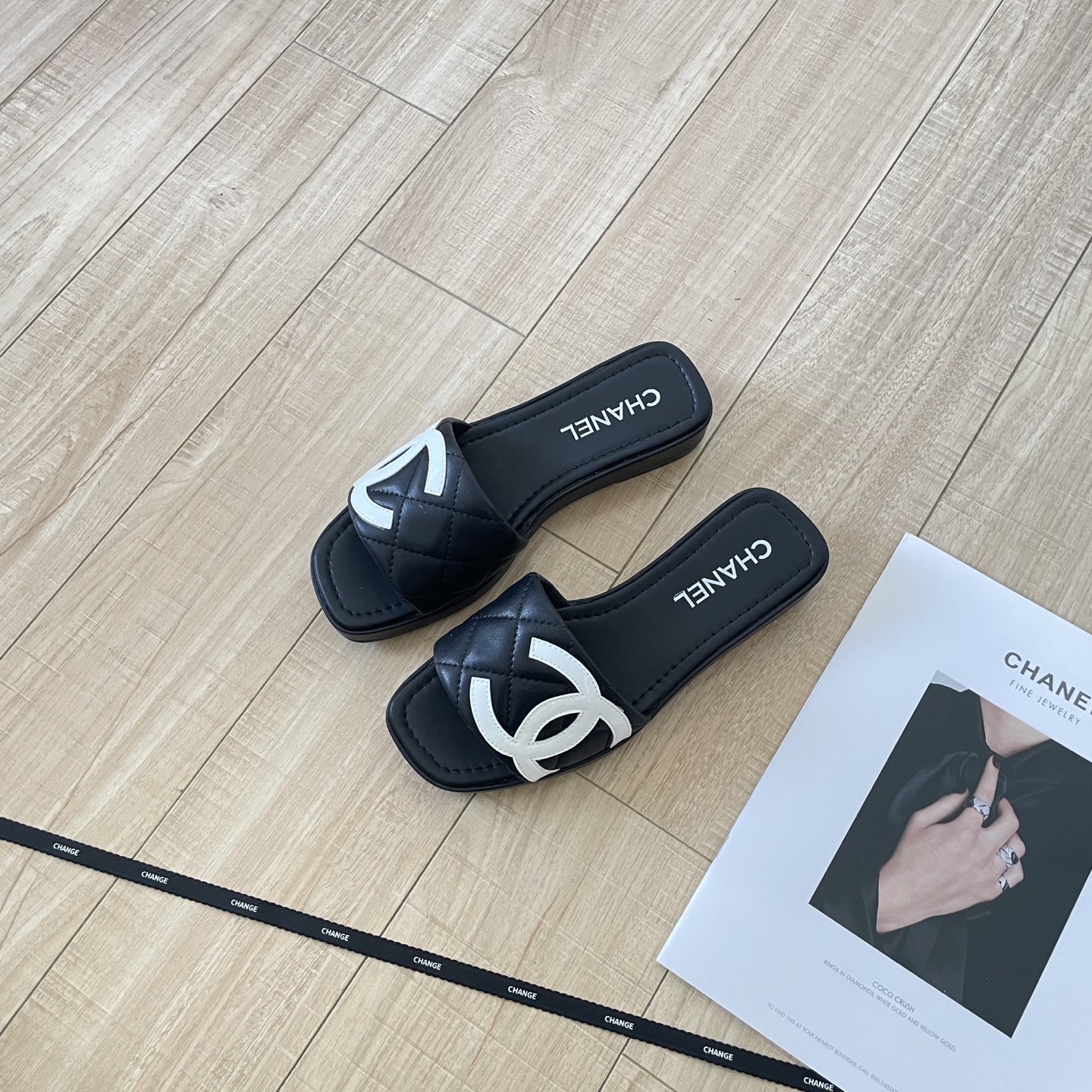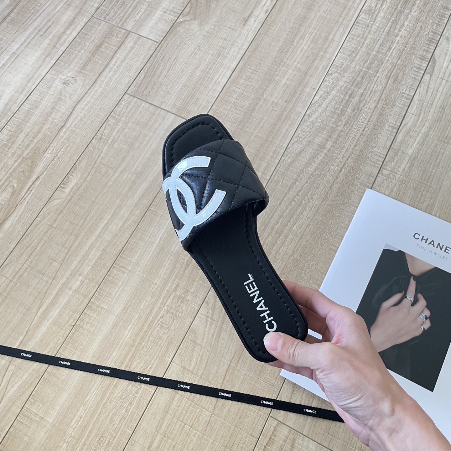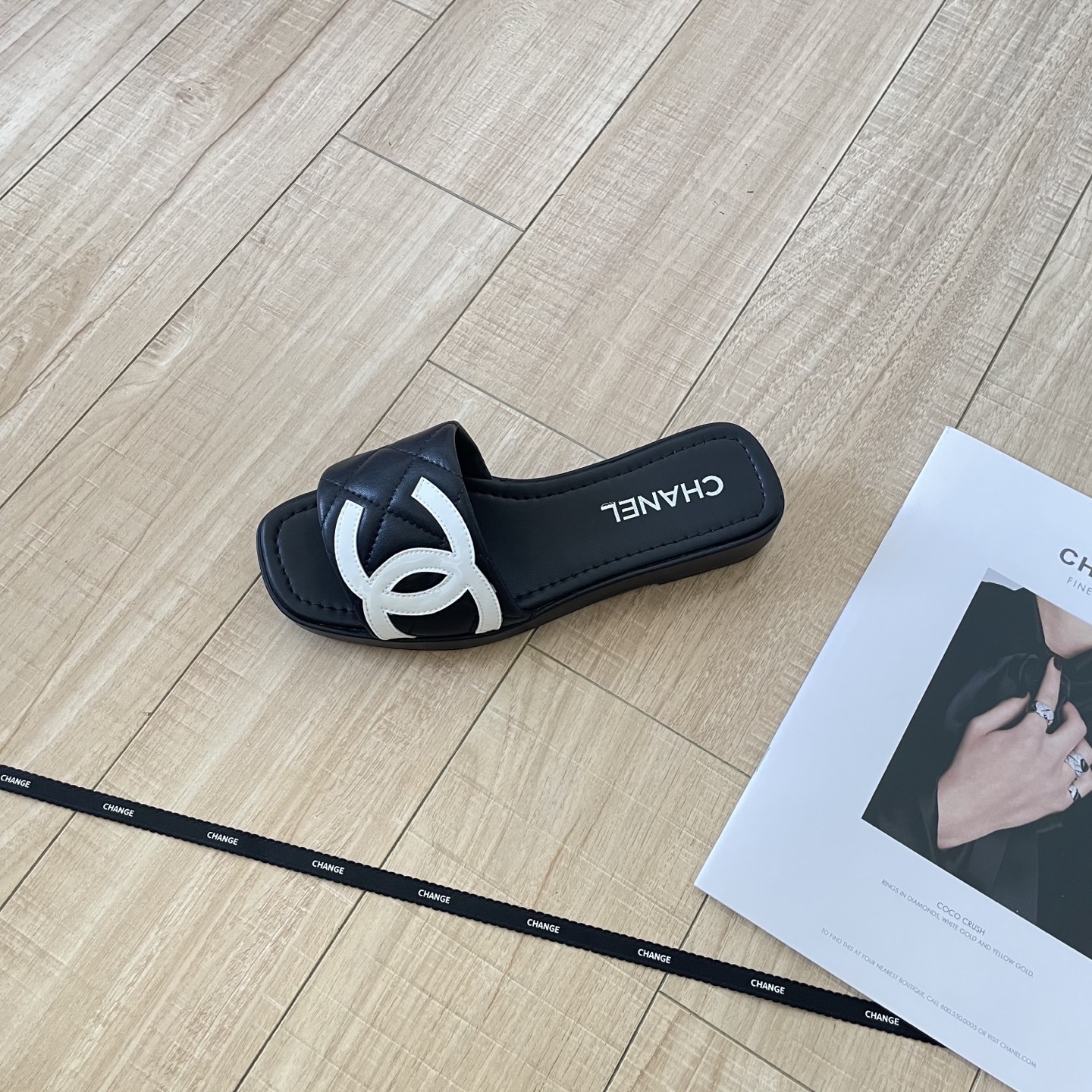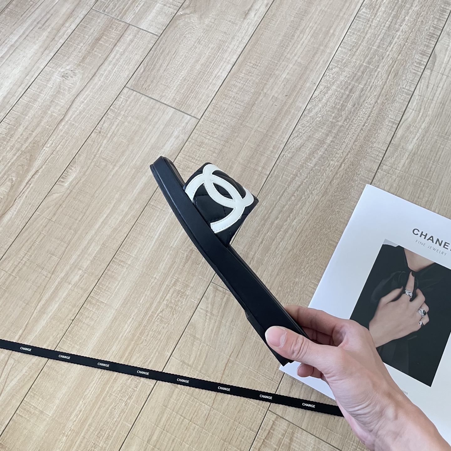 Chanel 2025 Quilted Leather CC Logo Platform Slide Sandals