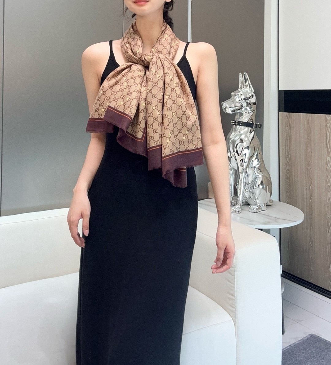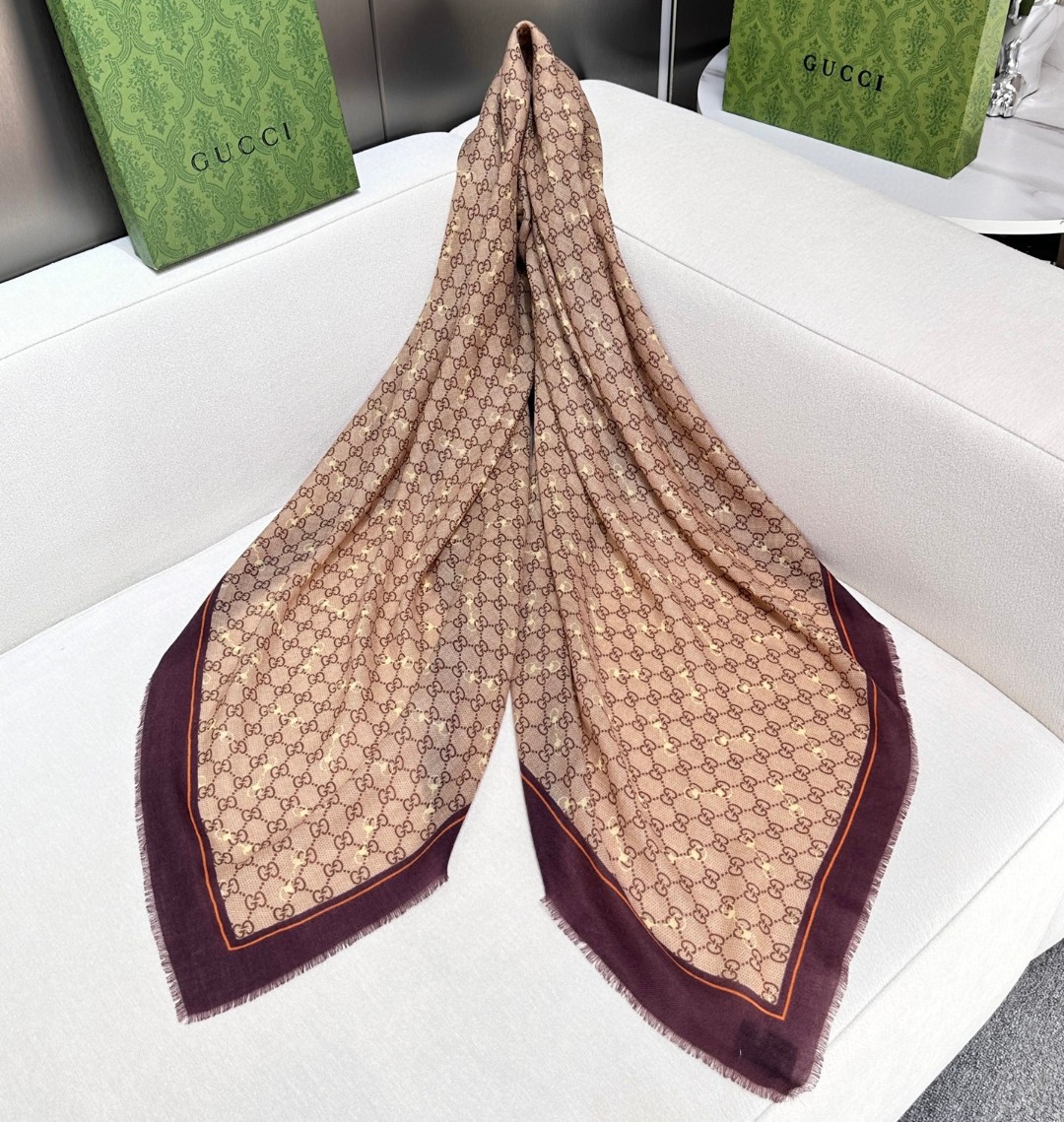 Embrace the elegance and sophistication of this Gucci cashmere scarf, a timeless accessory that adds a touch of luxury to any outfit.