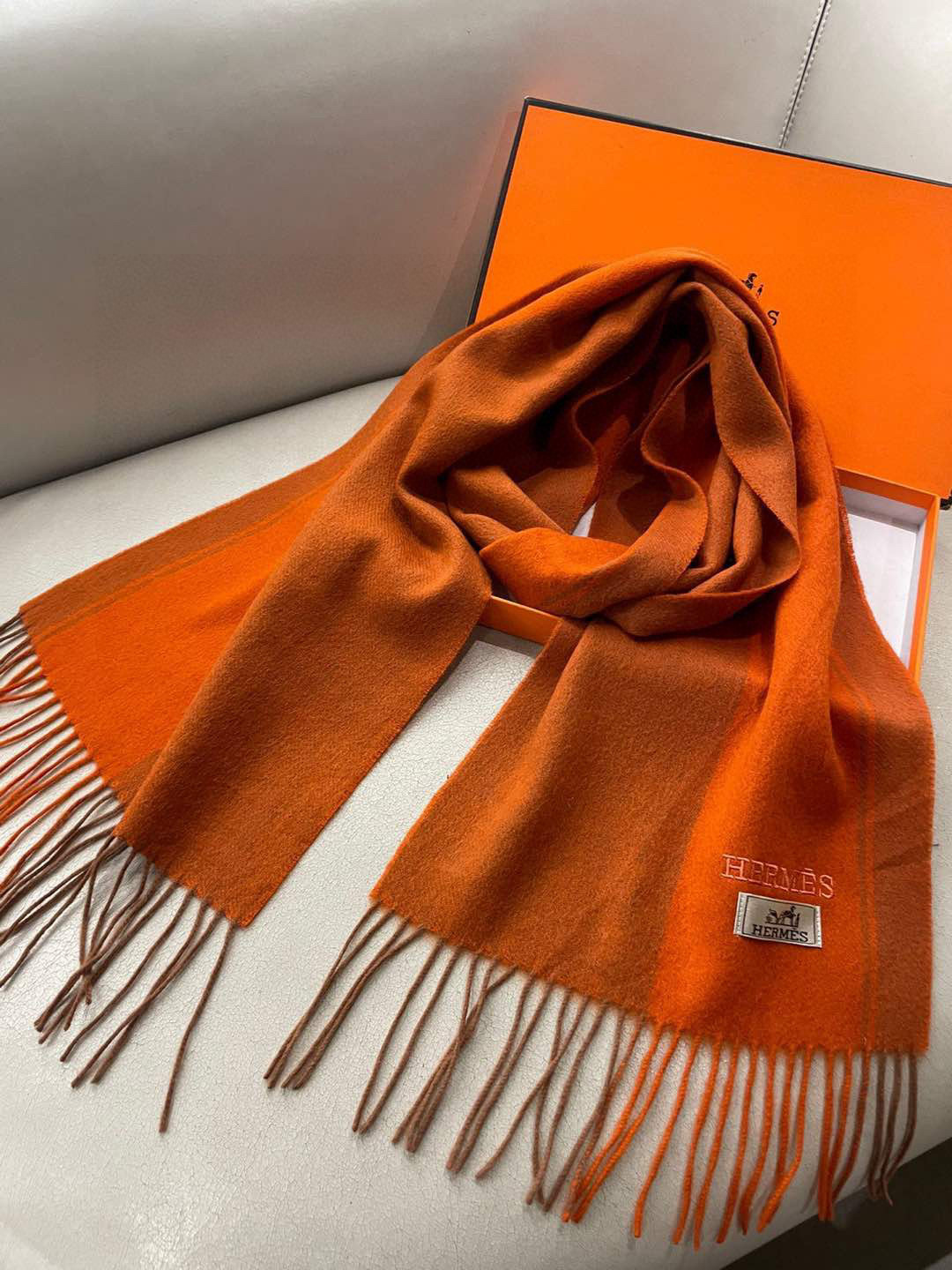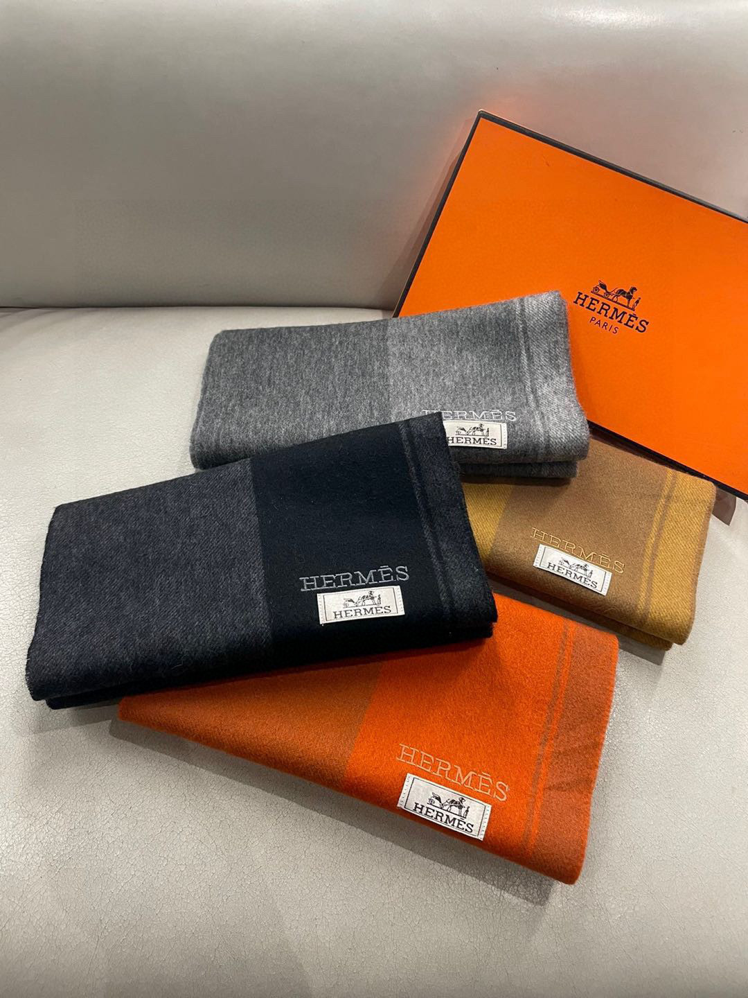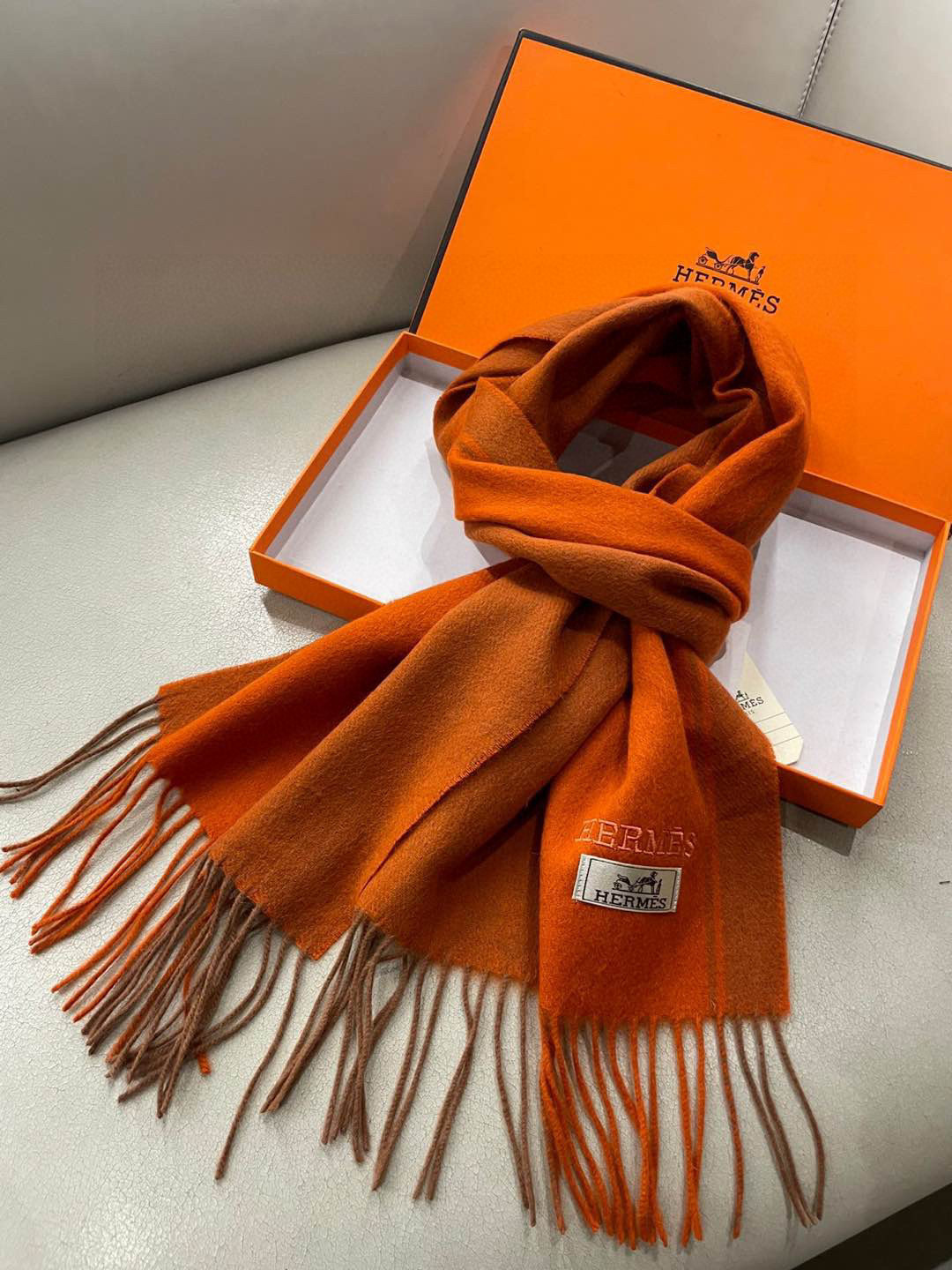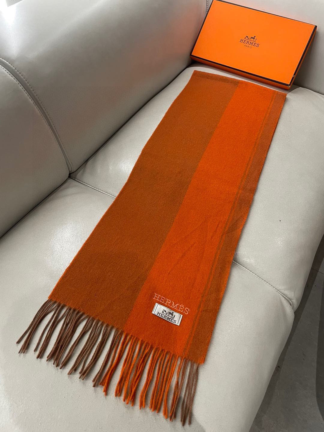 Indulge in the luxurious feel of this Hermes cashmere scarf. Impeccable embroidery and premium quality make it a perfect gift. Size: 180*30 cm.