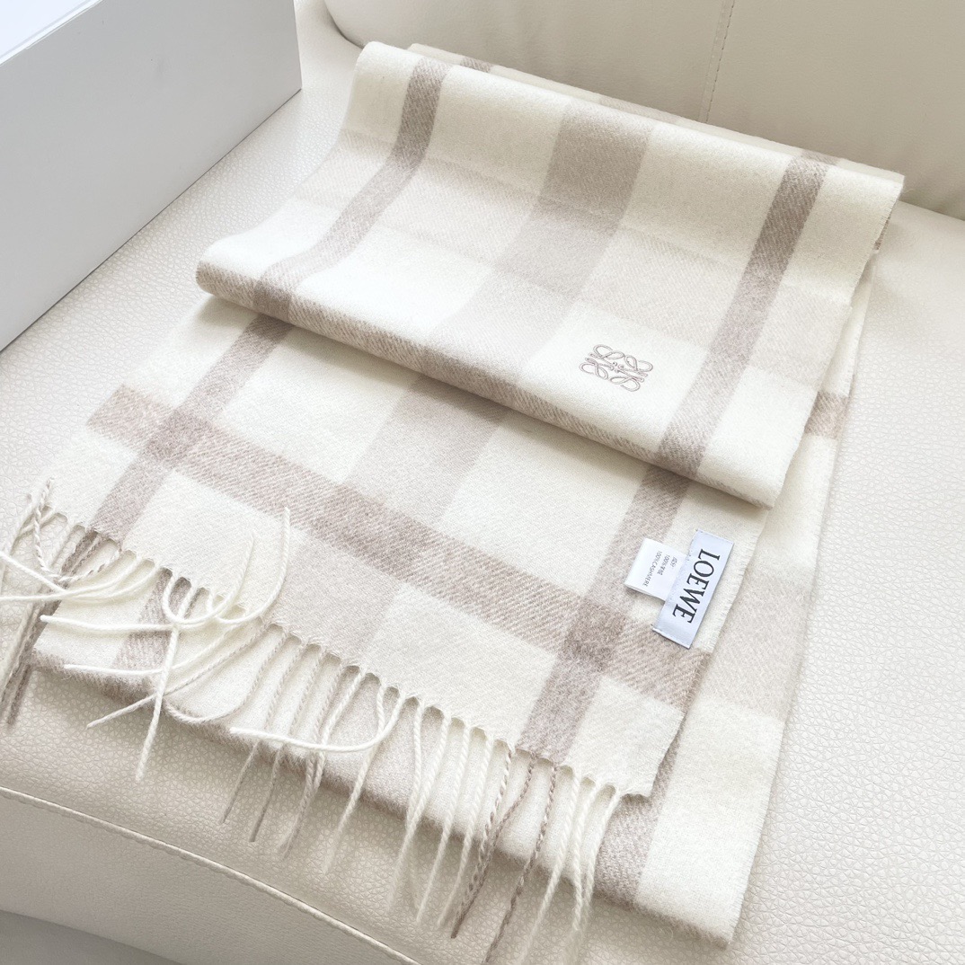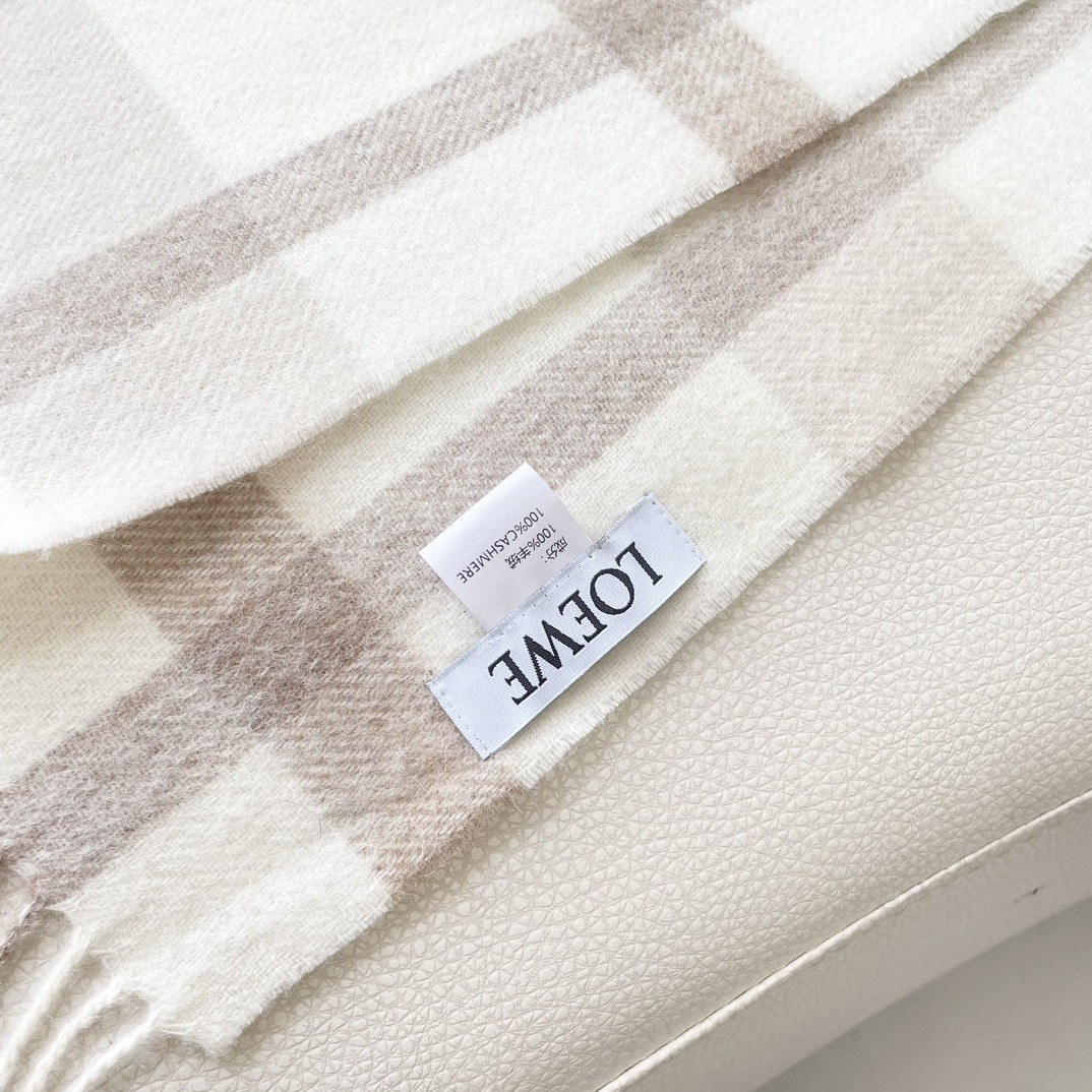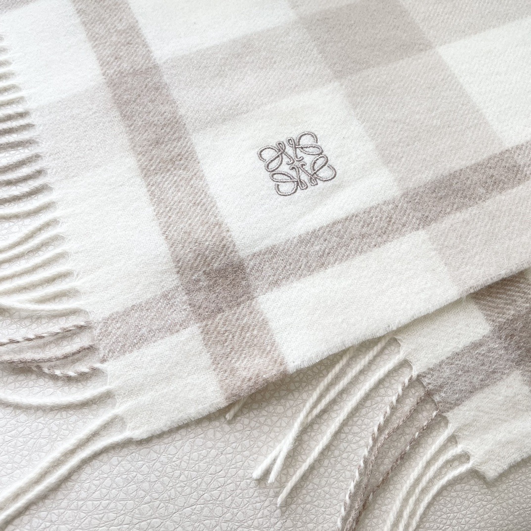 This Loewe neutral scarf is a timeless accessory blending luxury and classic design.