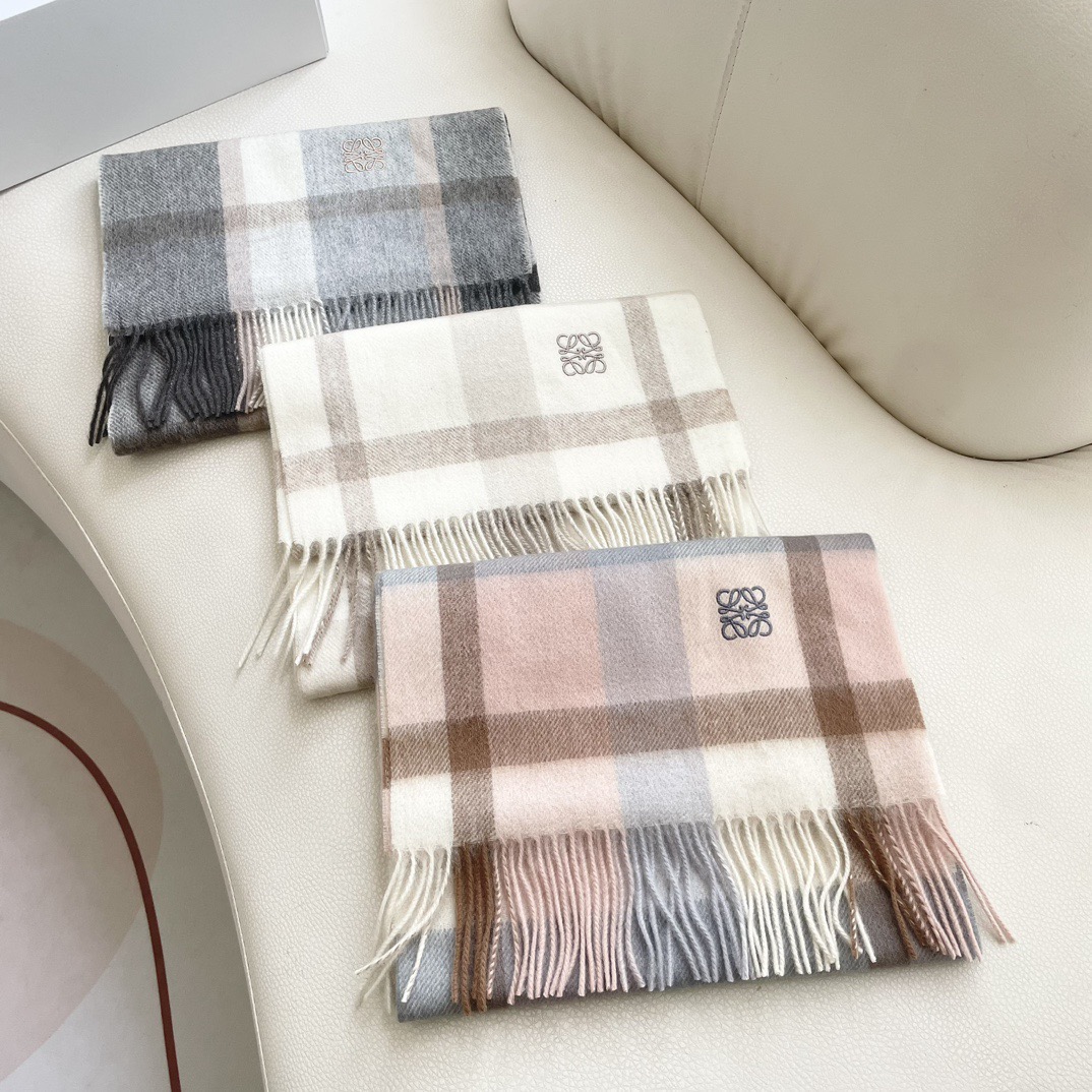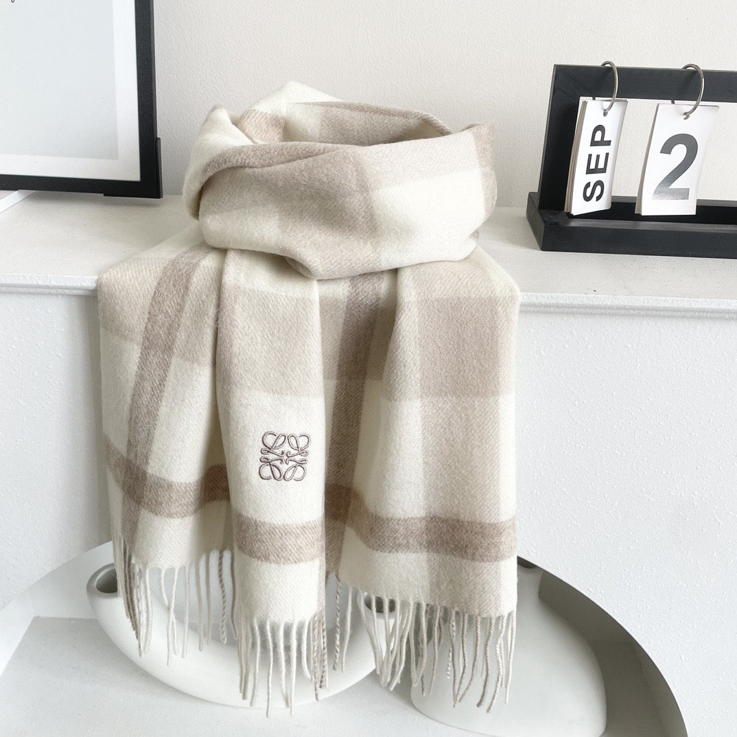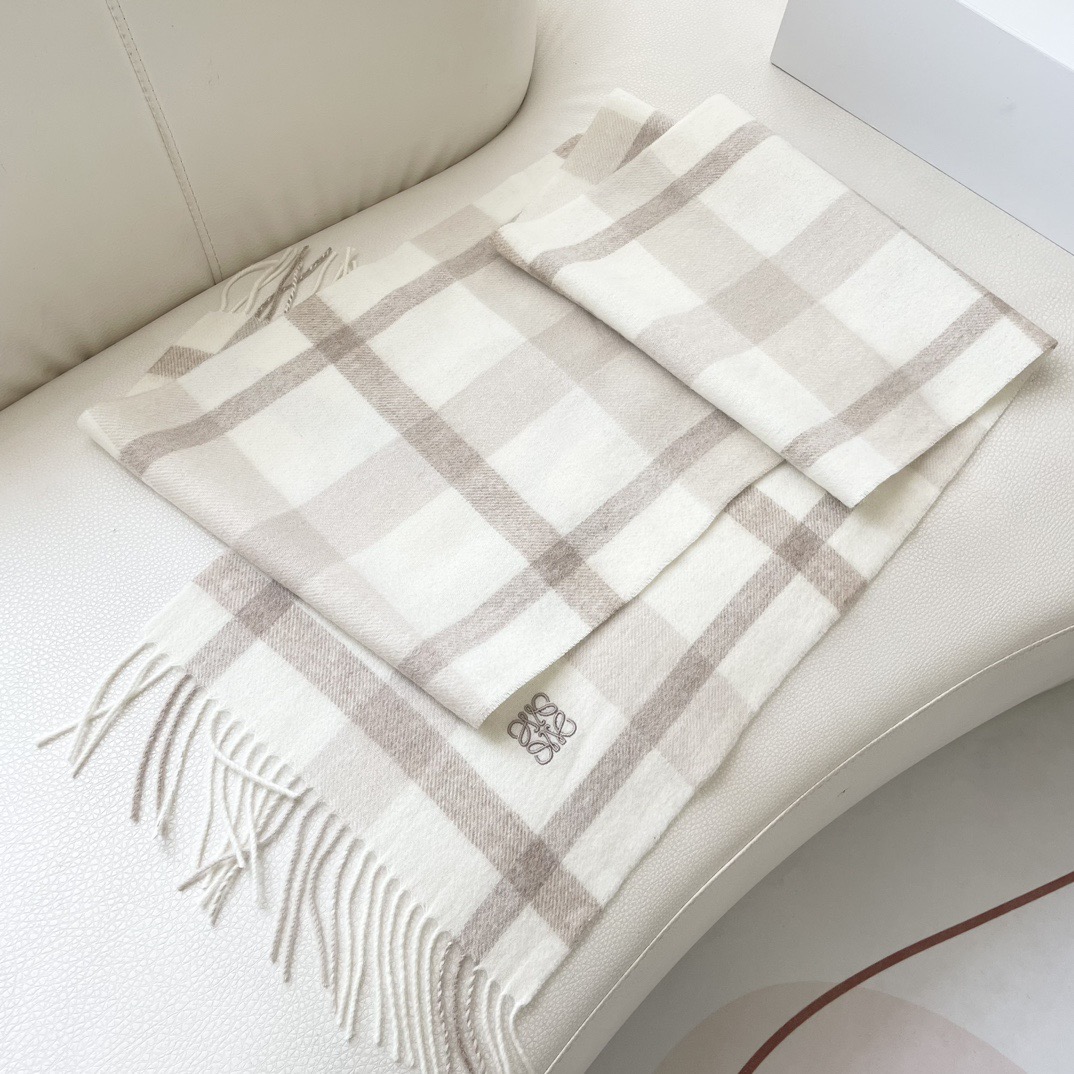 This Loewe neutral scarf is a timeless accessory blending luxury and classic design.