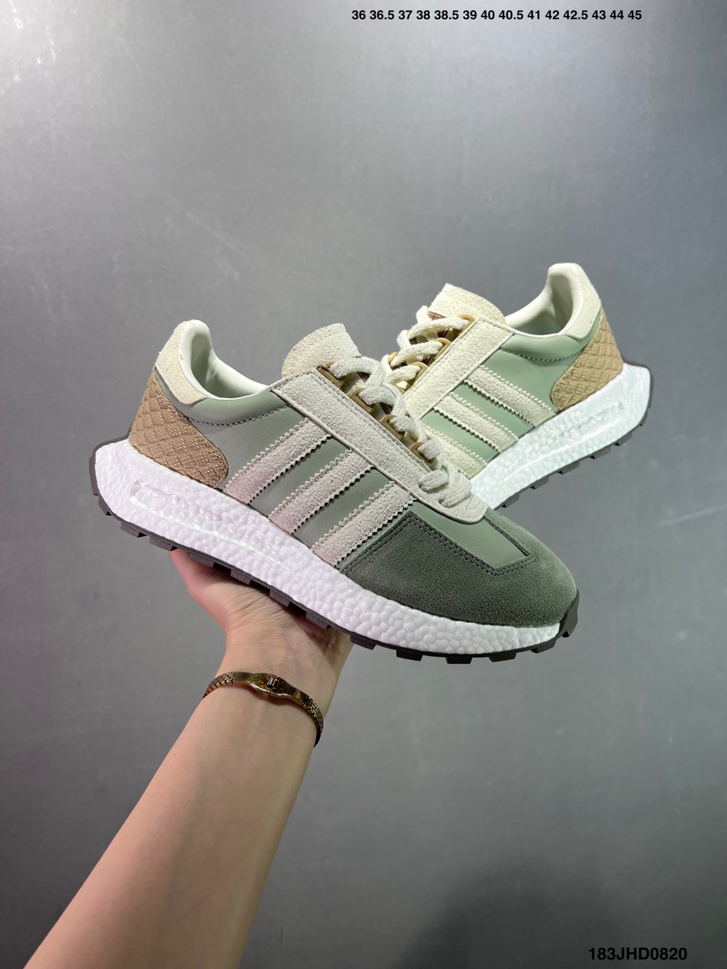 These Adidas Racing E5 Boost Prototype sneakers blend retro aesthetics with modern comfort, perfect for both athletic pursuits and casual wear.